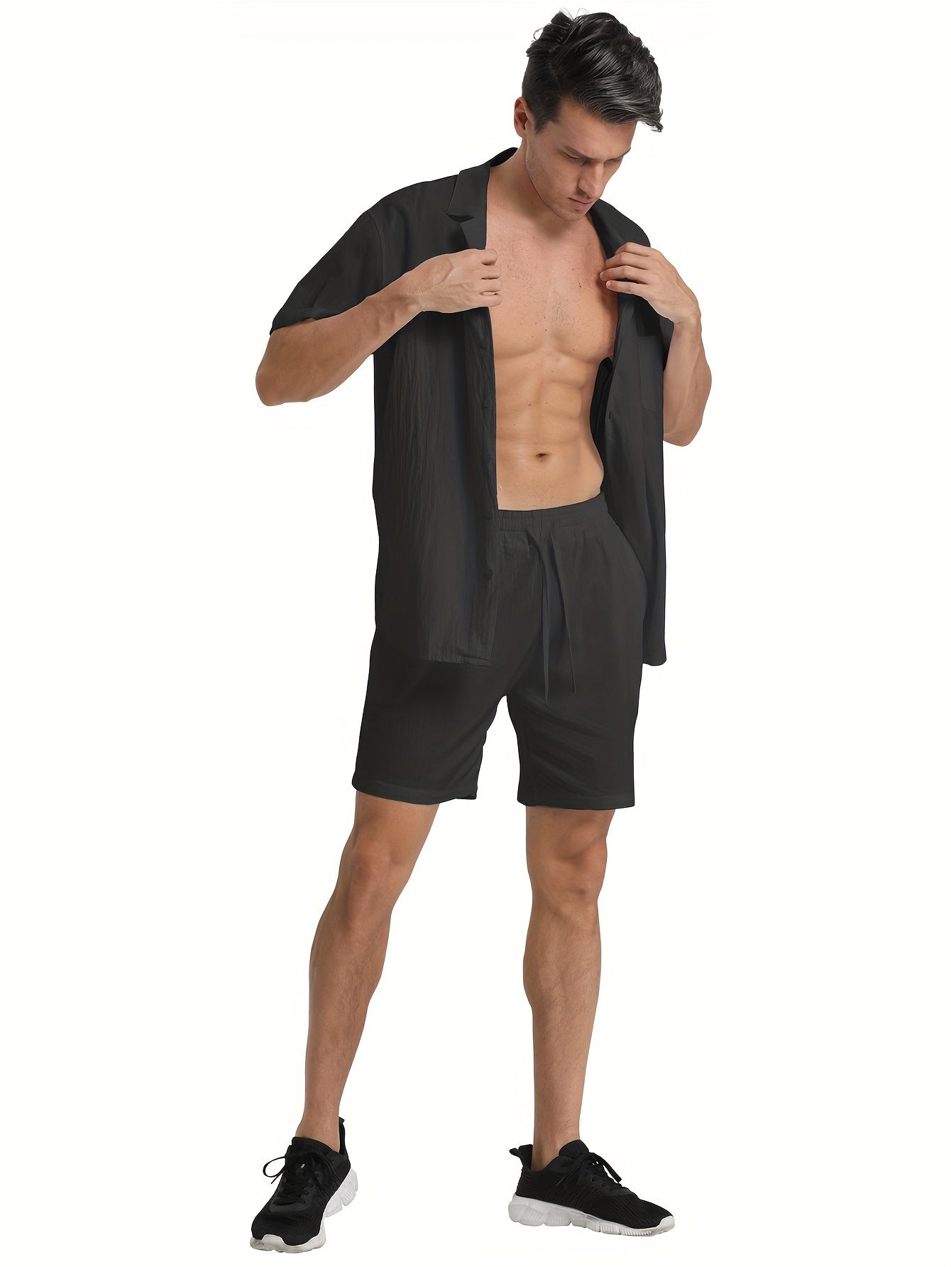 Men's Casual Comfy Cotton Breathable Active Shorts, Chic Drawstring Beach Shorts