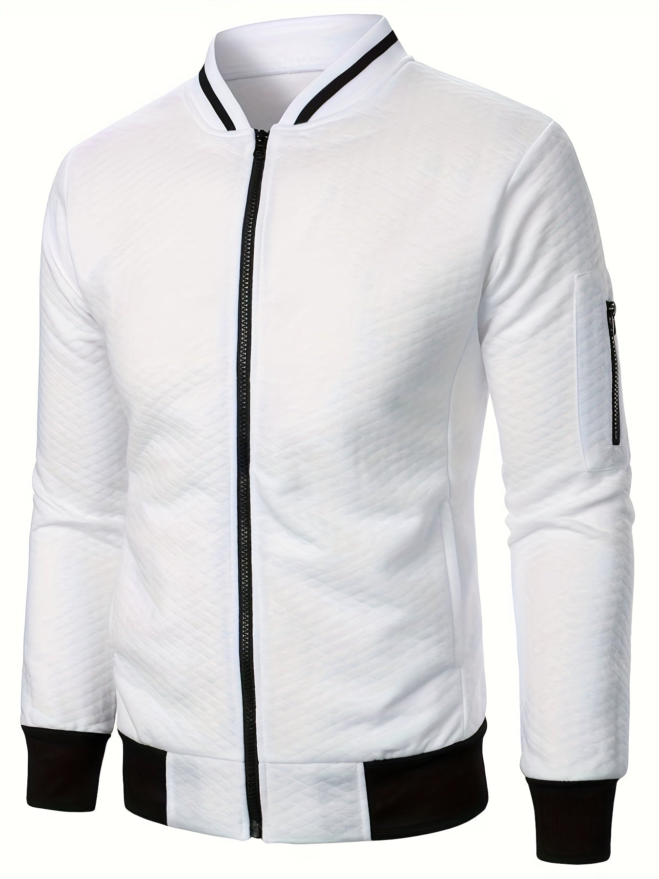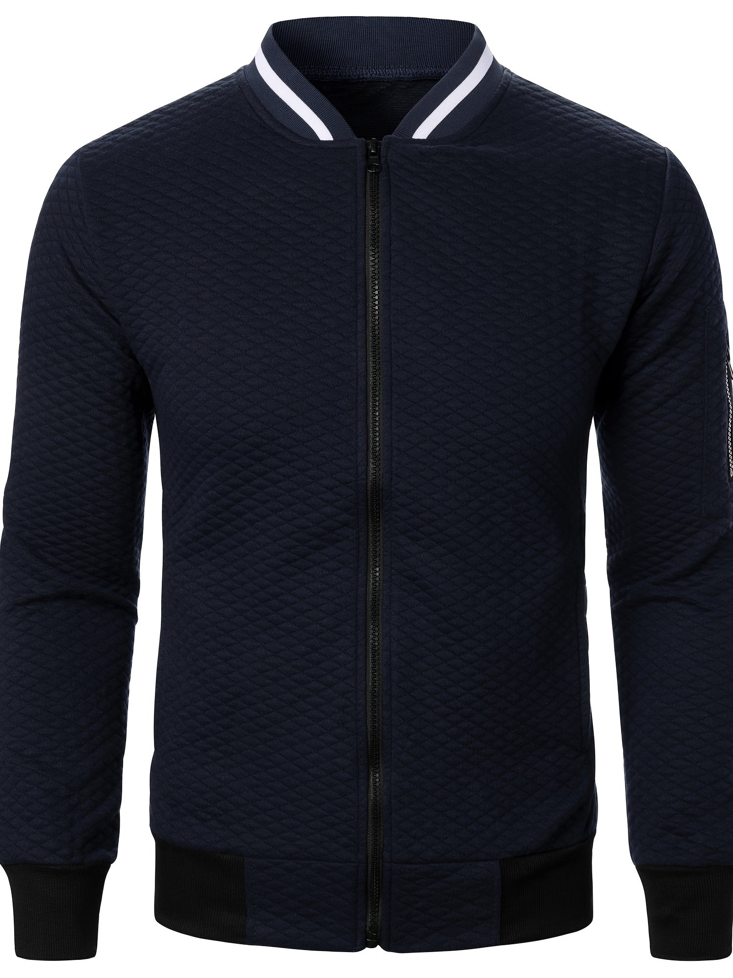 Men's Casual Full Zip Bomber Jacket, Warm Comfy Blouson Jacket For Autumn And Winter Outdoor Activity
