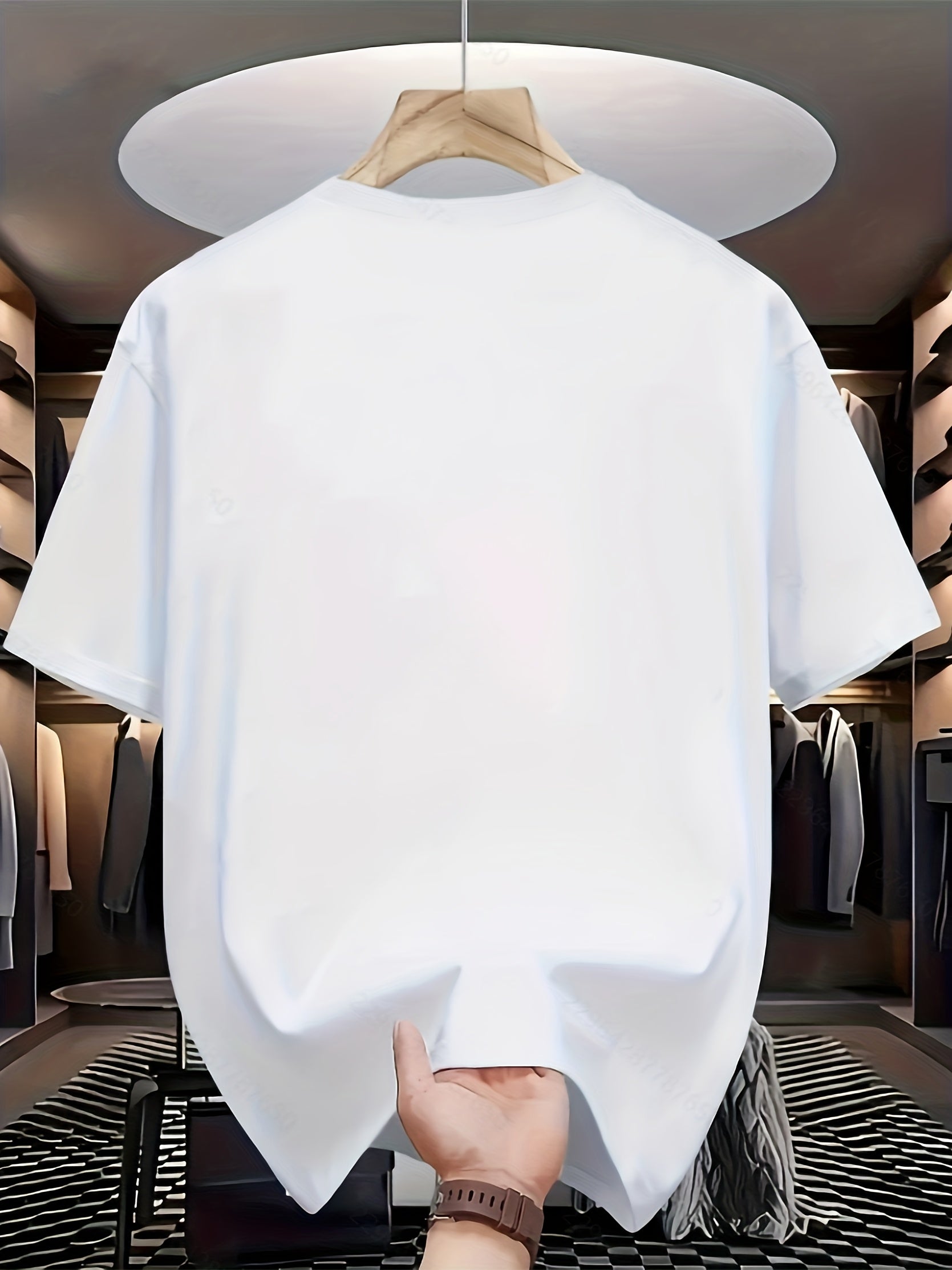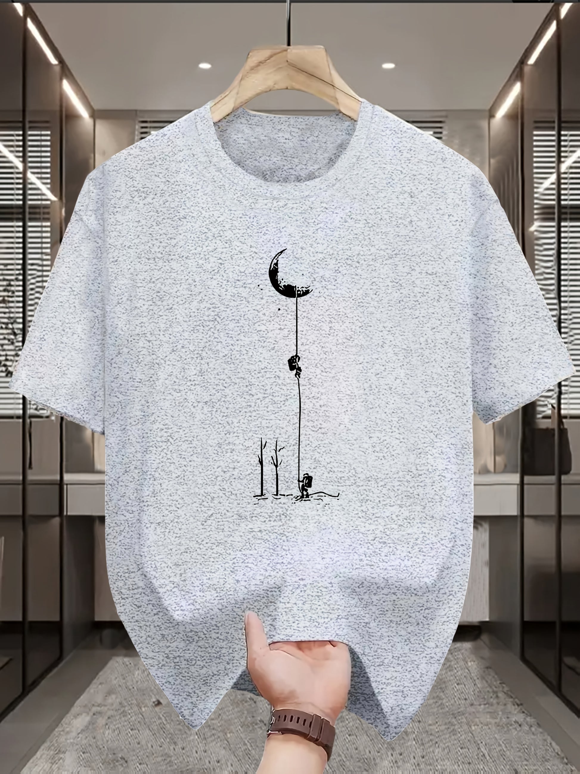 Men's Casual Graphic T-Shirt - Soft Polyester Blend, Crew Neck, Short Sleeve, Summer Style with Unique Moon and Figures Print, Lightweight and Comfortable for Casual Attire, Everyday Tshirt Artistic Design Shirt Lightweig