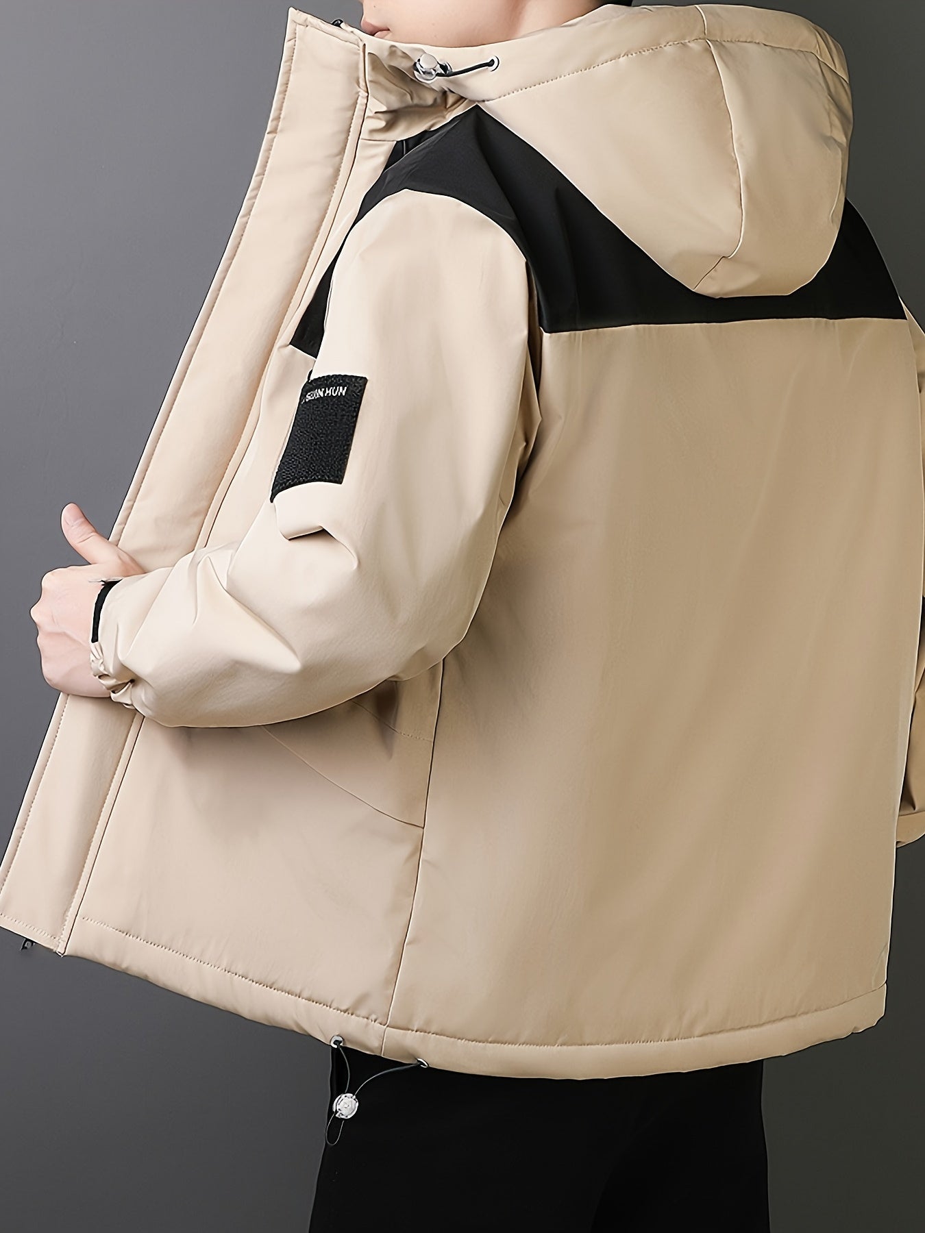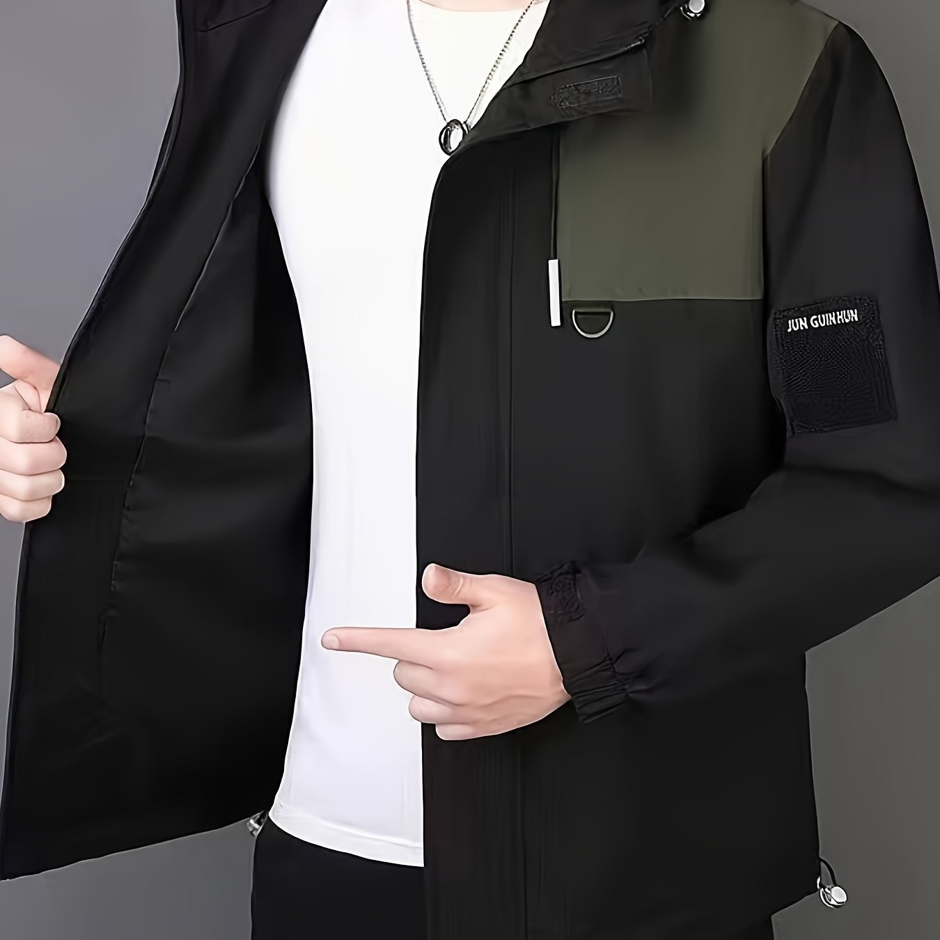 Men's Casual Hooded Windbreaker Jacket - Spring/Autumn Color Block Zip-Up Coat For Autumn Winter Outdoors