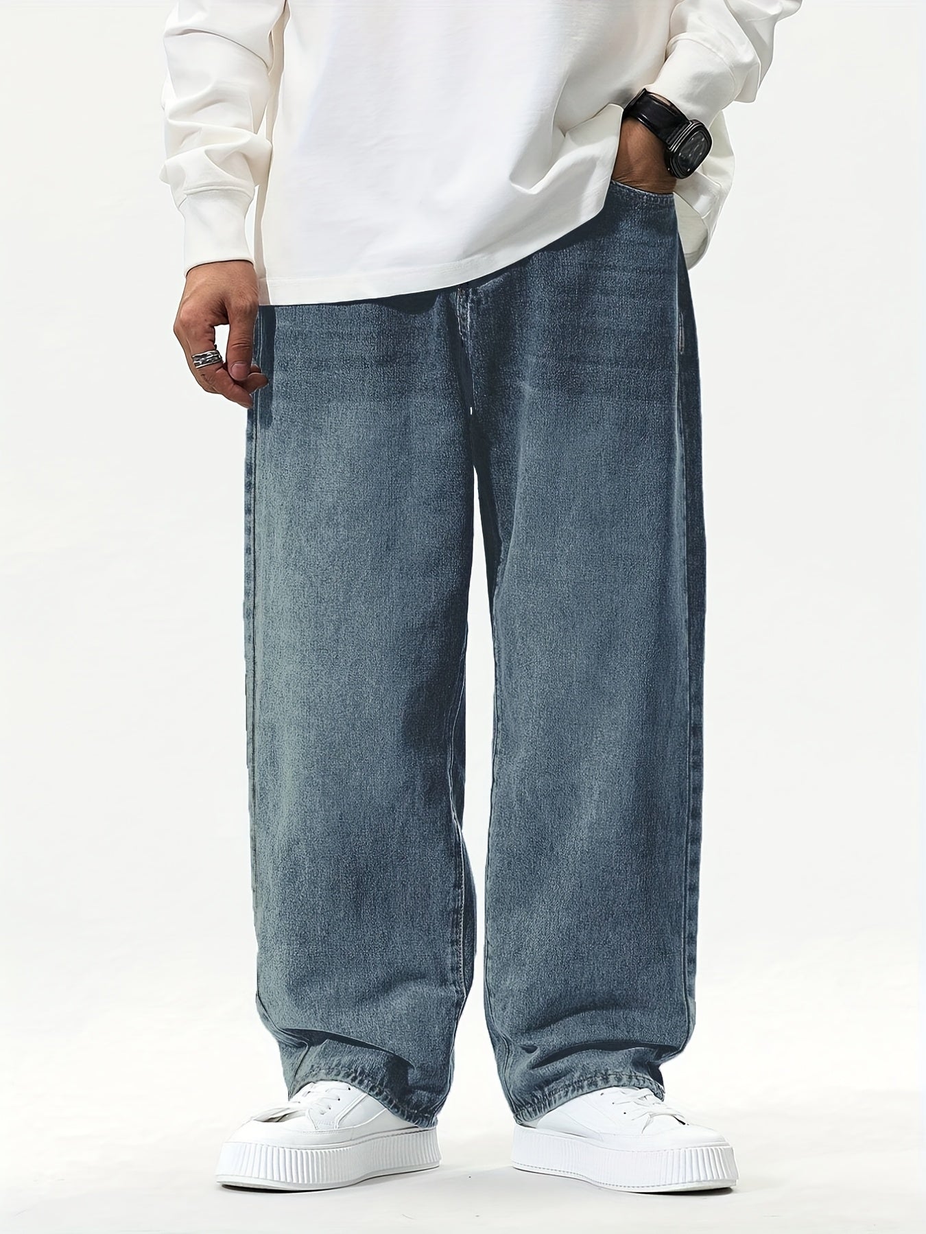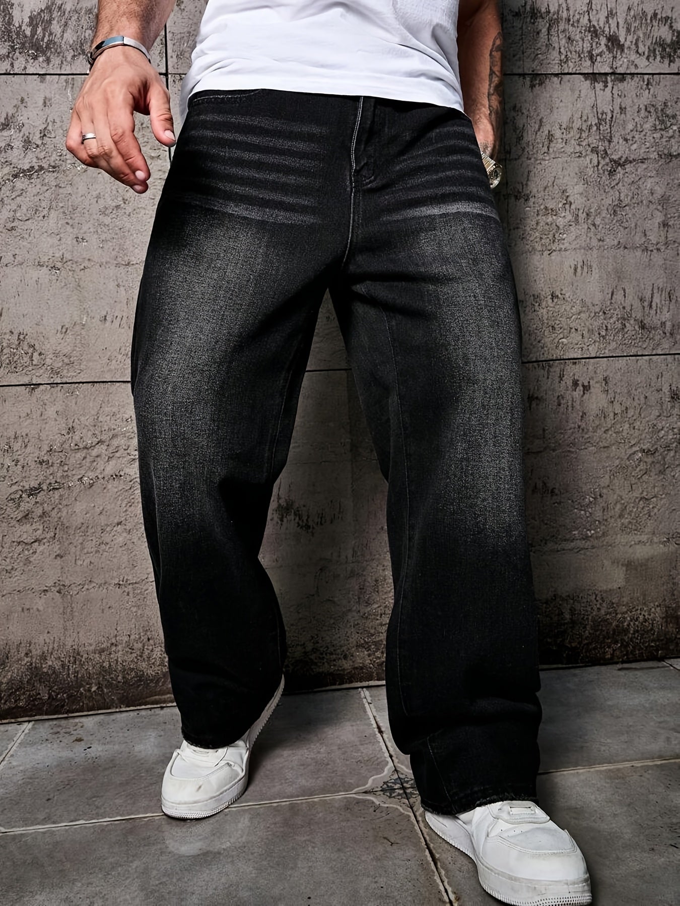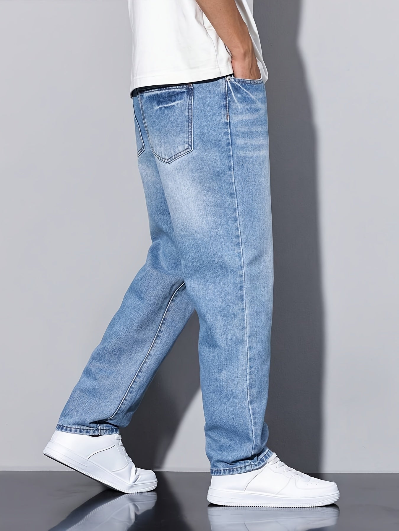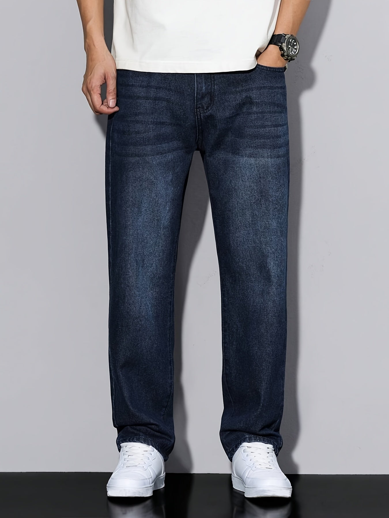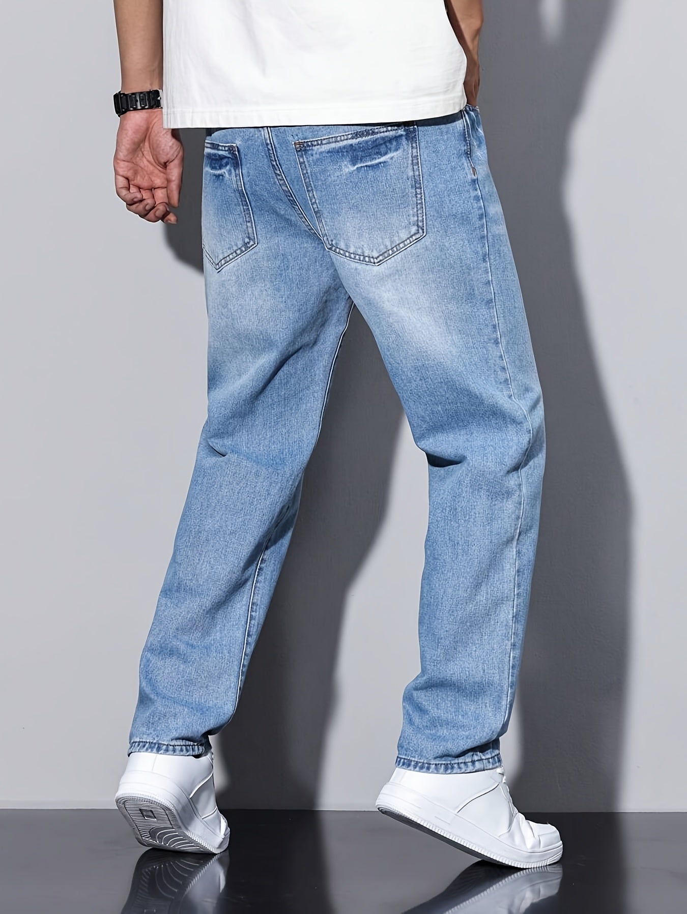 Men'S Casual Loose Fit Denim Jeans, 88.5% Cotton 8.5% Polyester 3% Rayon, All-Season Solid Color Washed Fabric, Regular Length, Non-Stretch Woven Denim Pants