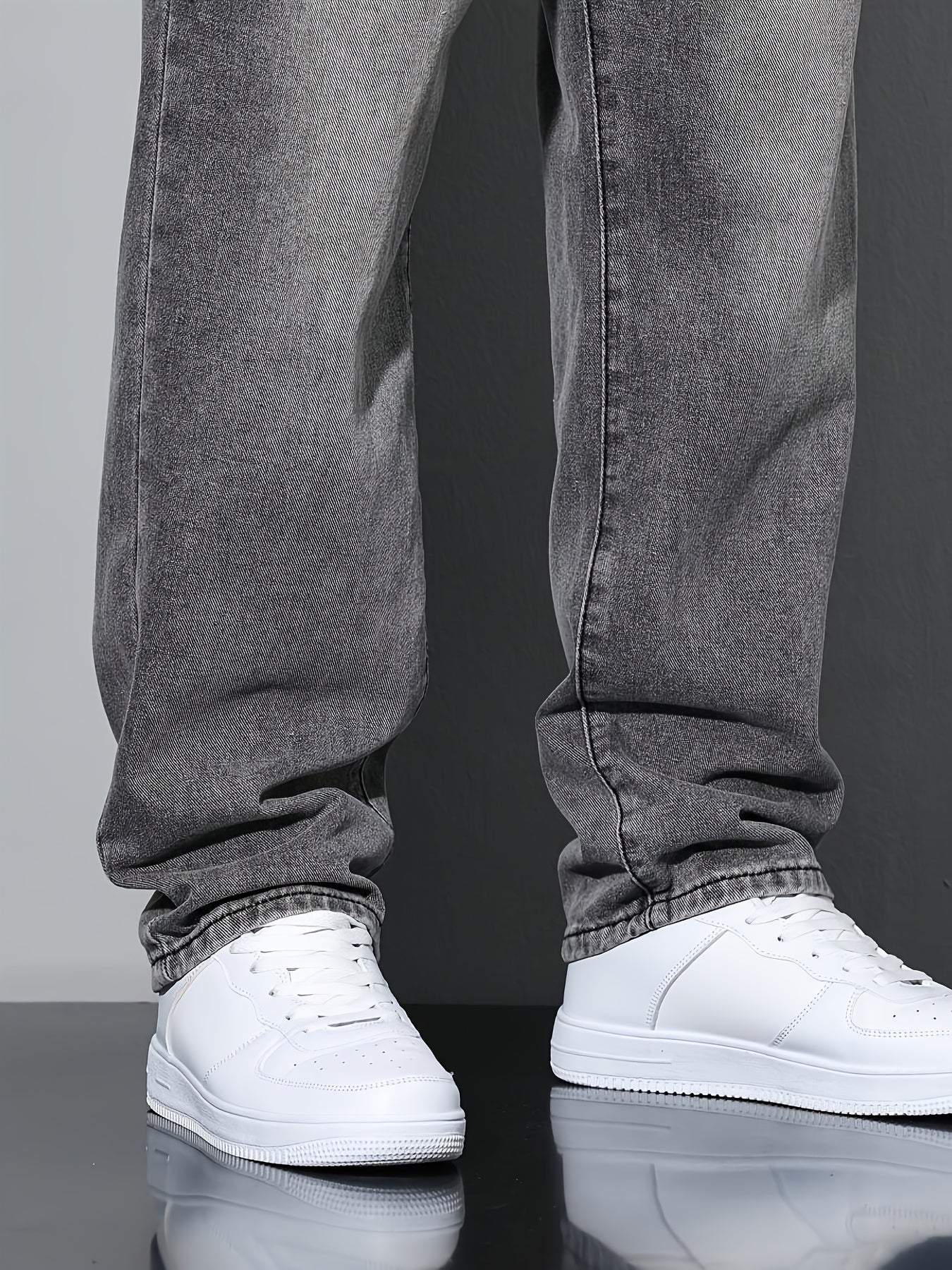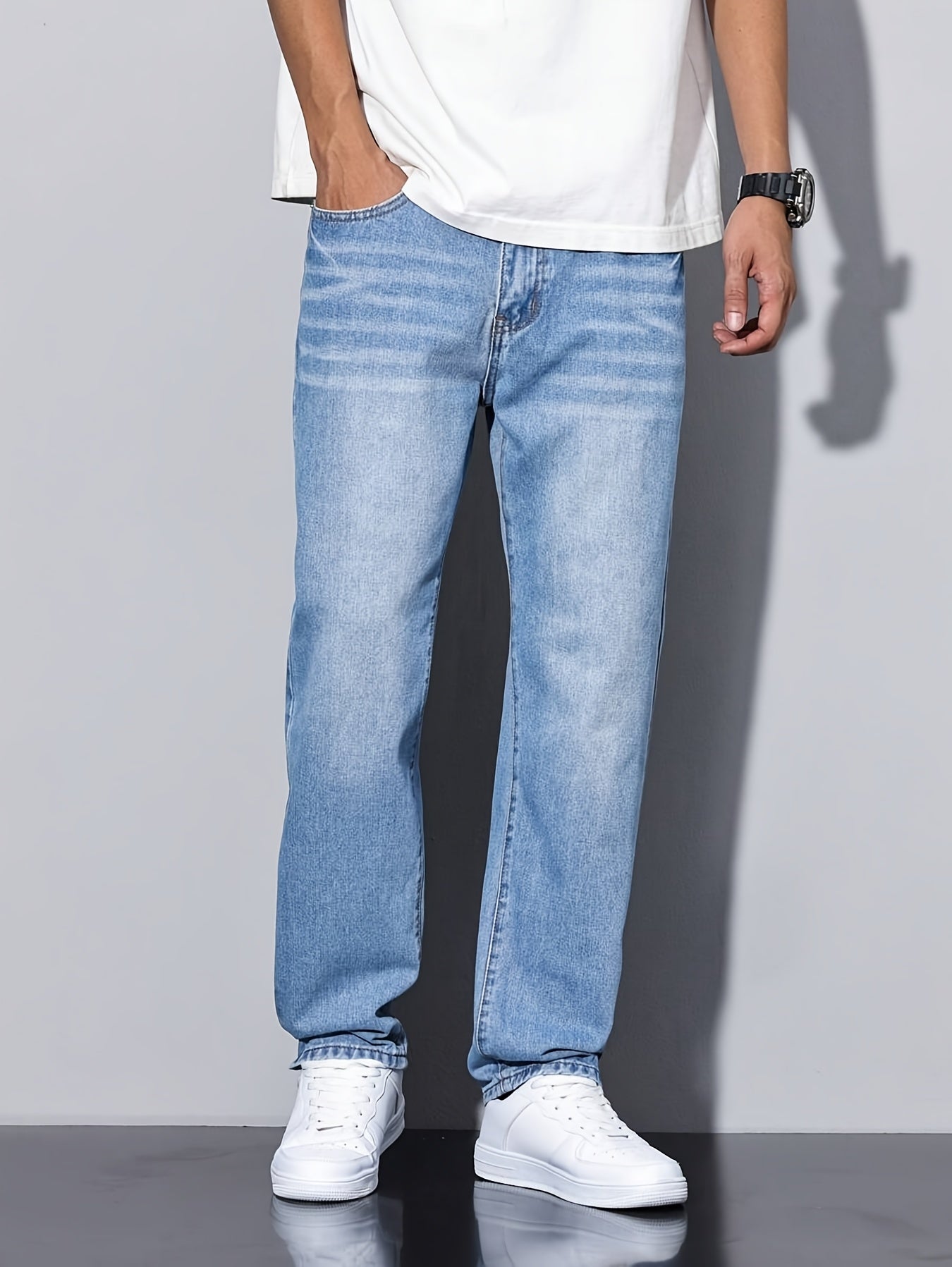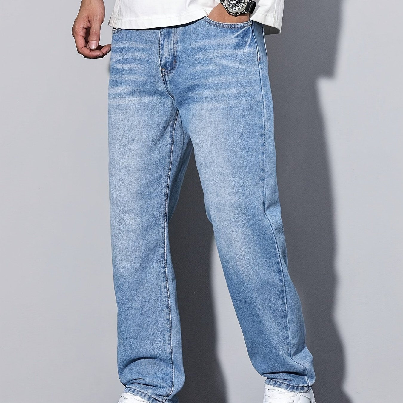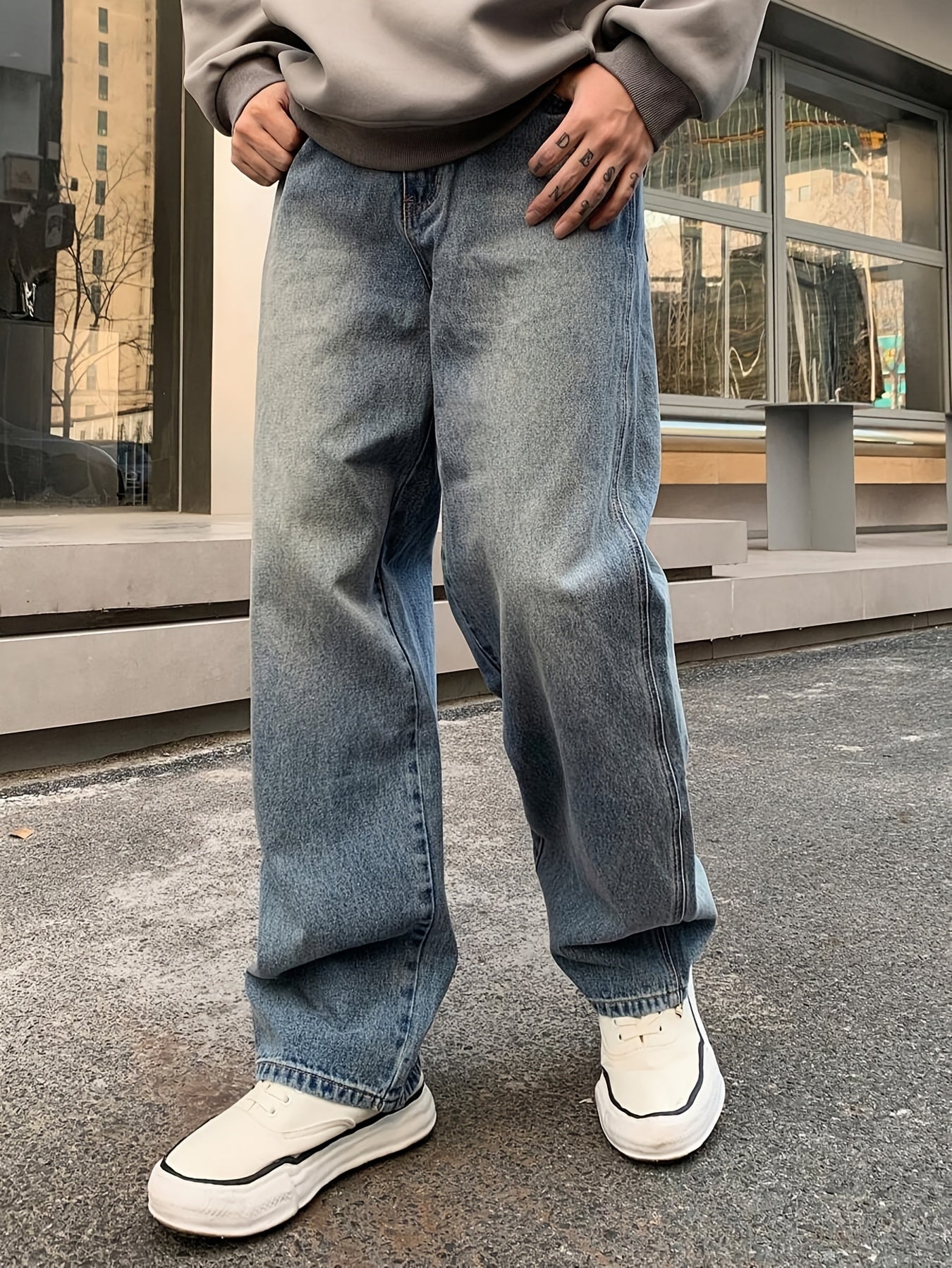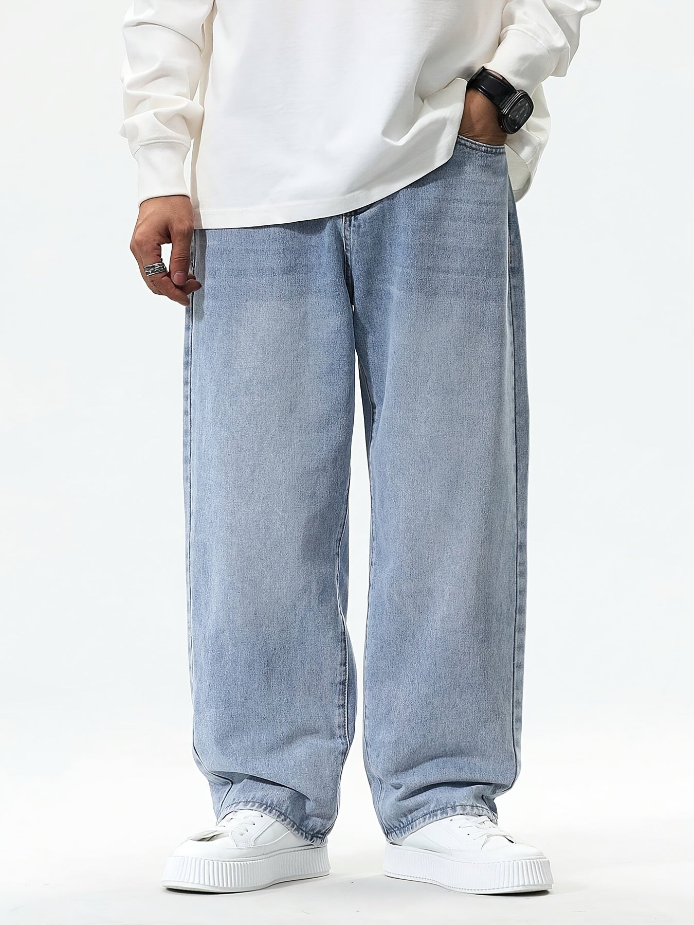 Men'S Casual Loose Fit Denim Jeans, 88.5% Cotton 8.5% Polyester 3% Rayon, All-Season Solid Color Washed Fabric, Regular Length, Non-Stretch Woven Denim Pants