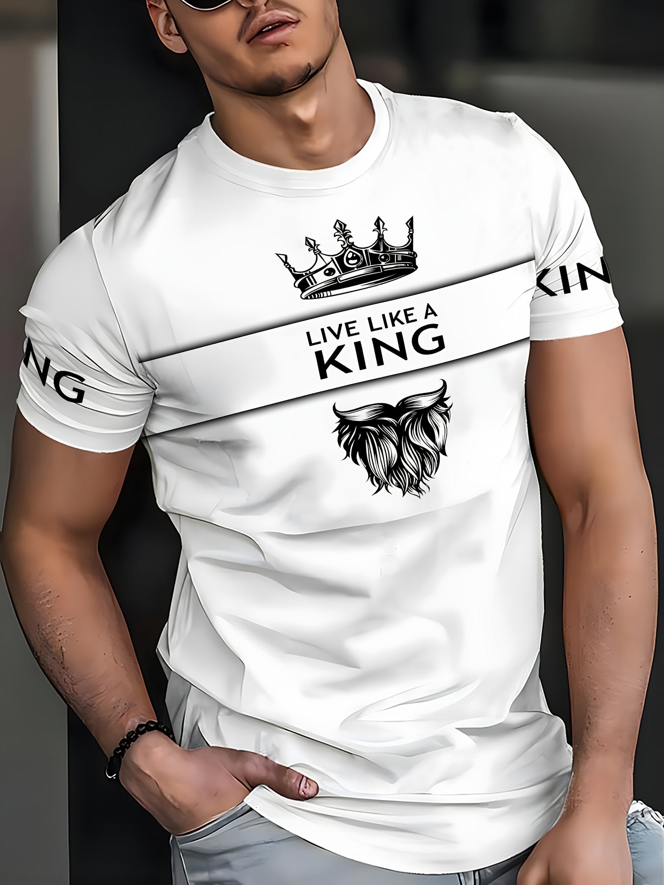 Men'S Casual Round Neck T-shirt, 100% Polyester Knit Fabric, Regular Fit, with 3D Number Print Stripe Contrast and K Letter Design, Suitable for Summer Sports Style T-shirt