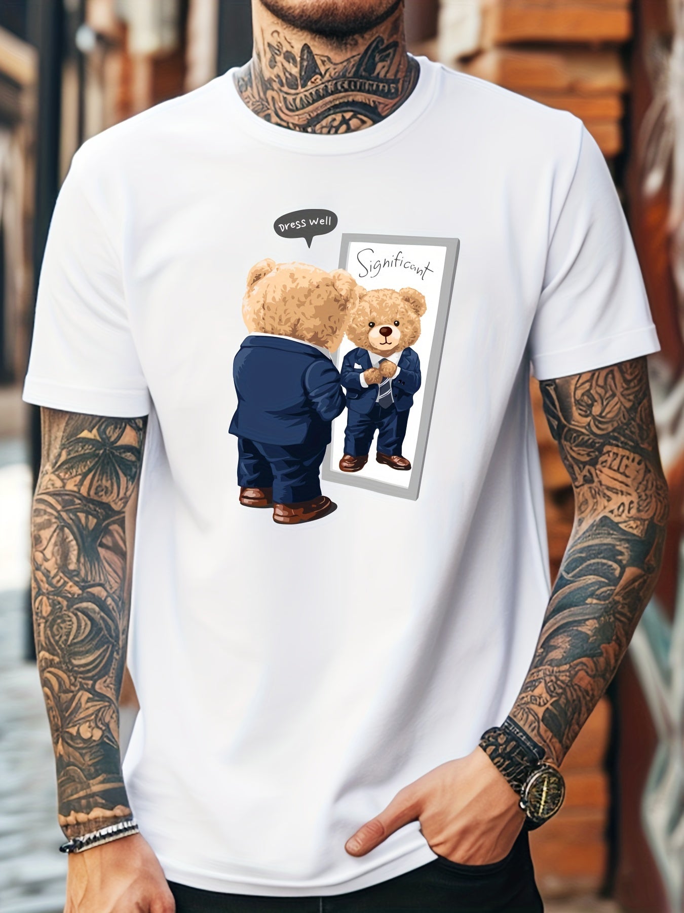 Men's Casual Short-Sleeve T-Shirt with Cool Bear Print - Breathable Polyester Blend, Stretch Fit, Machine Washable - Perfect for Summer, Men's Fashion, Sport