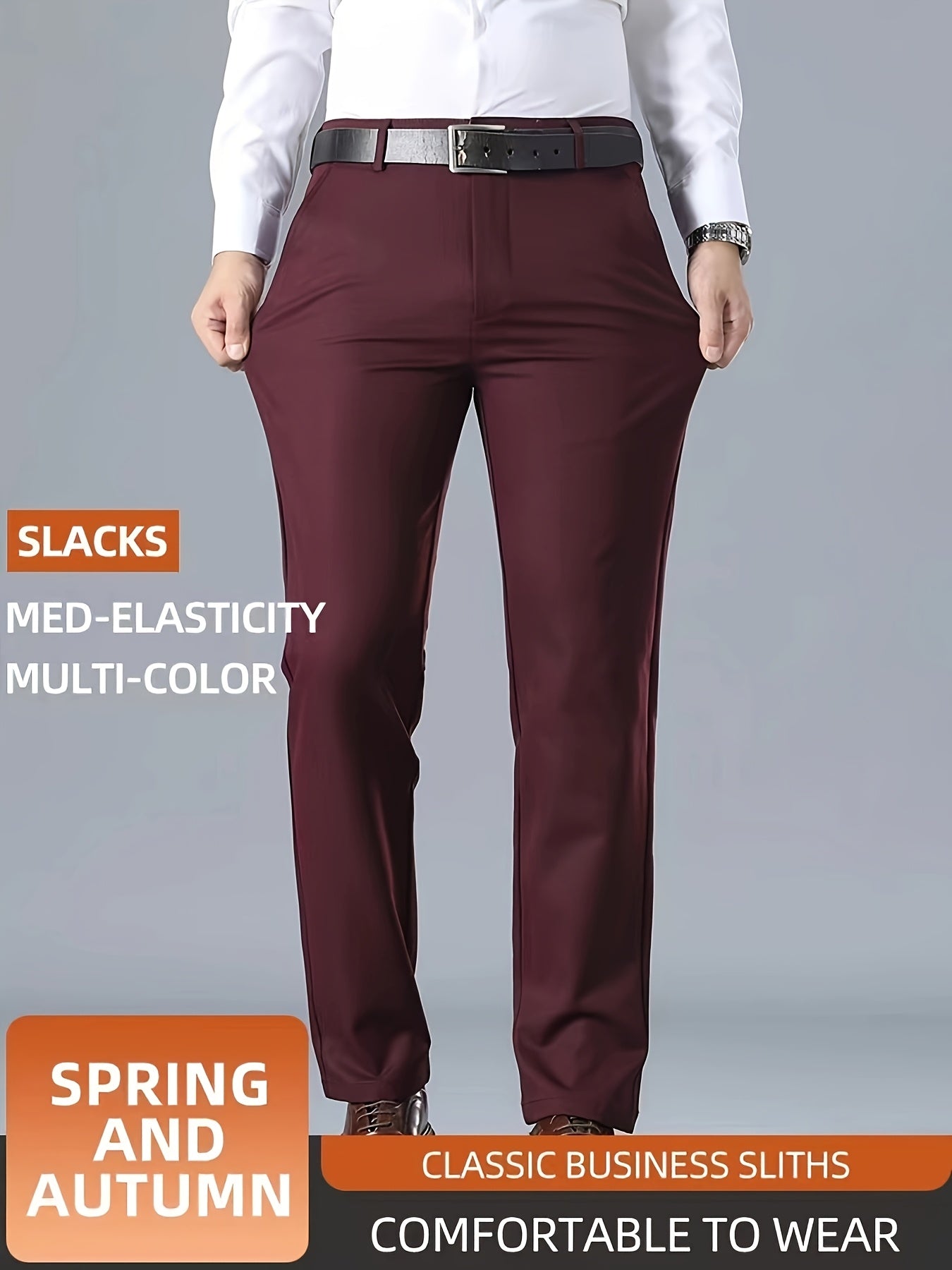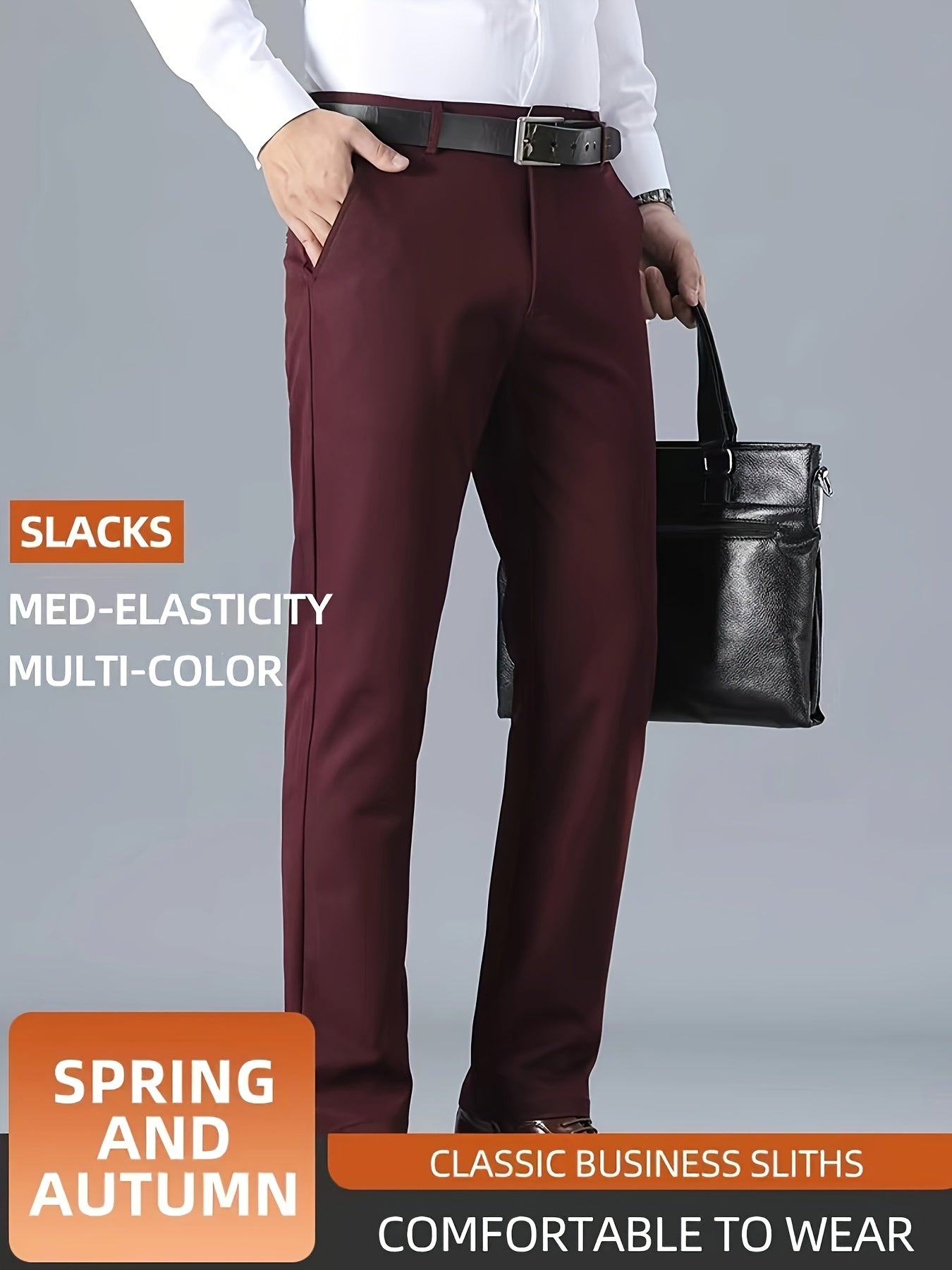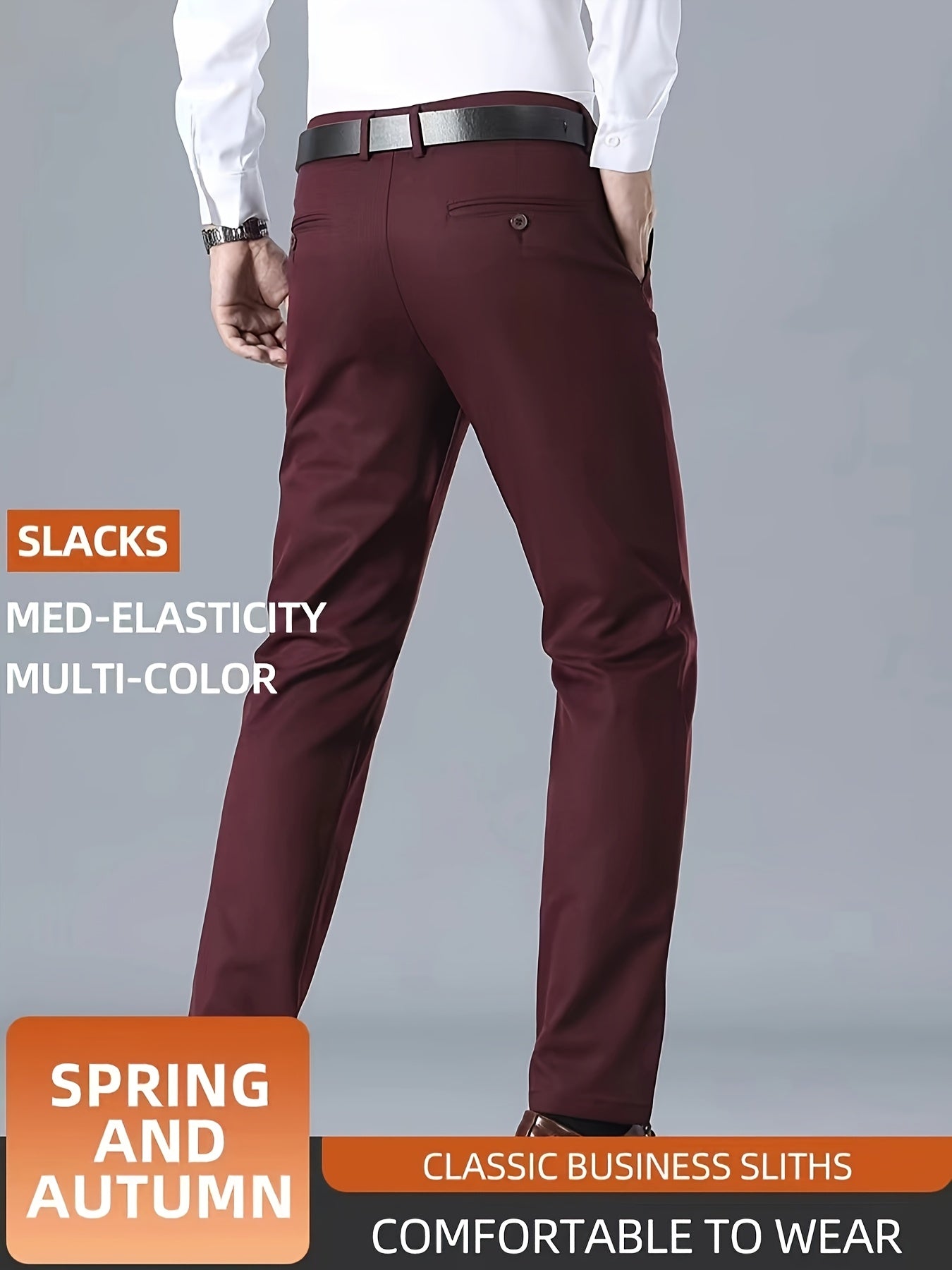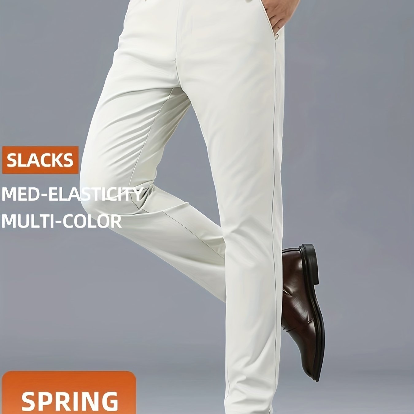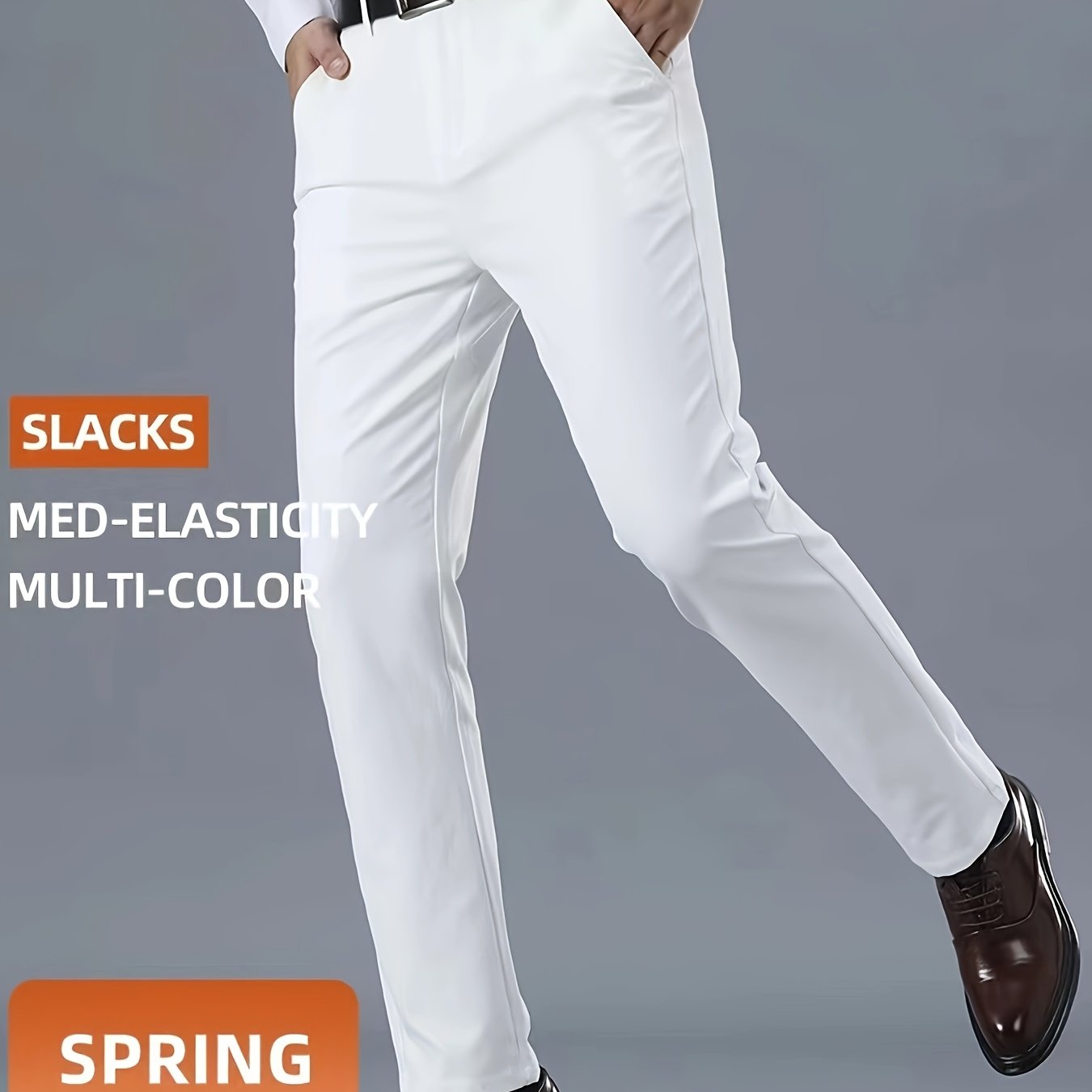 Men's Casual Solid Color Dress Pants - Polyester Blend, Woven, Regular Fit, All-Season Comfort, Adult Suit Pants