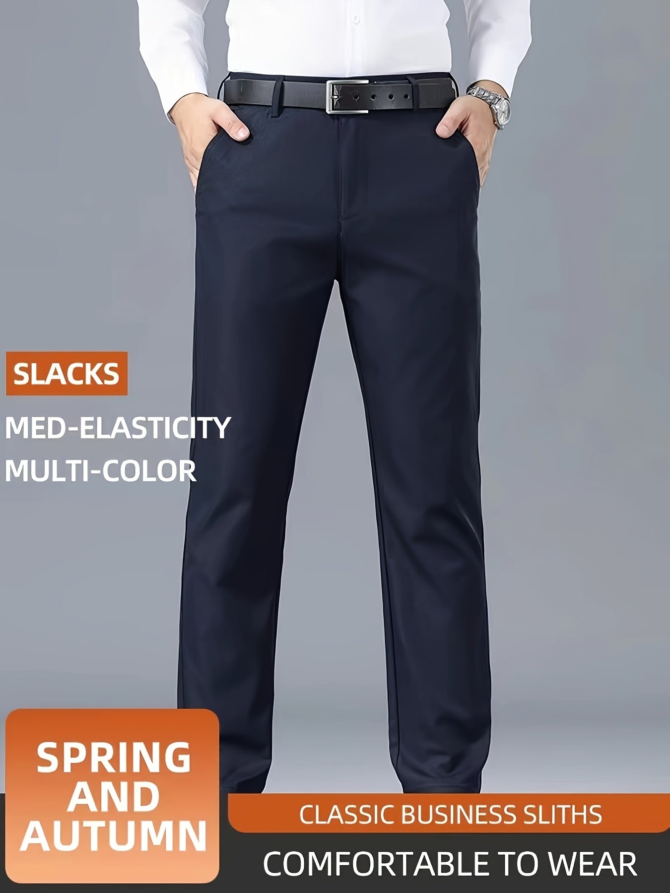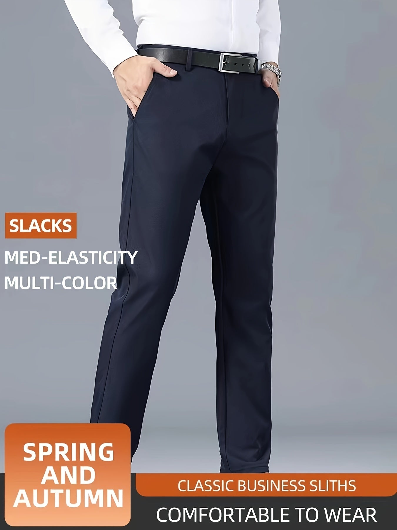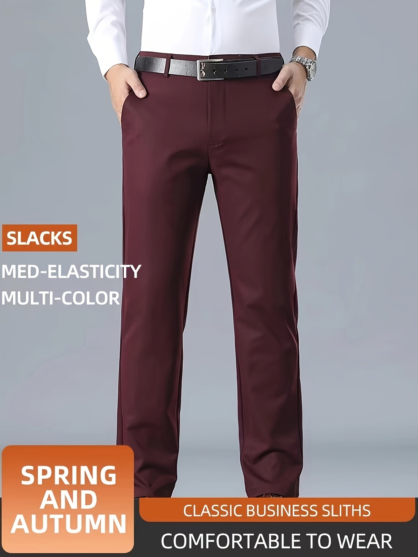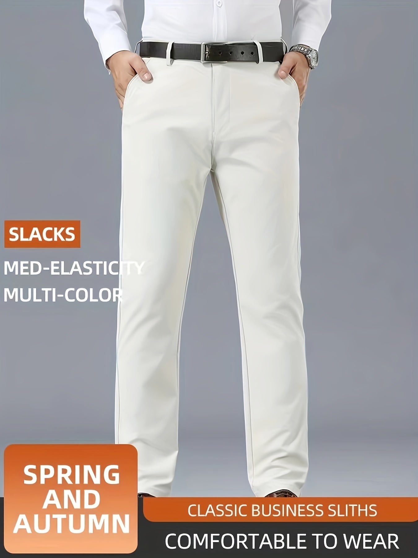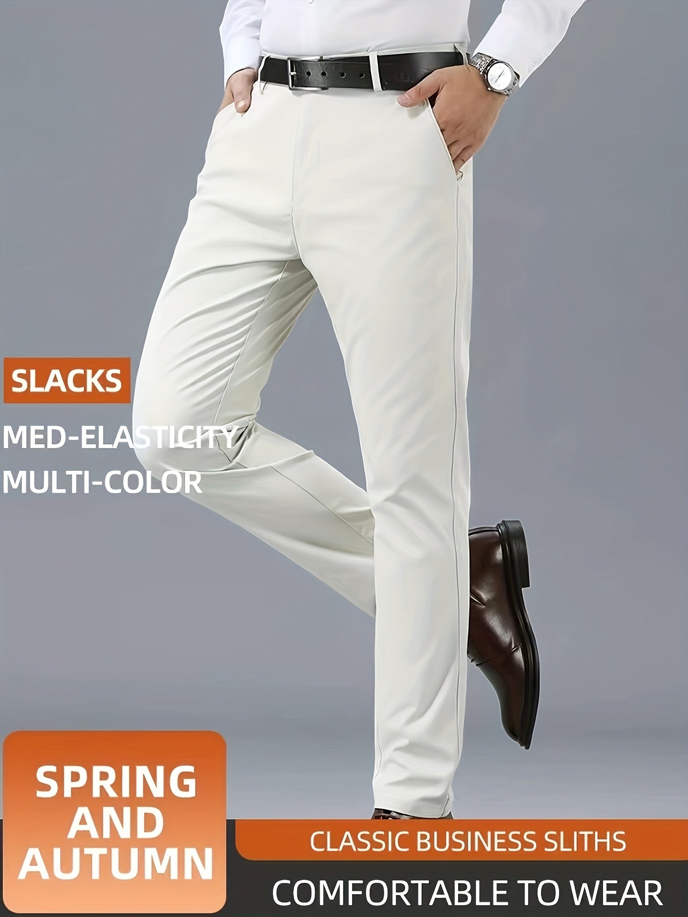 Men's Casual Solid Color Dress Pants - Polyester Blend, Woven, Regular Fit, All-Season Comfort, Adult Suit Pants
