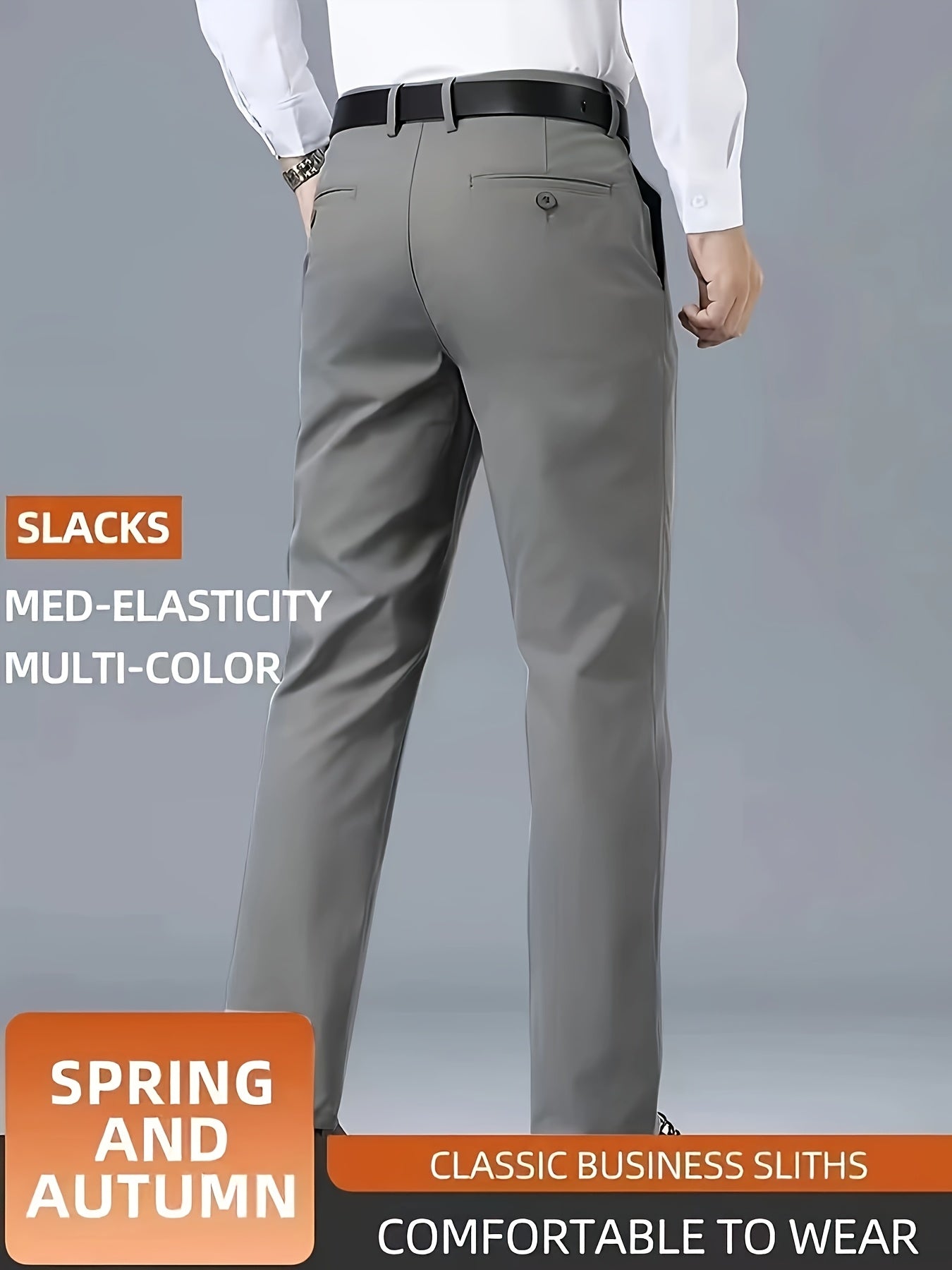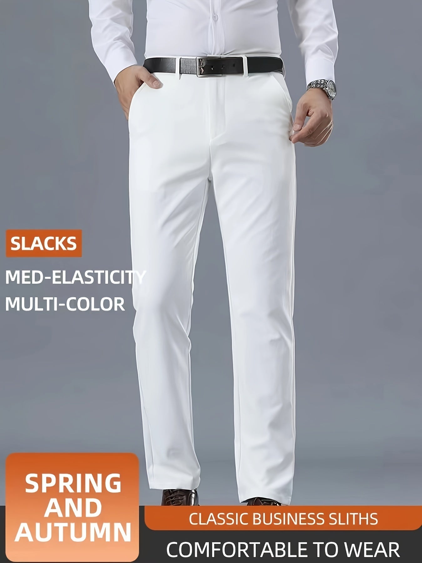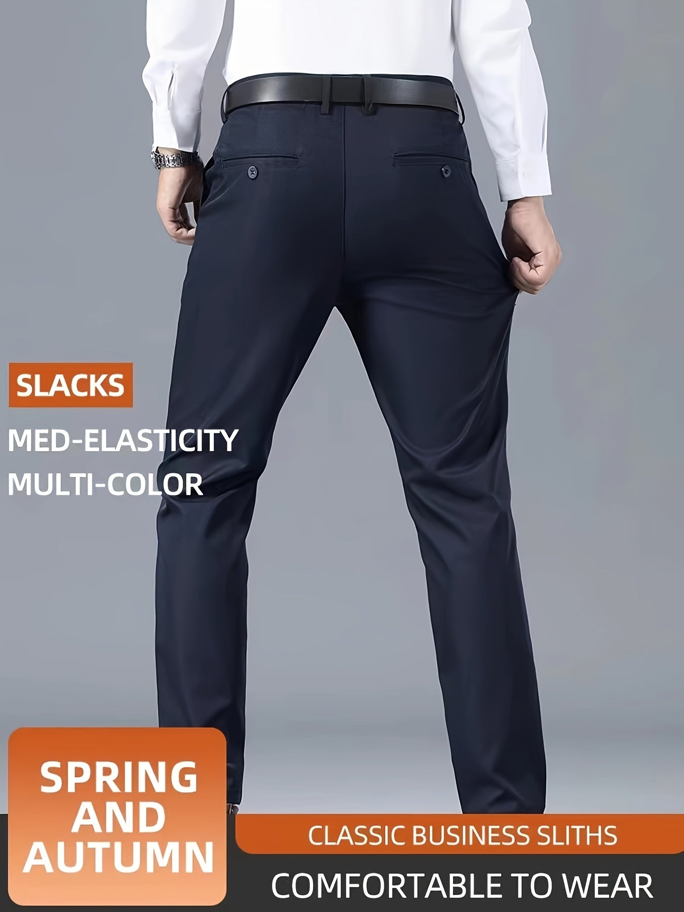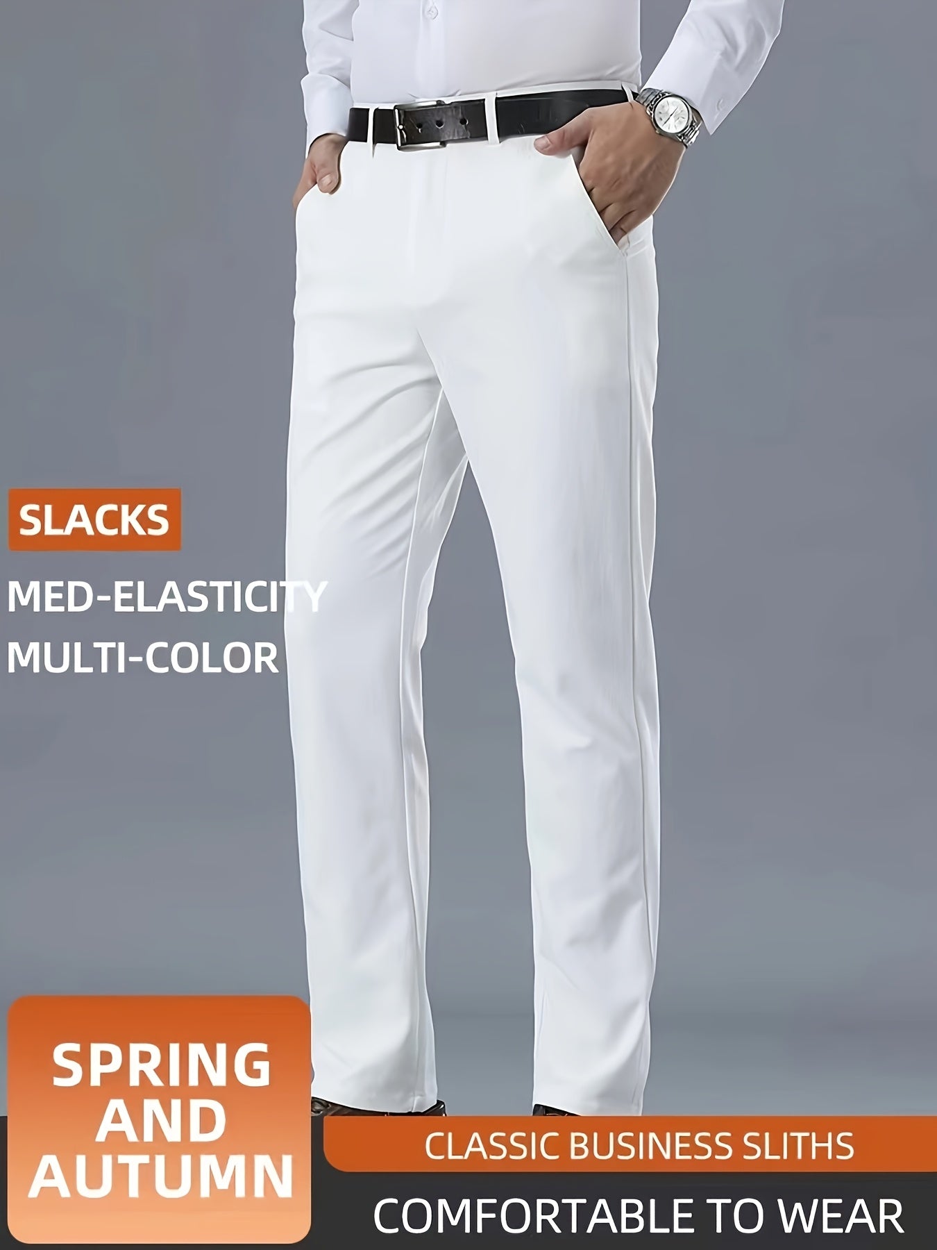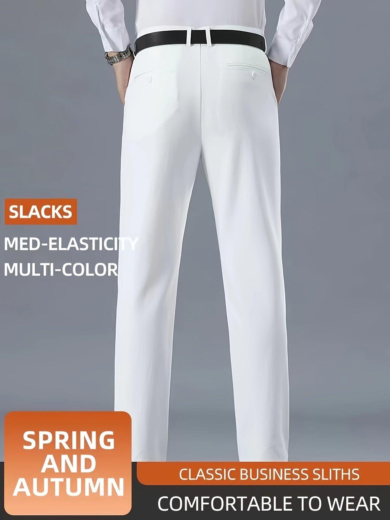 Men's Casual Solid Color Dress Pants - Polyester Blend, Woven, Regular Fit, All-Season Comfort, Adult Suit Pants
