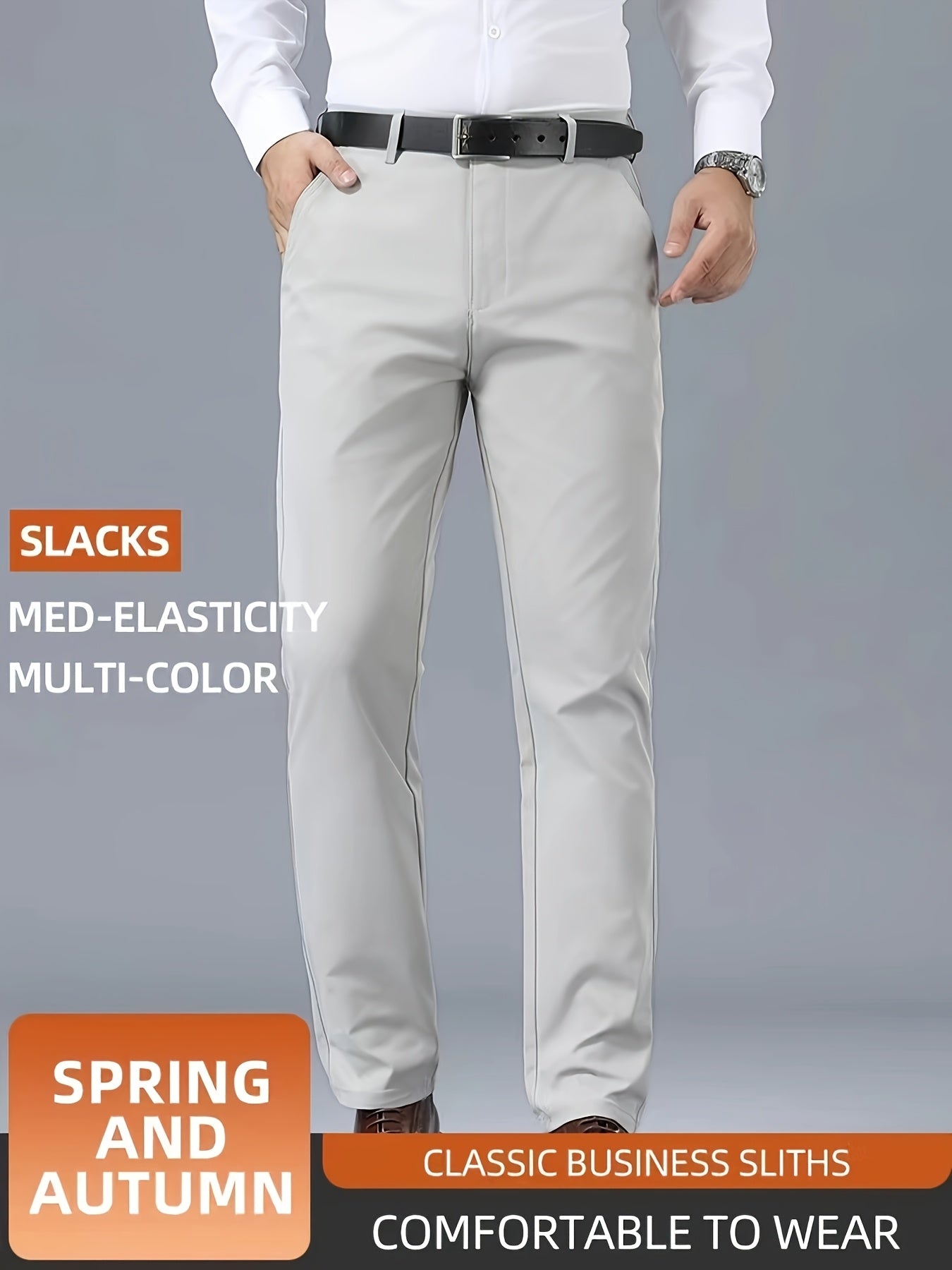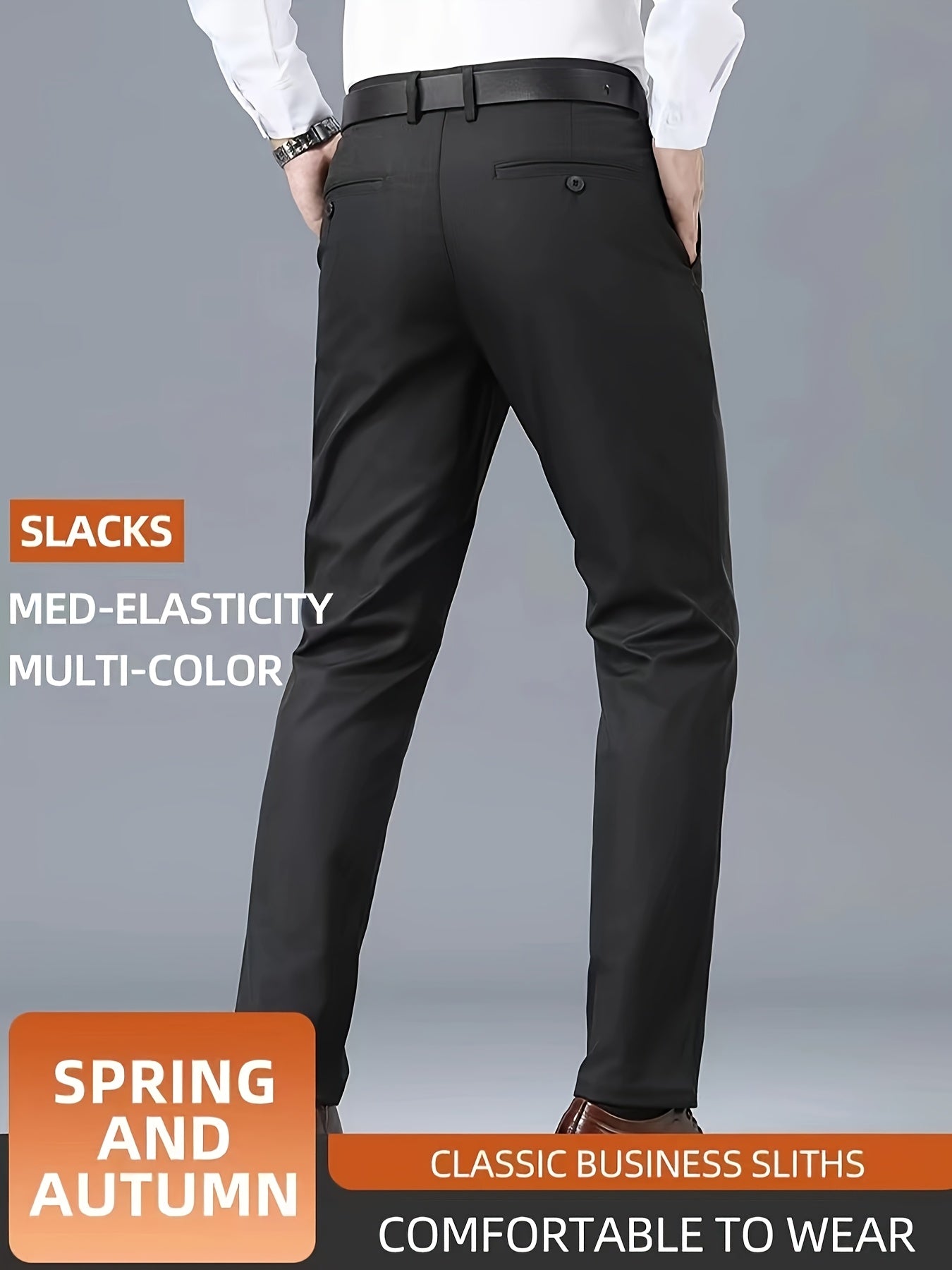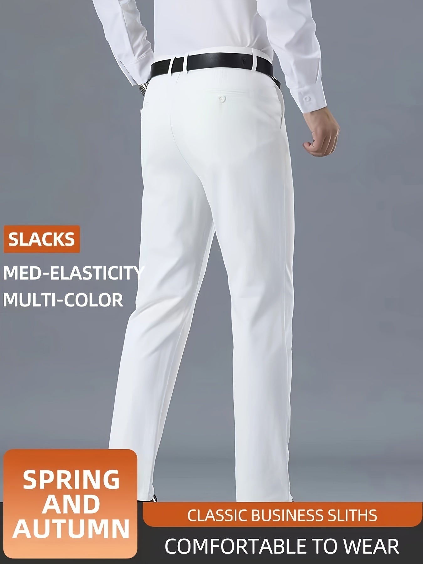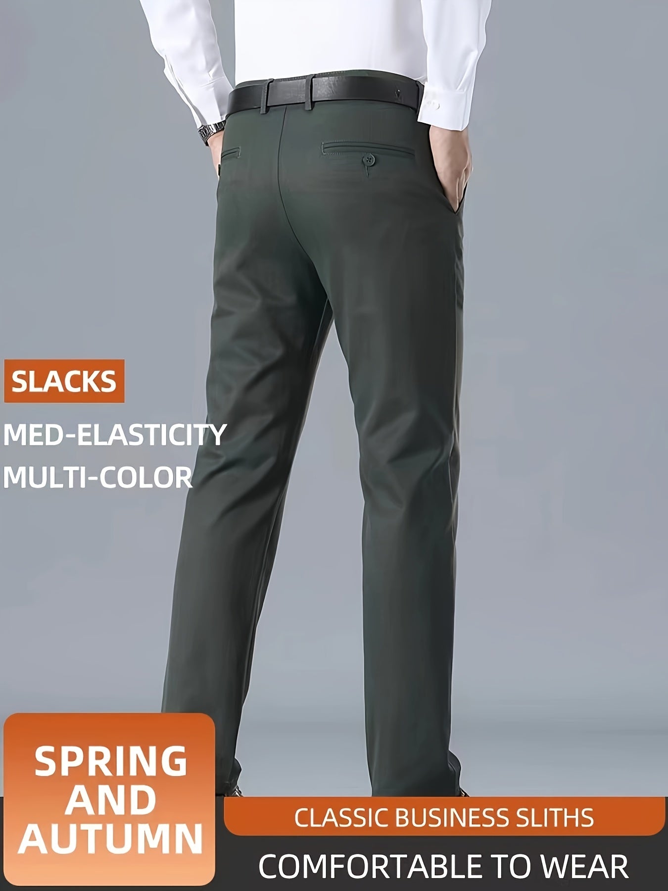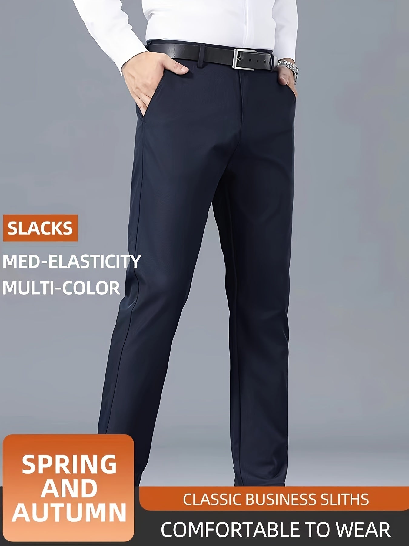 Men's Casual Solid Color Dress Pants - Polyester Blend, Woven, Regular Fit, All-Season Comfort, Adult Suit Pants