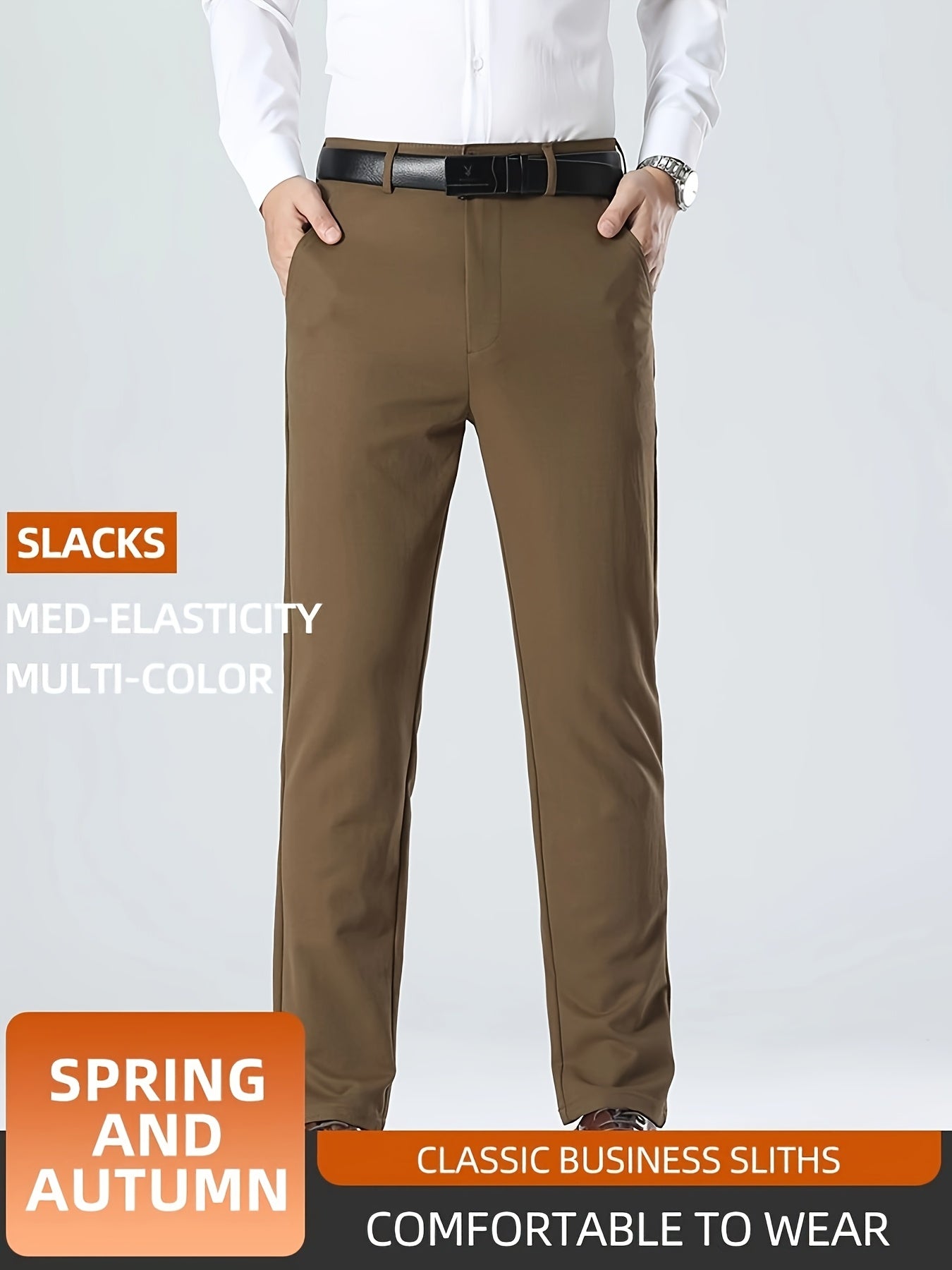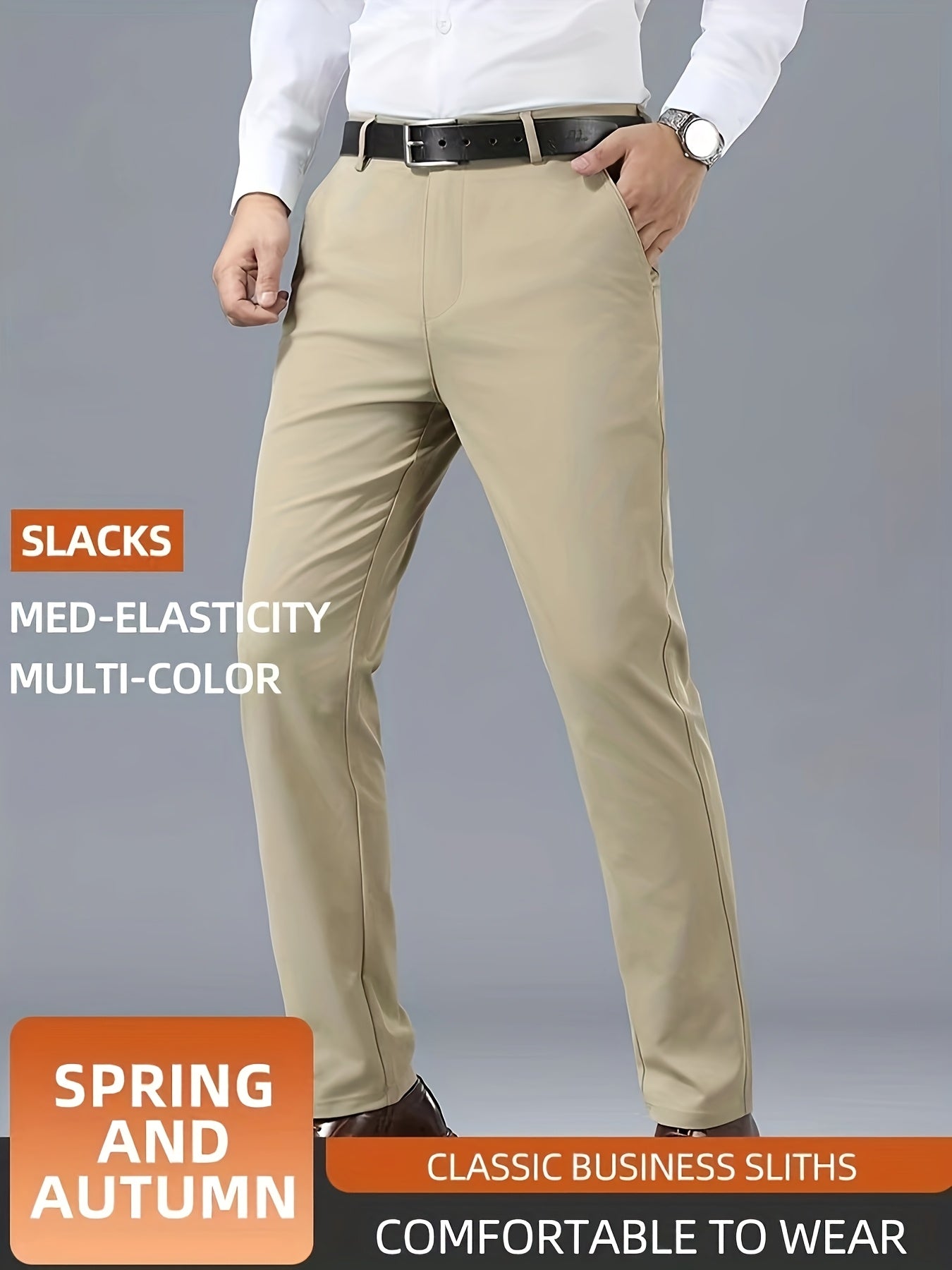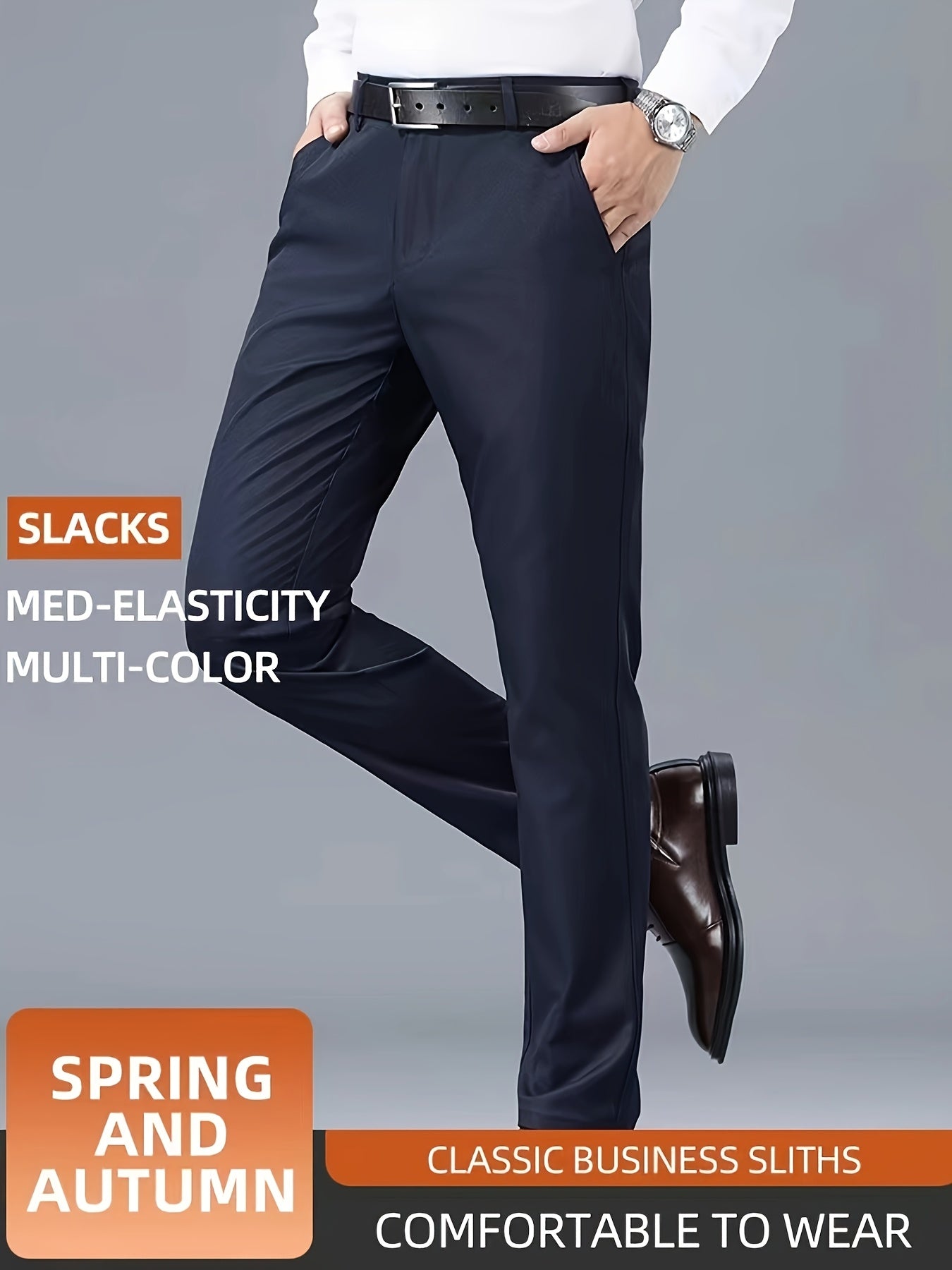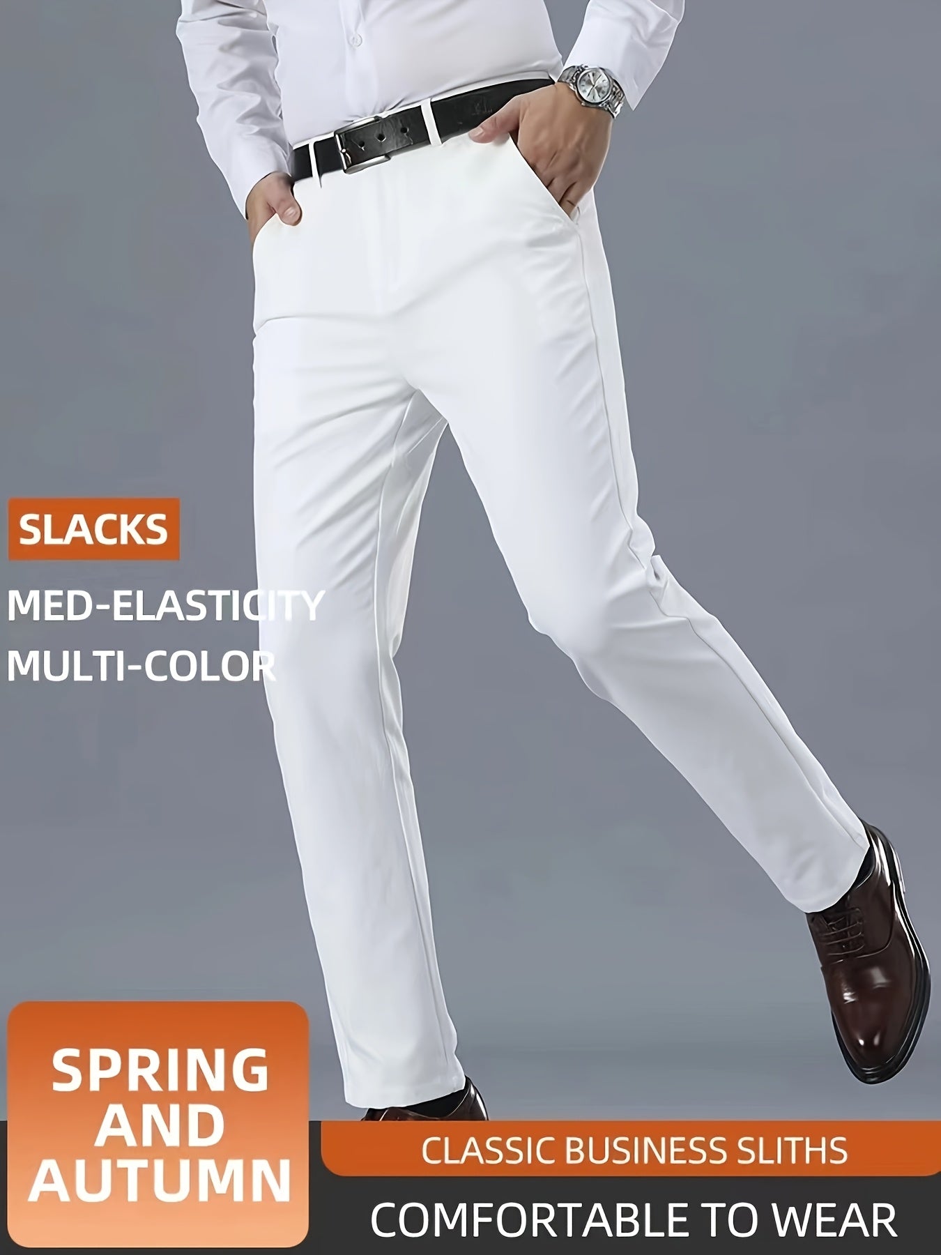Men's Casual Solid Color Dress Pants - Polyester Blend, Woven, Regular Fit, All-Season Comfort, Adult Suit Pants