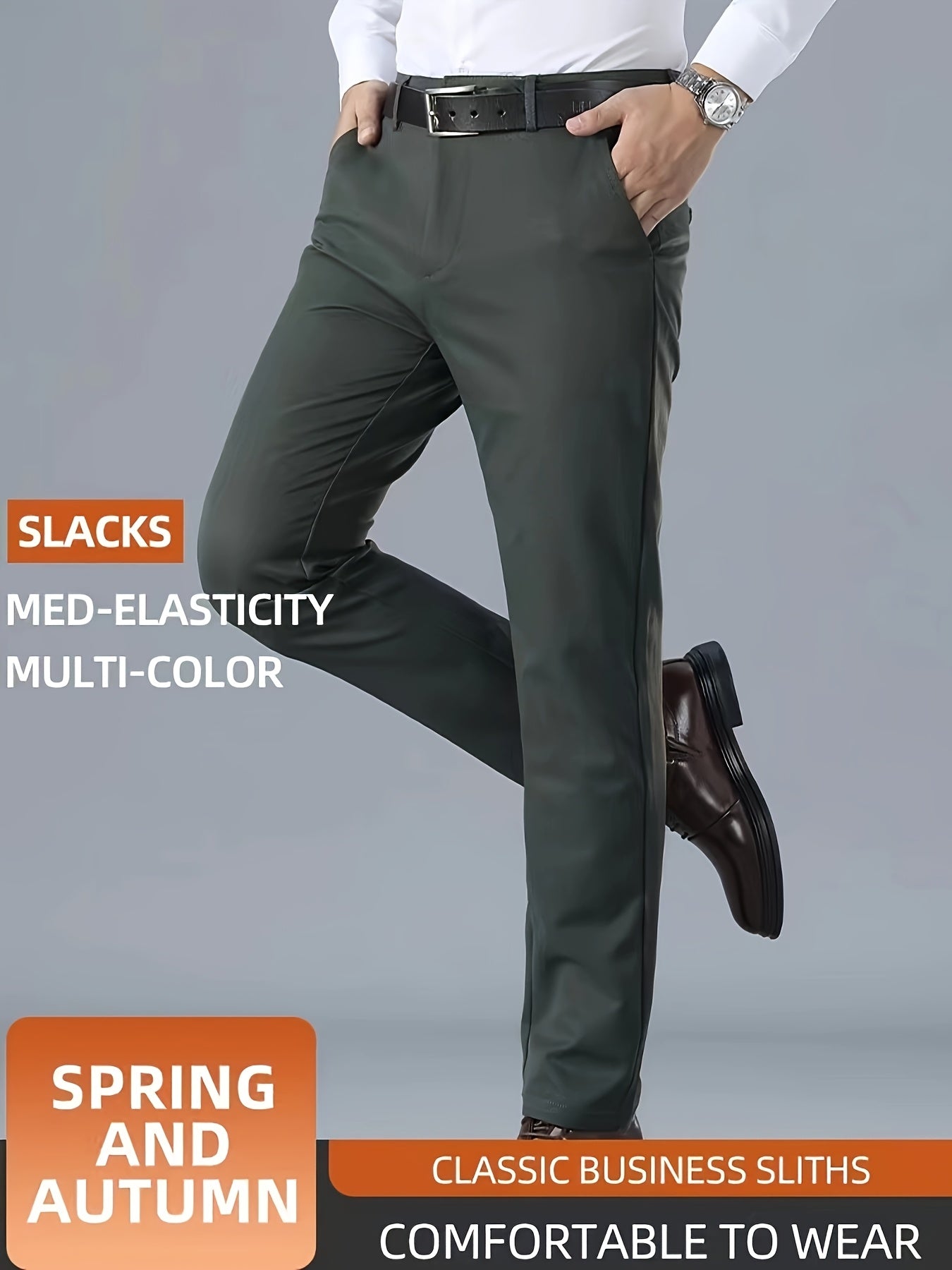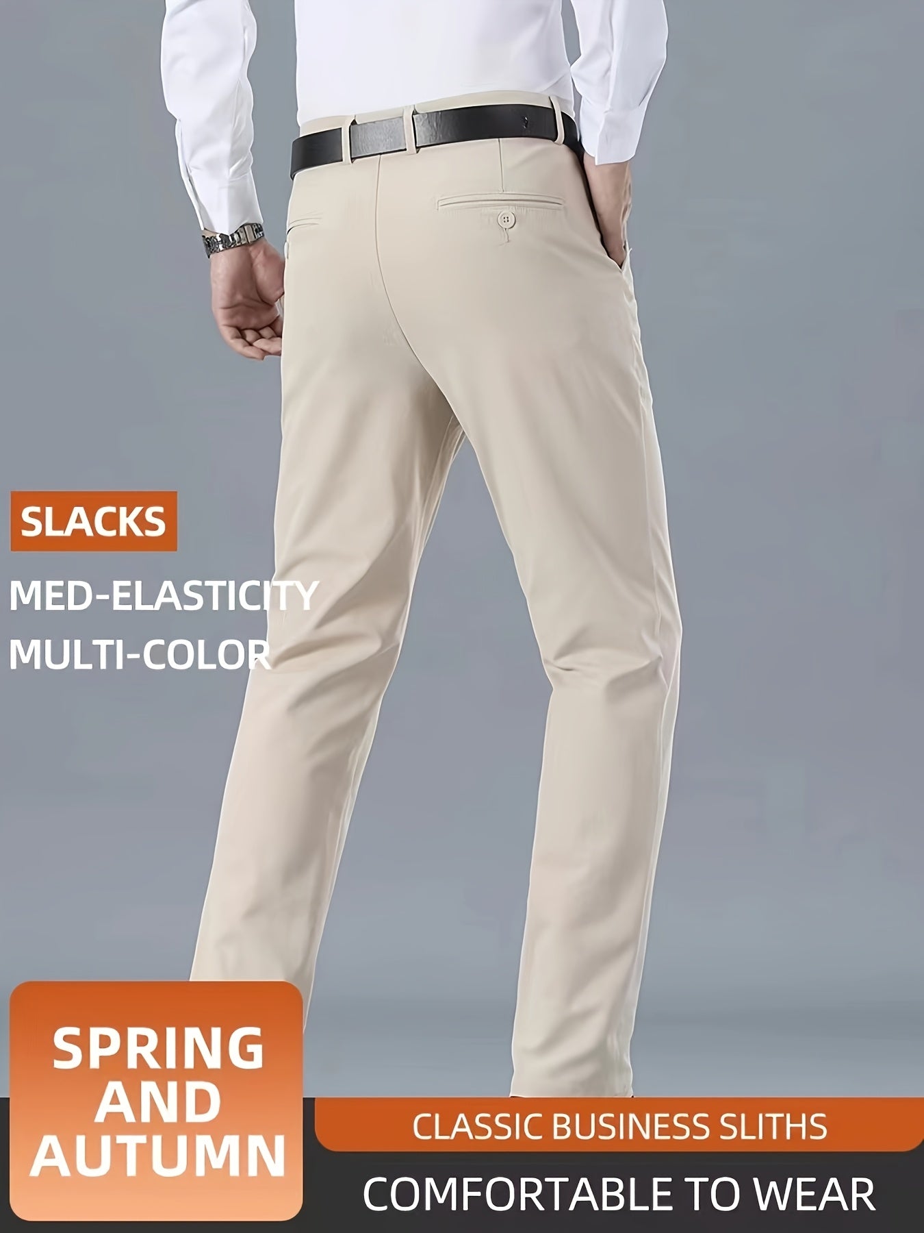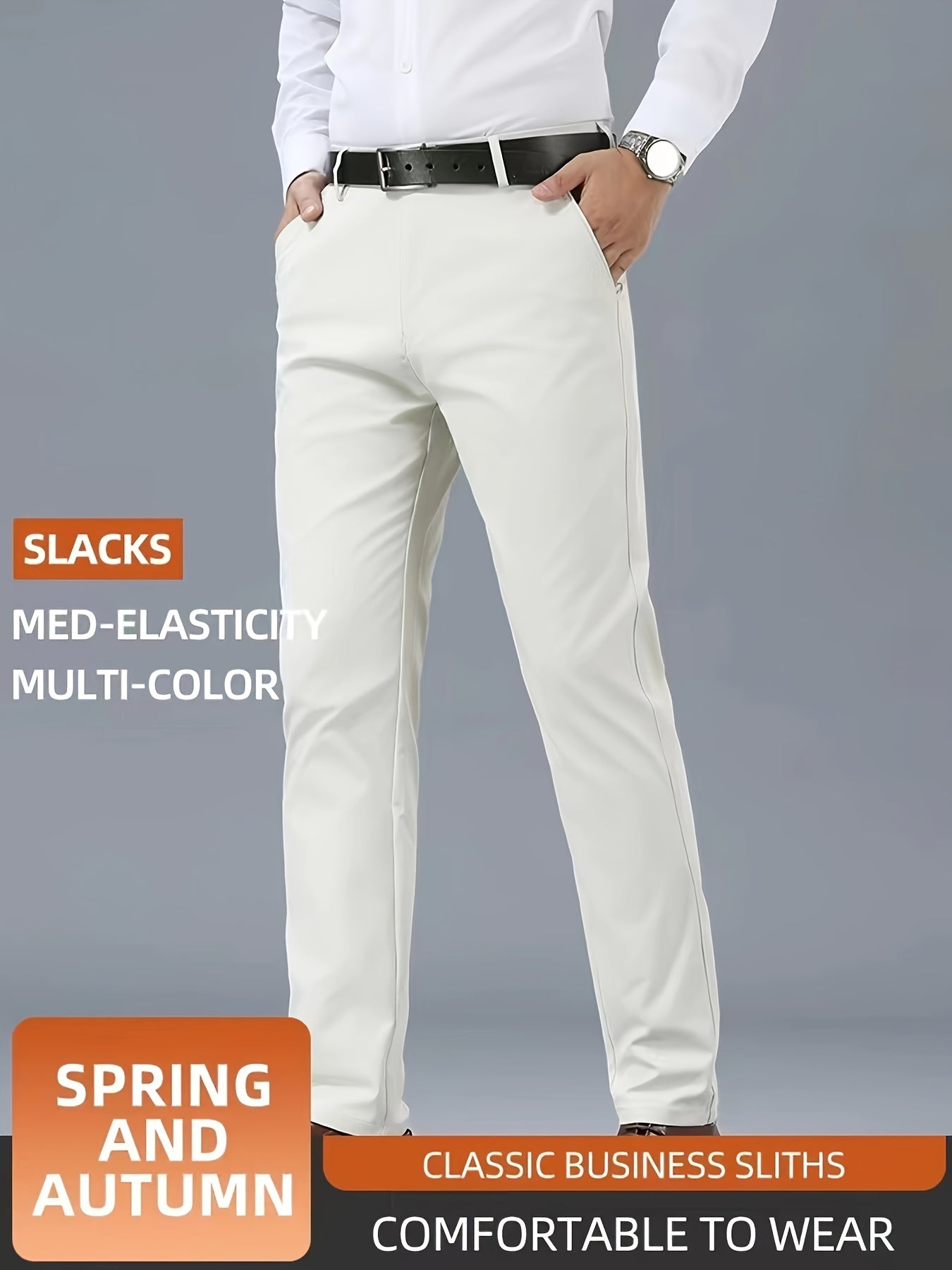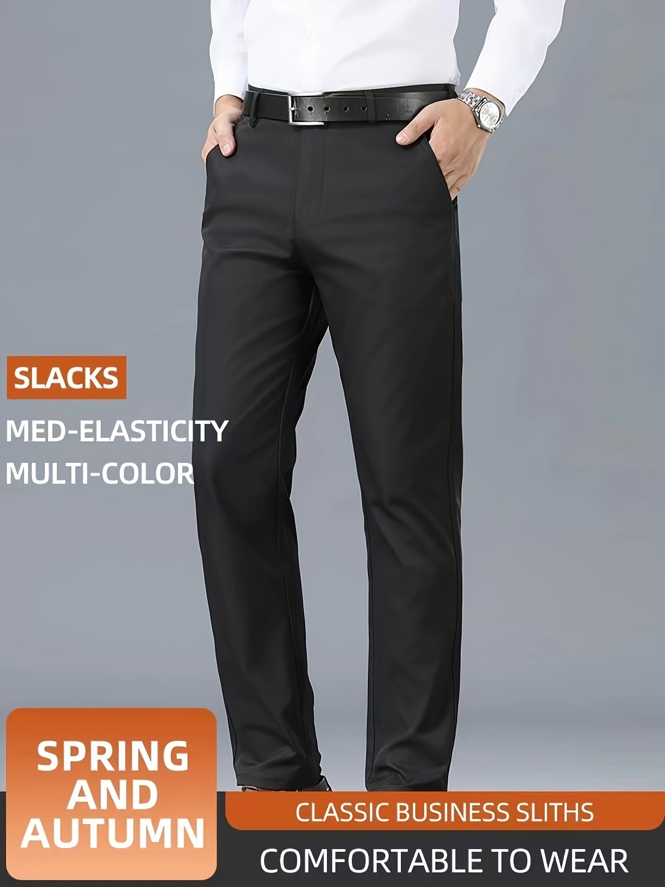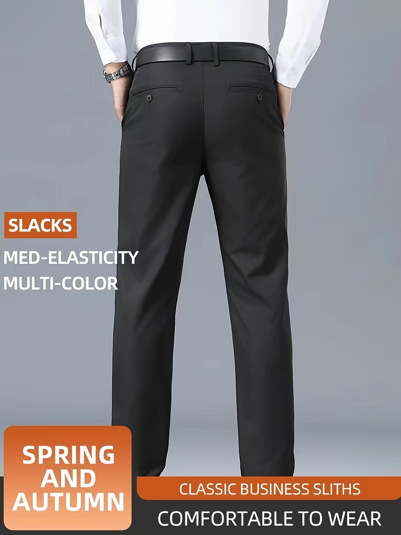Men's Casual Solid Color Dress Pants - Polyester Blend, Woven, Regular Fit, All-Season Comfort, Adult Suit Pants