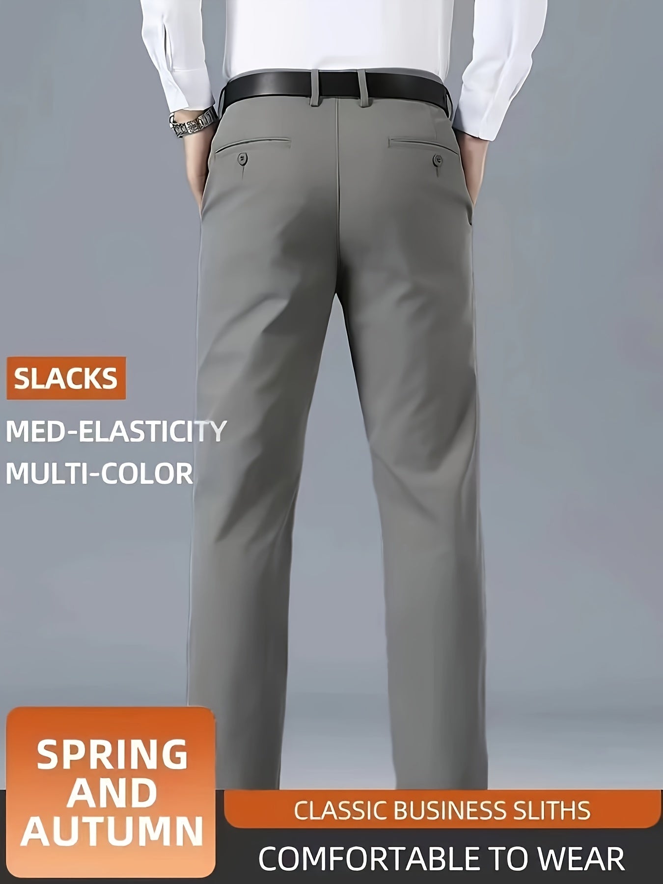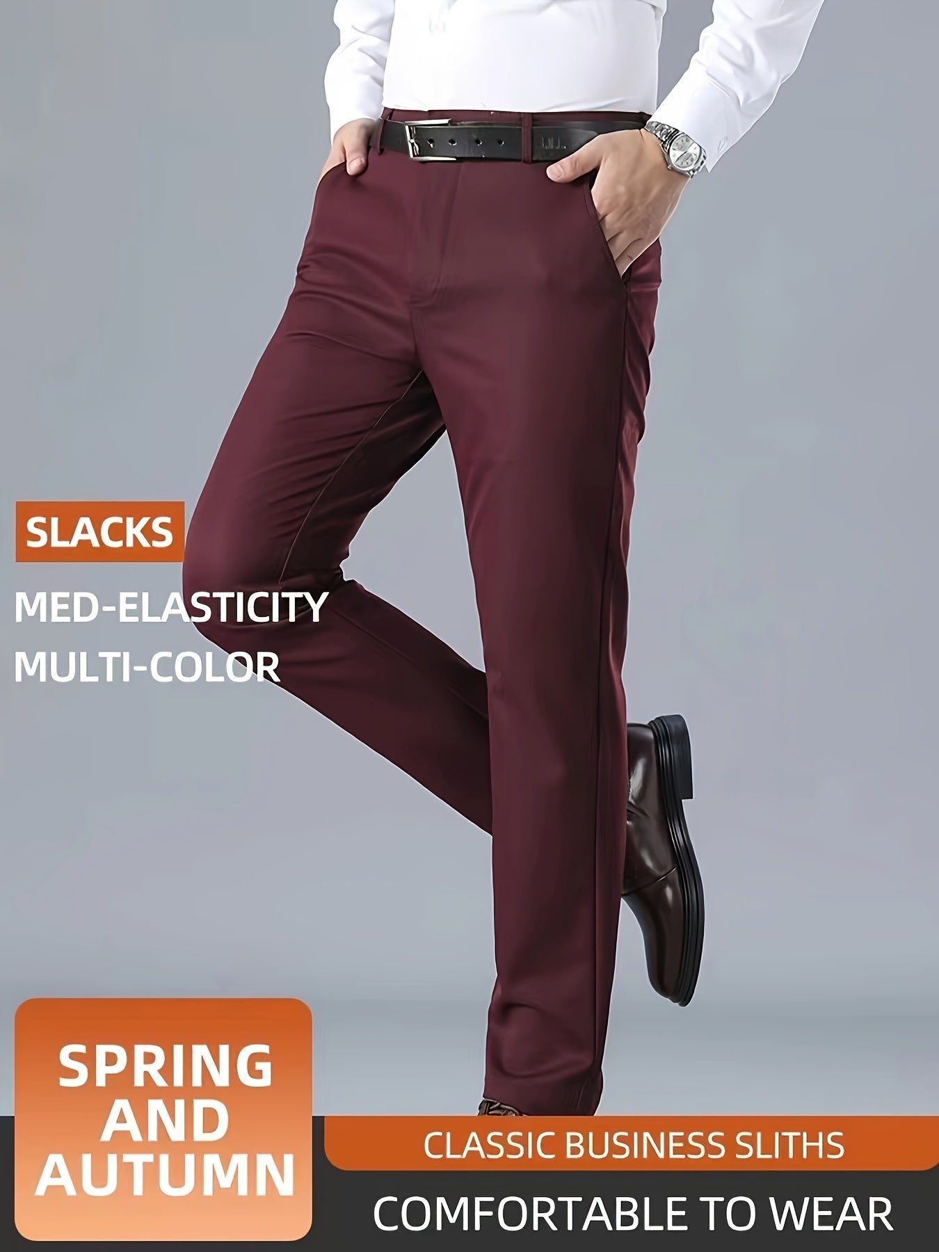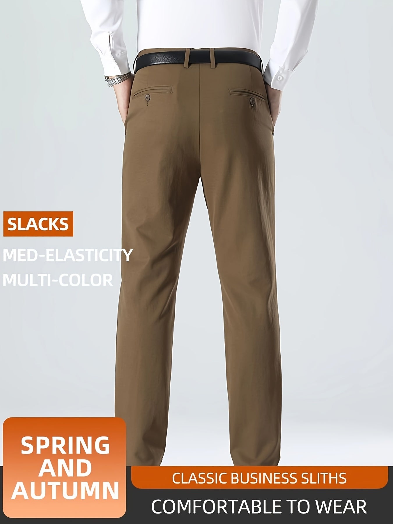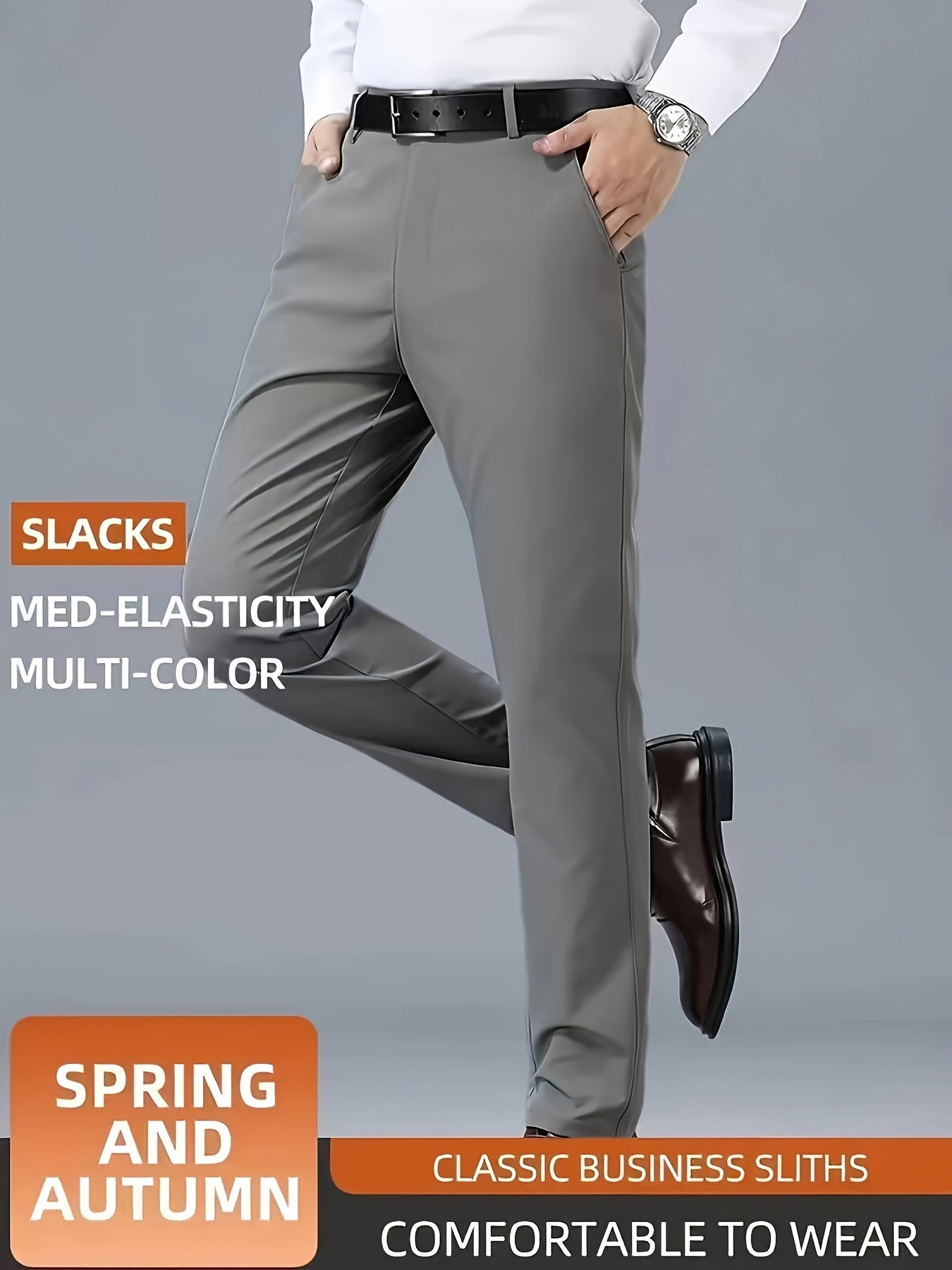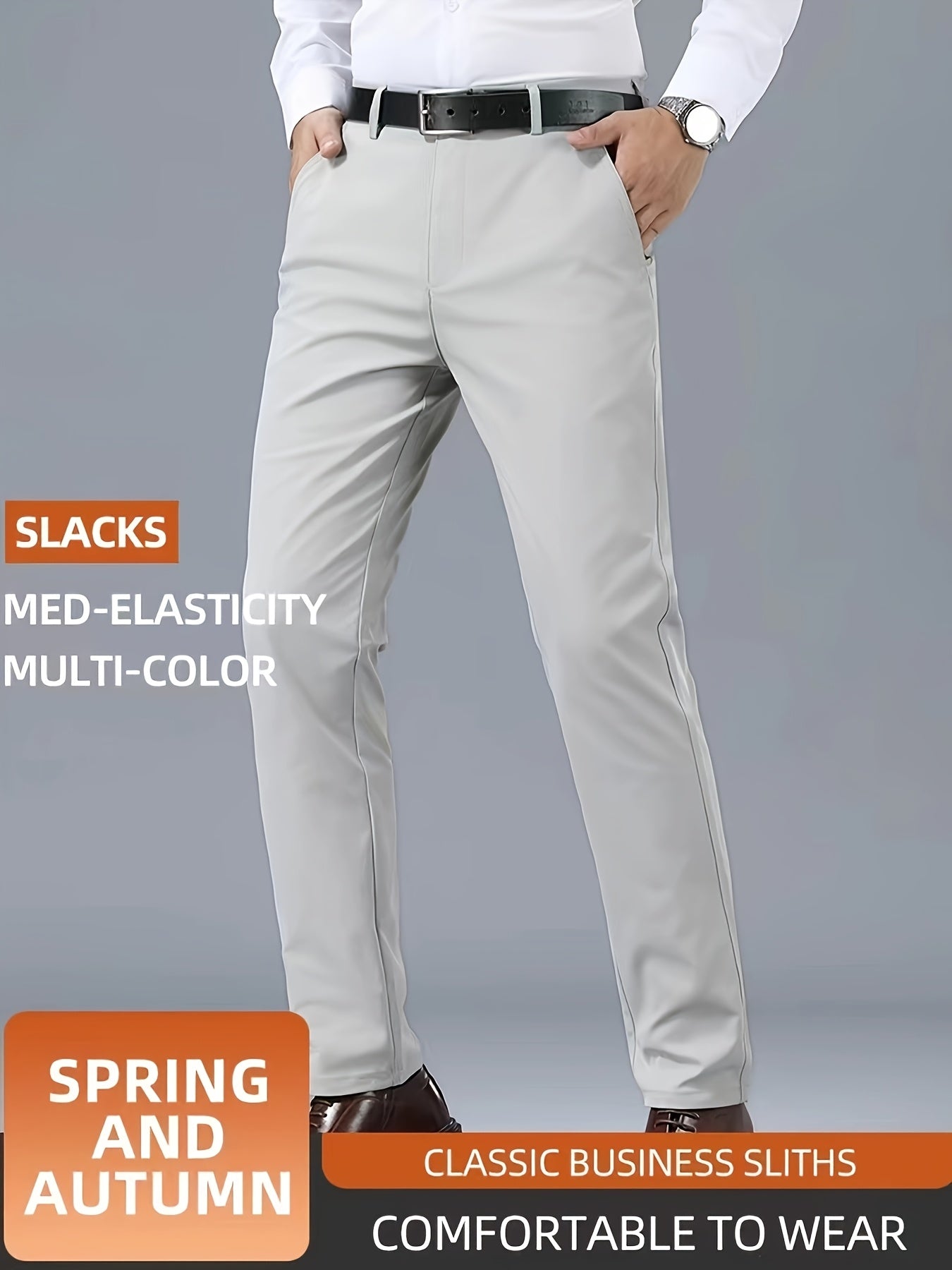 Men's Casual Solid Color Dress Pants - Polyester Blend, Woven, Regular Fit, All-Season Comfort, Adult Suit Pants