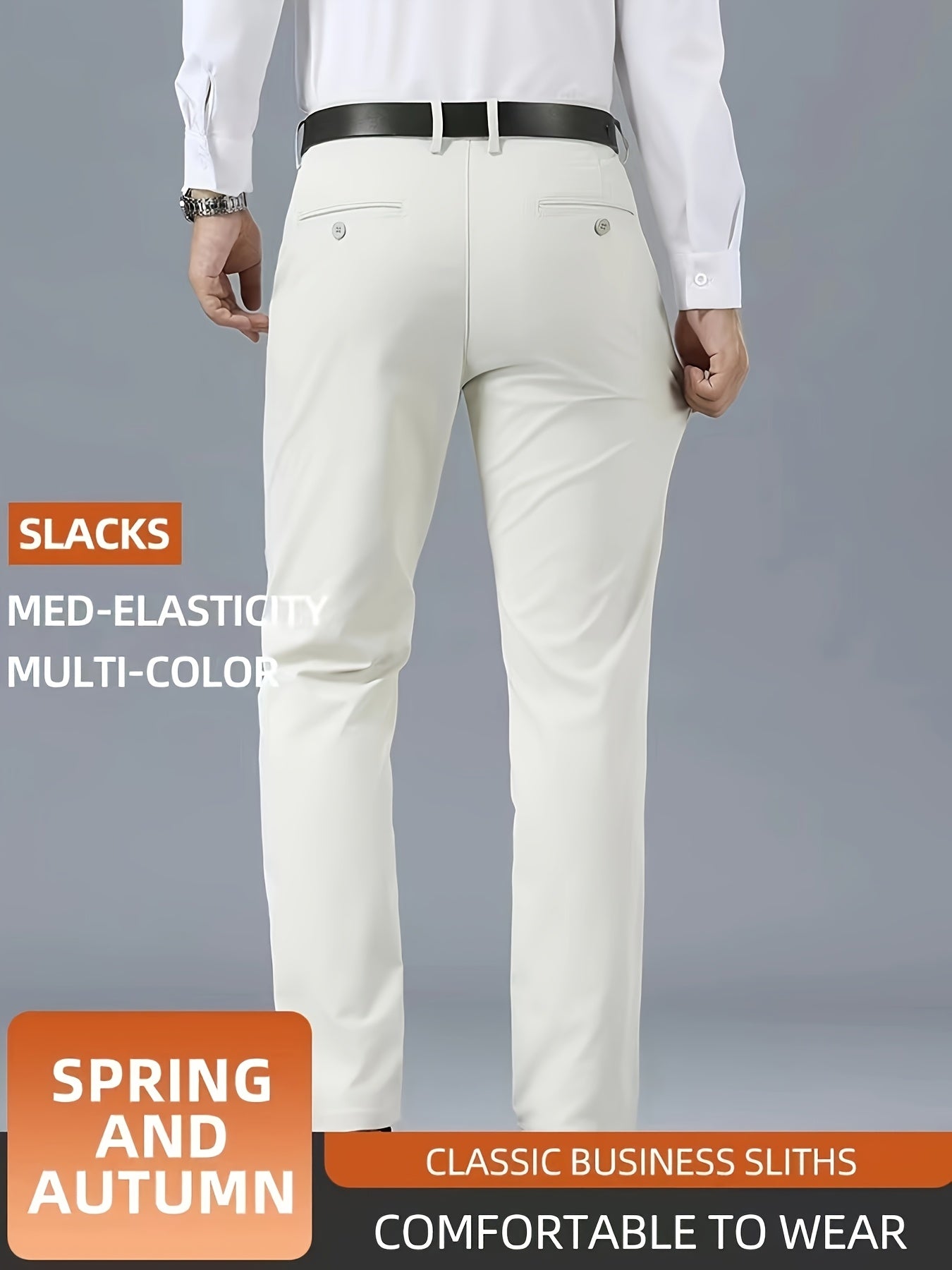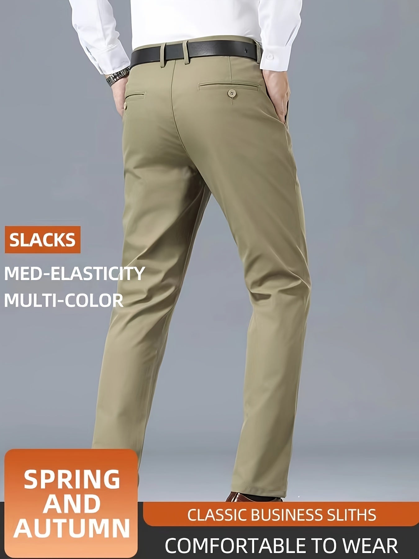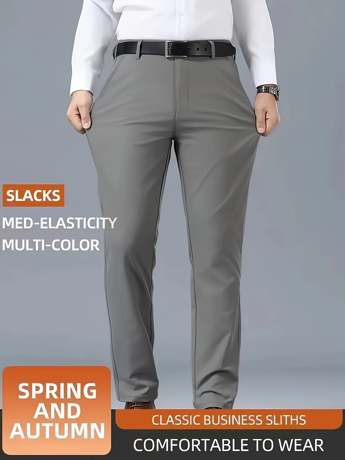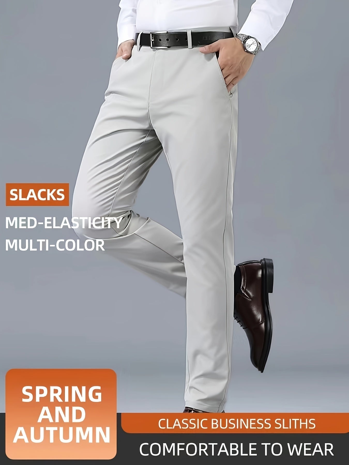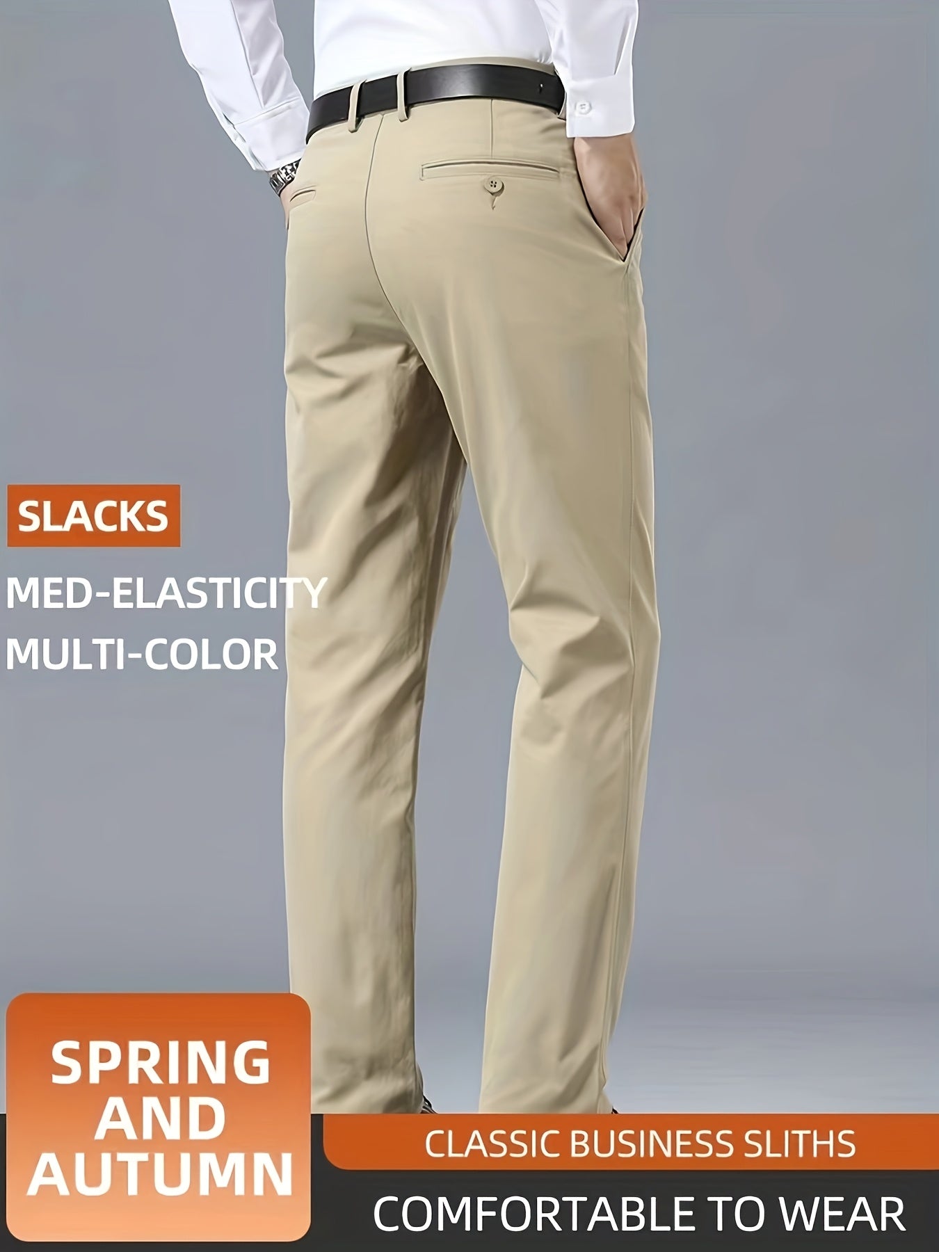 Men's Casual Solid Color Dress Pants - Polyester Blend, Woven, Regular Fit, All-Season Comfort, Adult Suit Pants