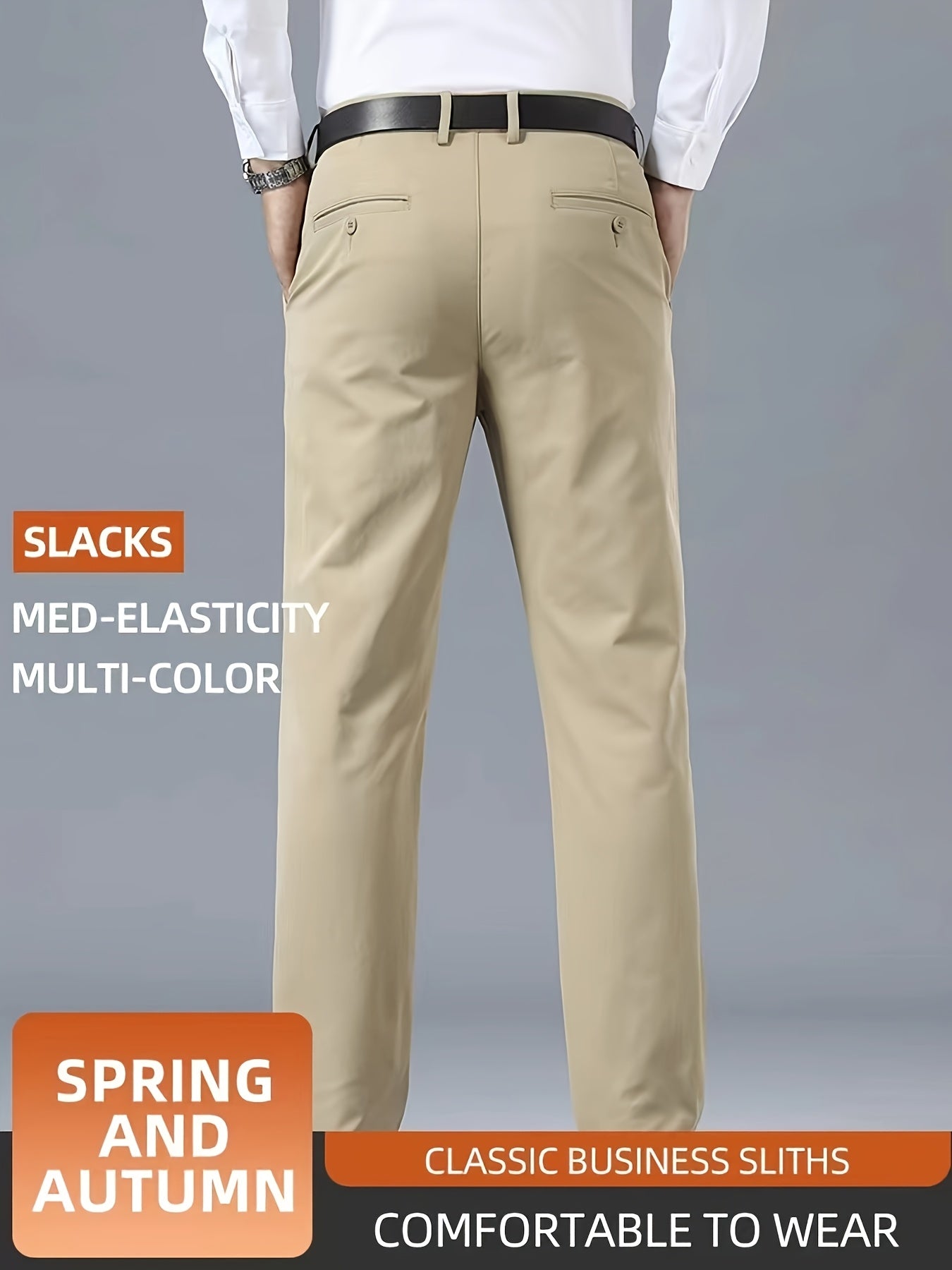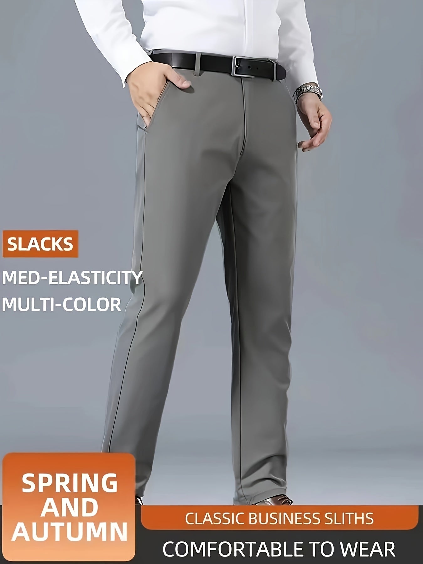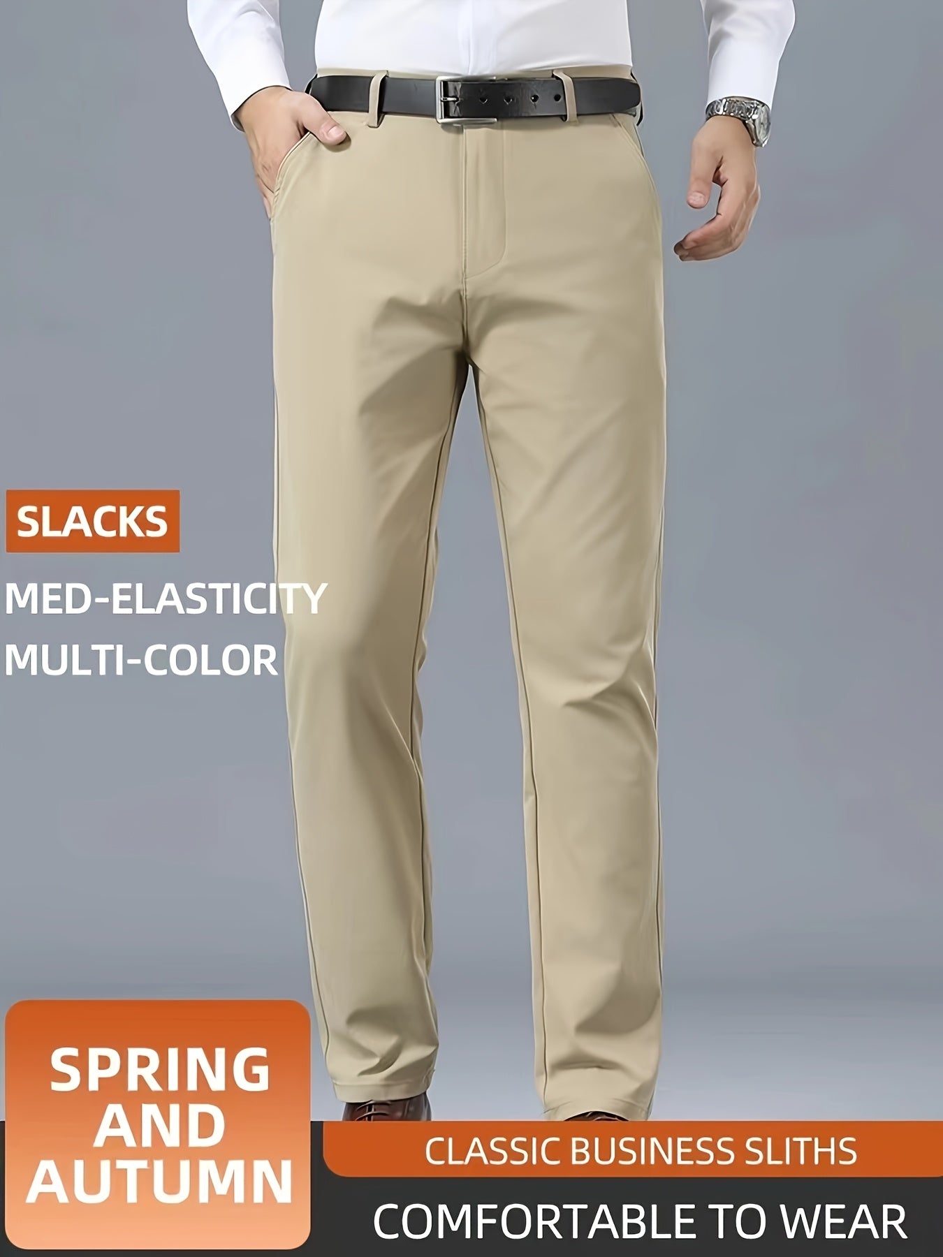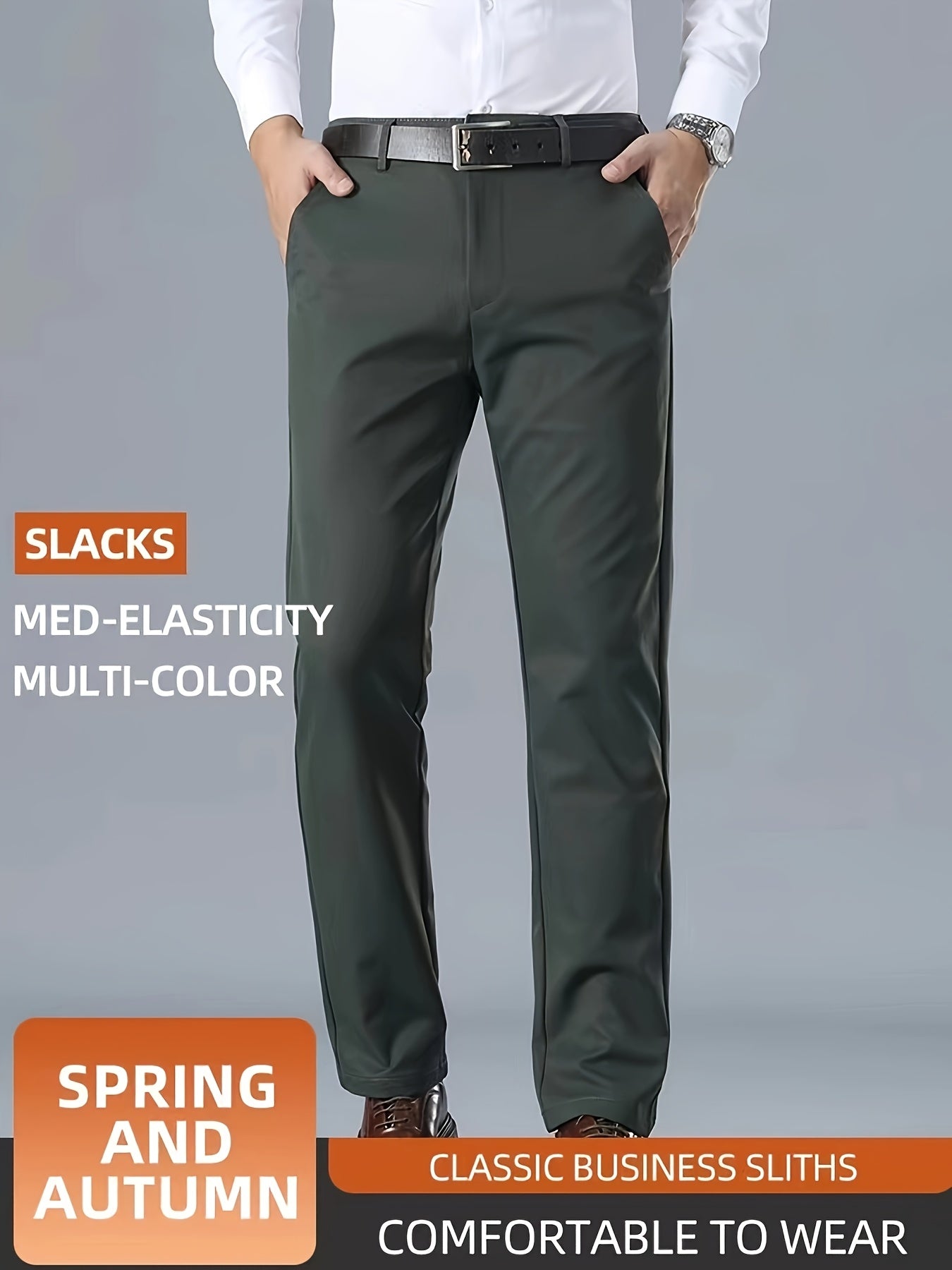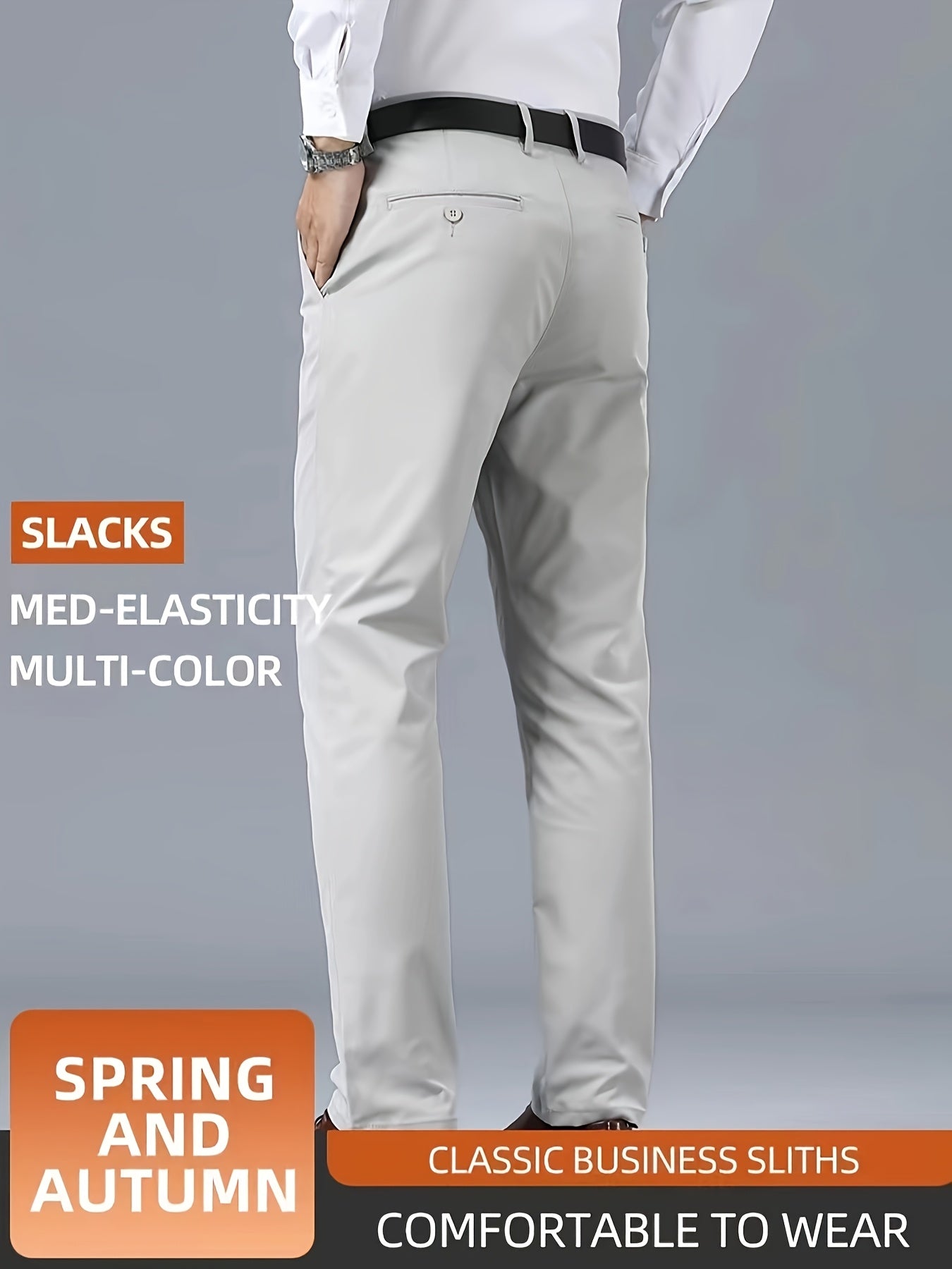 Men's Casual Solid Color Dress Pants - Polyester Blend, Woven, Regular Fit, All-Season Comfort, Adult Suit Pants