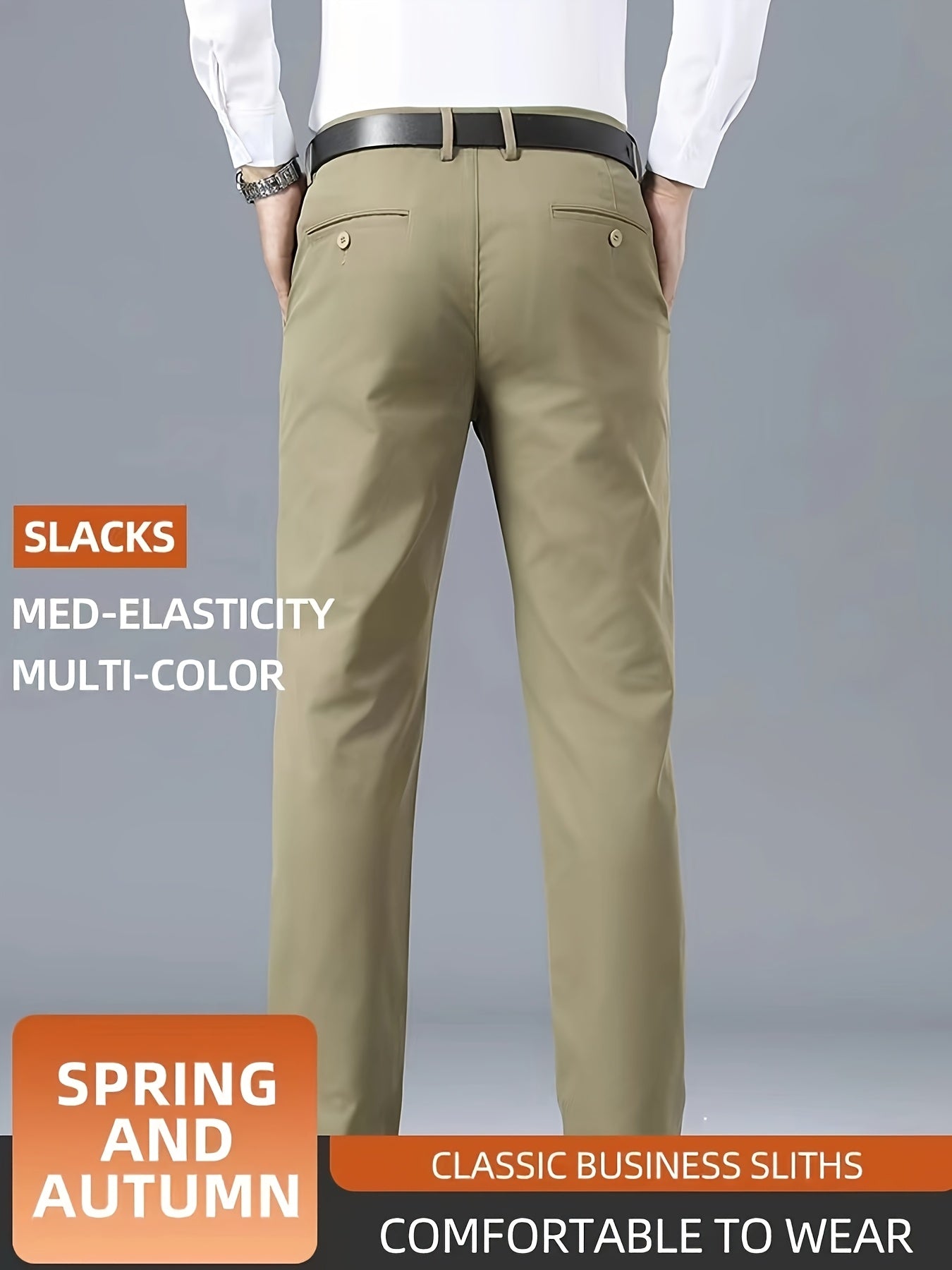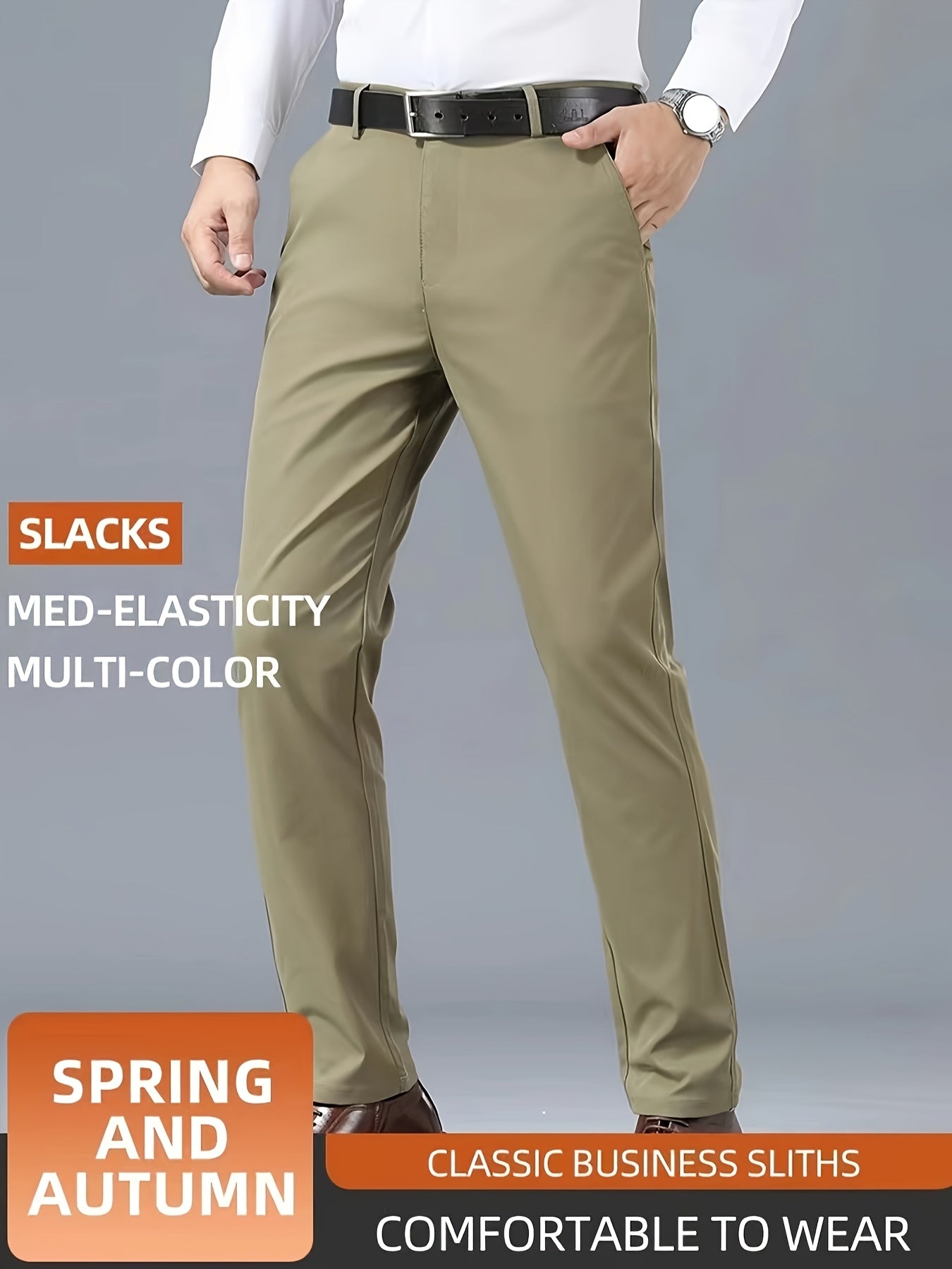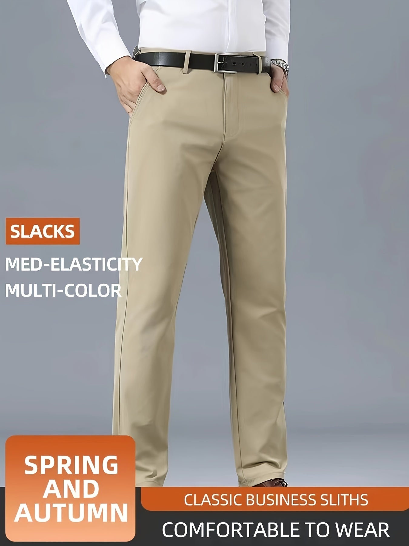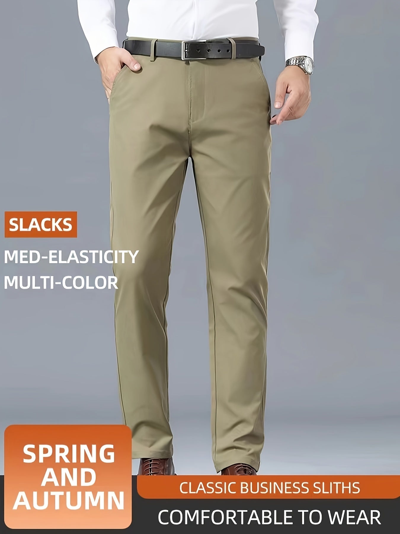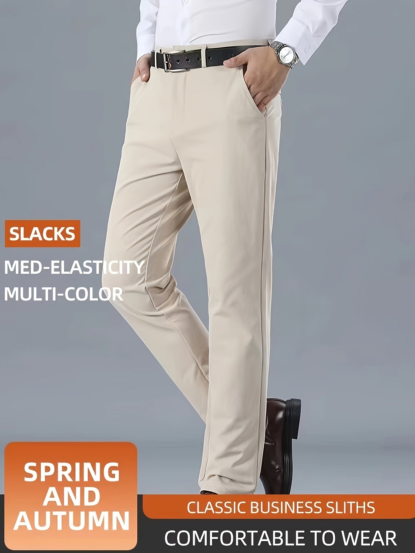 Men's Casual Solid Color Dress Pants - Polyester Blend, Woven, Regular Fit, All-Season Comfort, Adult Suit Pants