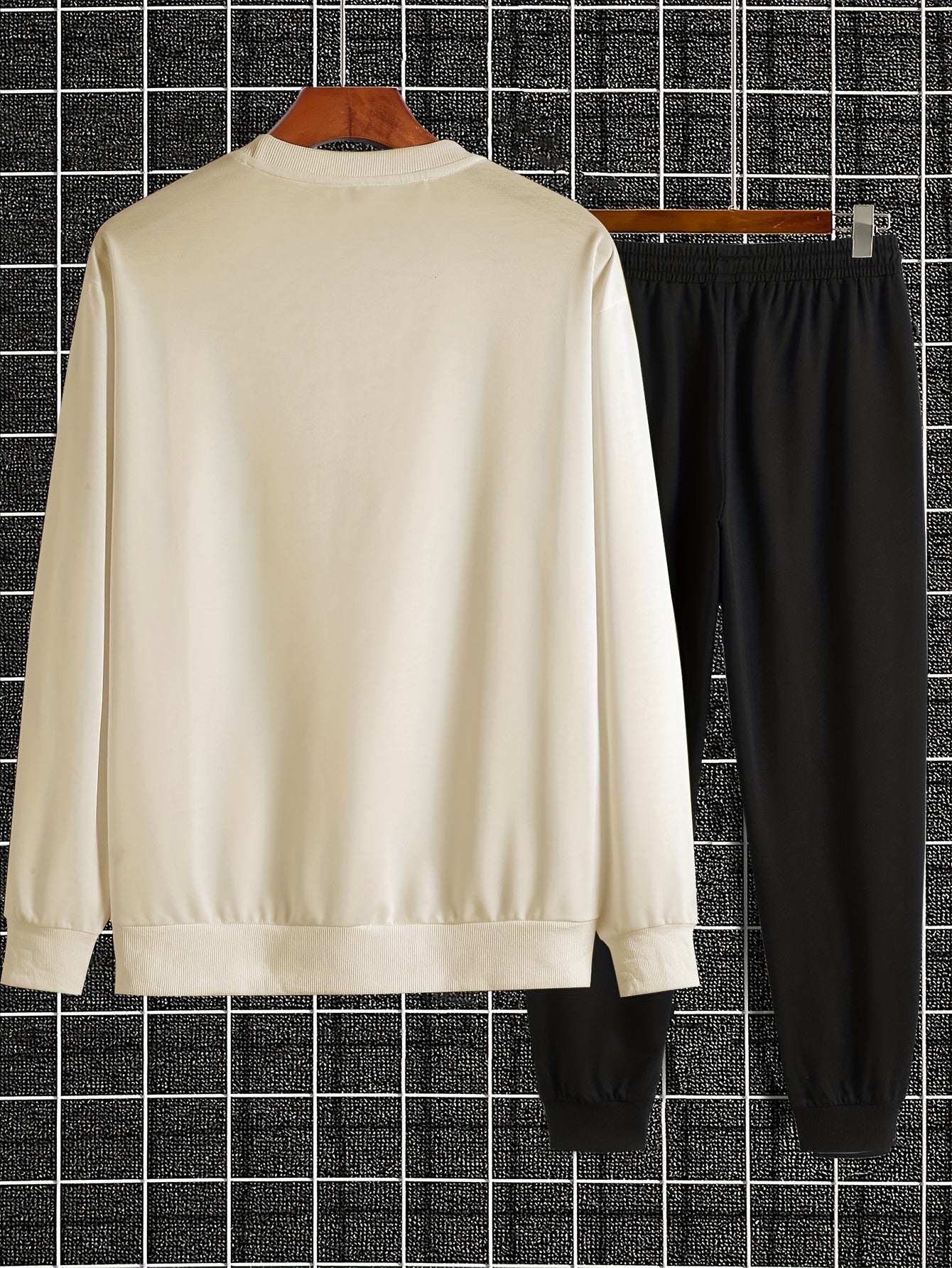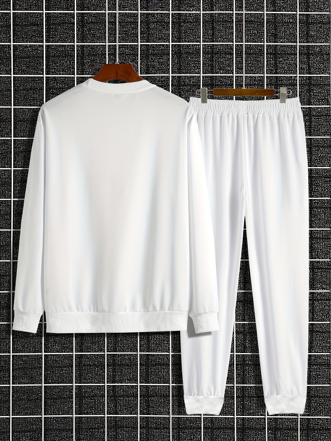 Men's Casual Sports Sweatshirt Set, Loose Fit Pullover Hoodie with Print, Polyester Blend, Round Neck, Stretch Knit, Autumn/Winter Collection