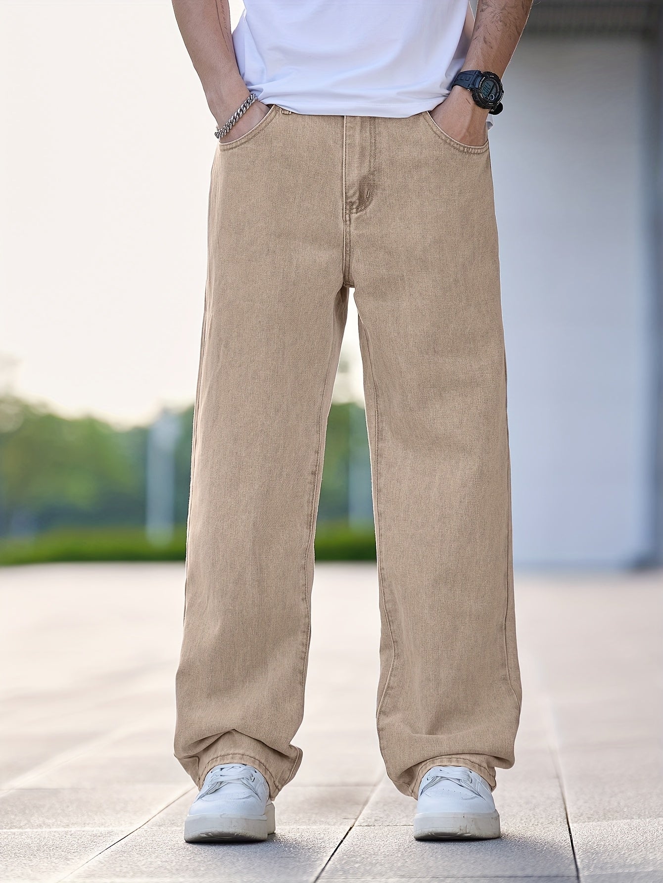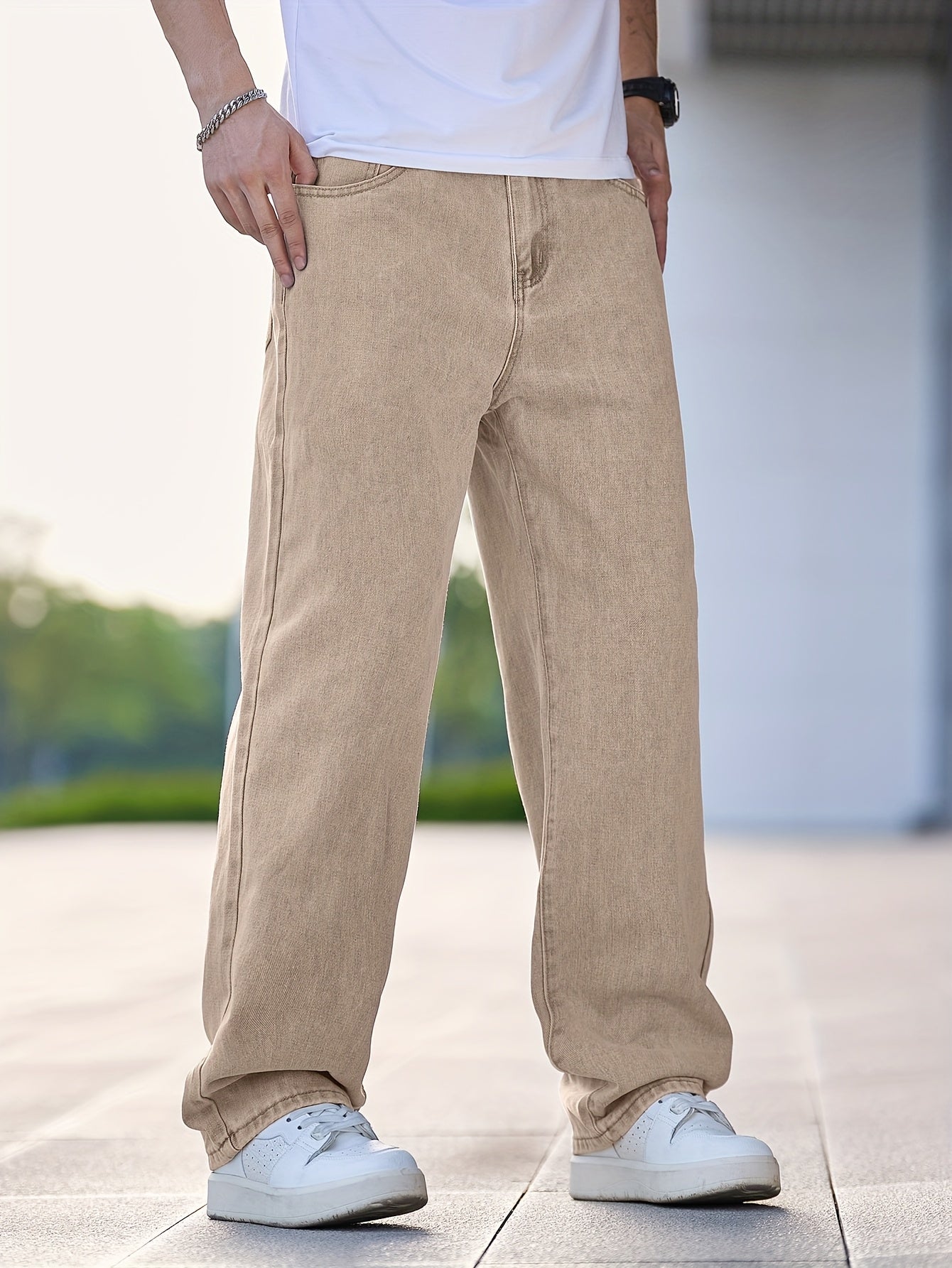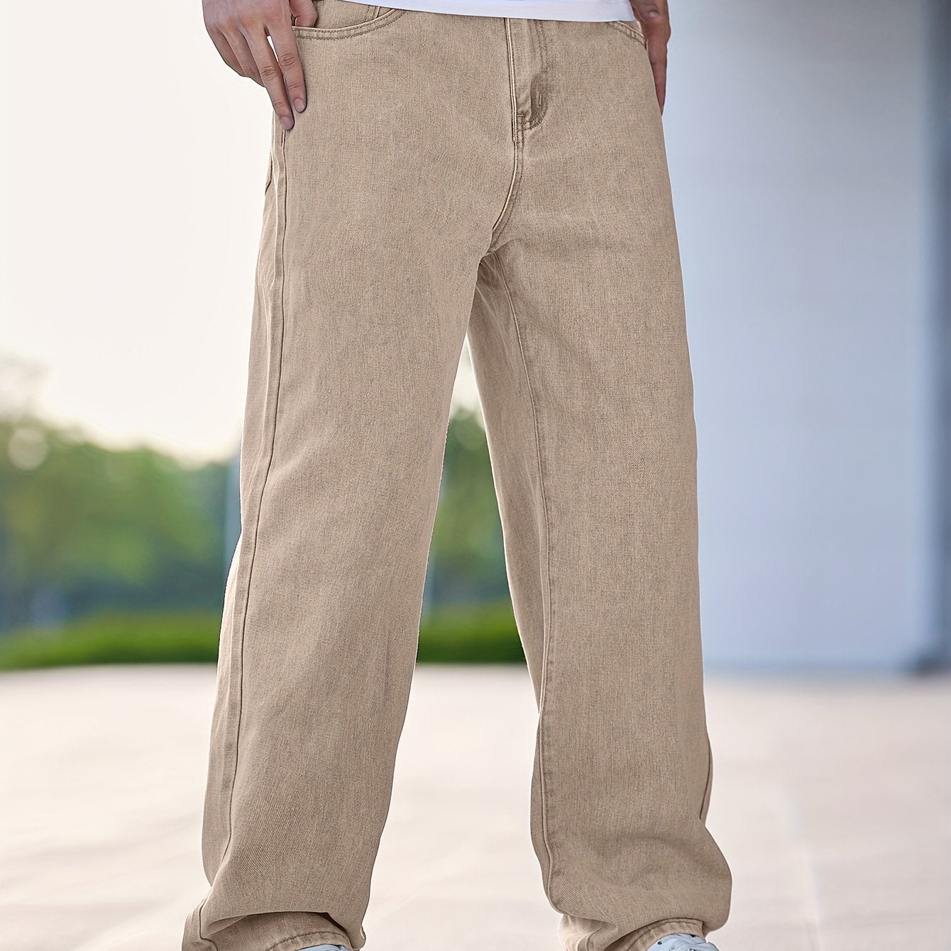 Men'S Casual Straight Leg Jeans, Loose Fit Denim Pants, 87% Cotton 7% Polyester 6% Viscose, All-Season Solid Color Washed Fabric, 290gsm Heavyweight - Gengyuanxuan #TB9005