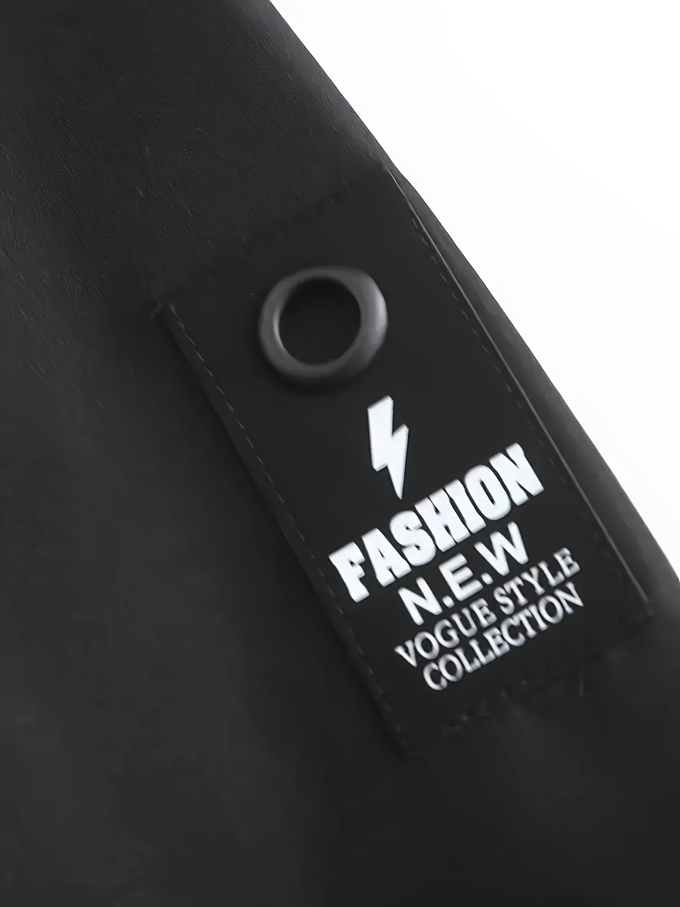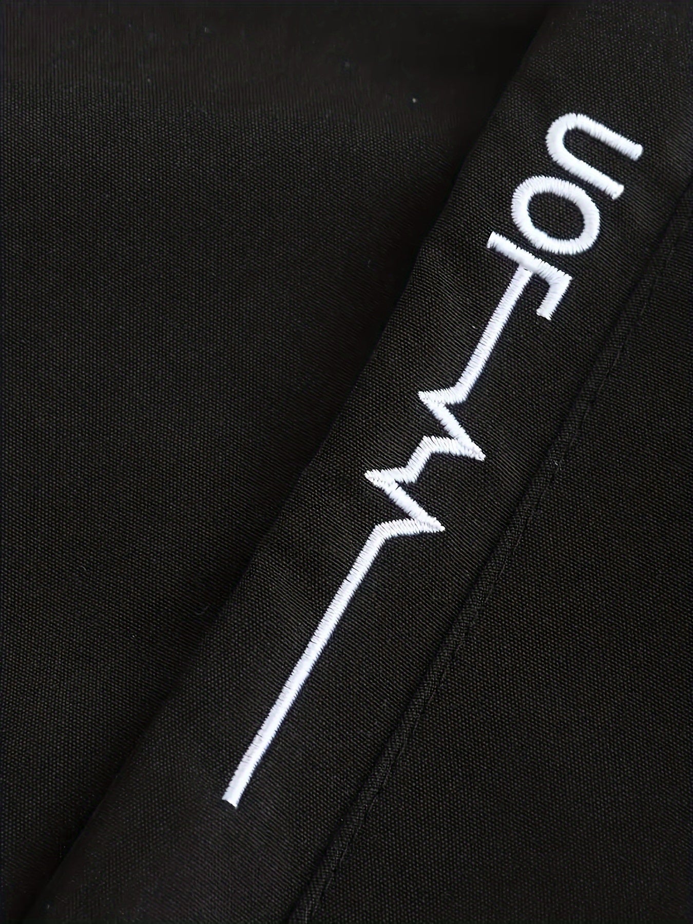 Men's Casual Windproof Hooded Jacket with Embroidery Detail, Long Sleeve Zip-Up Polyester Coat for Spring and Autumn