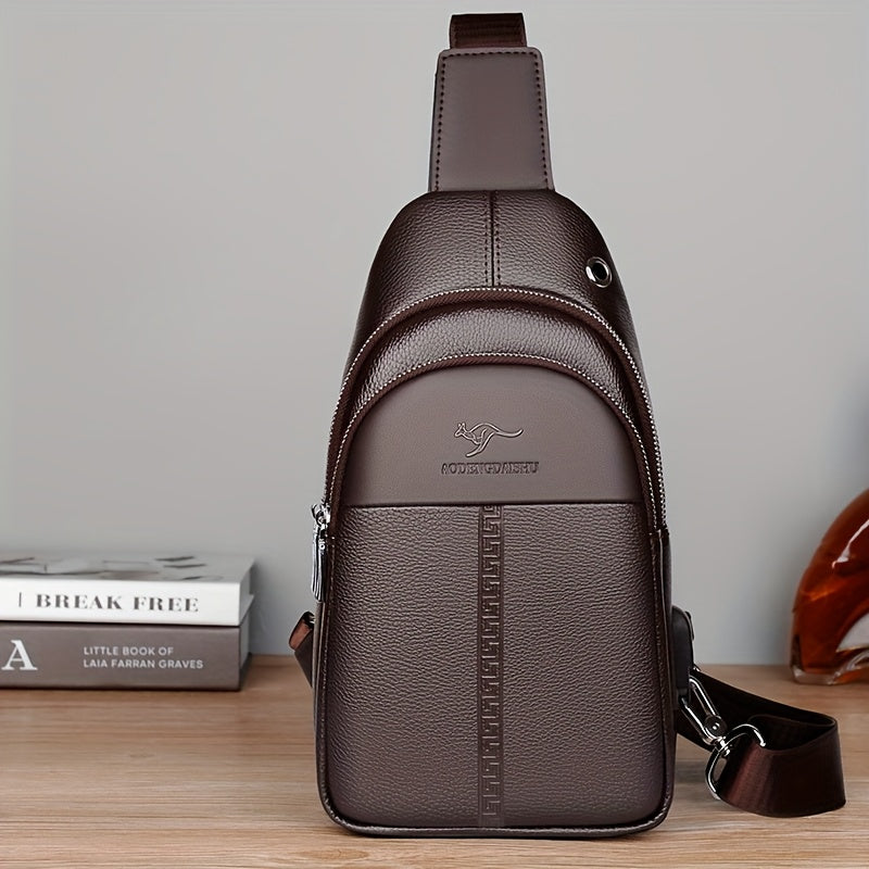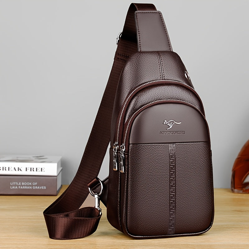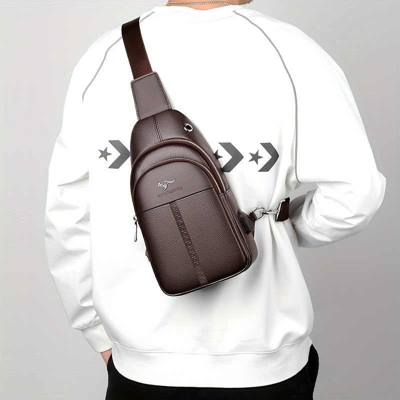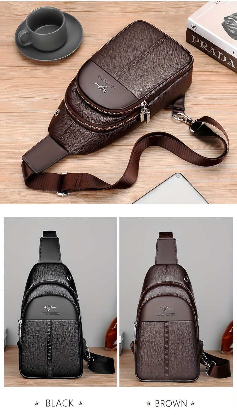 Men's Chest Bag Crossbody Shoulder Bag Small Fanny Pack Fashion Casual PU Leather Men's Satchel