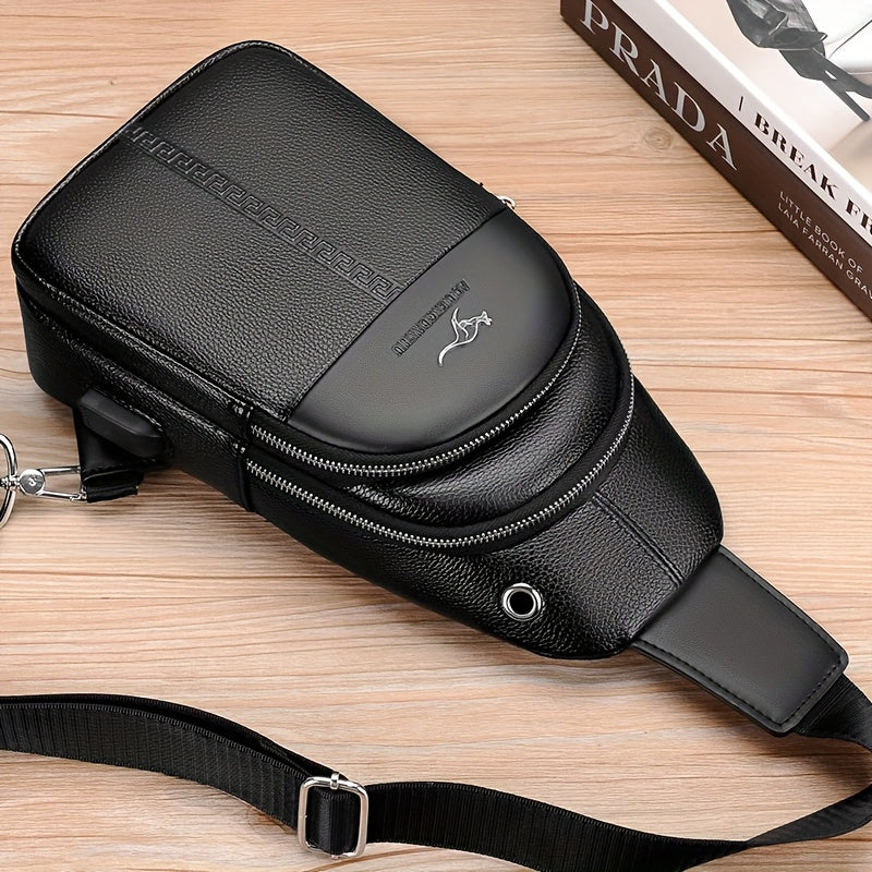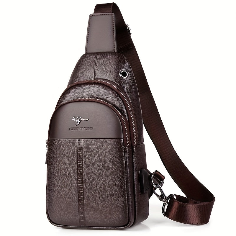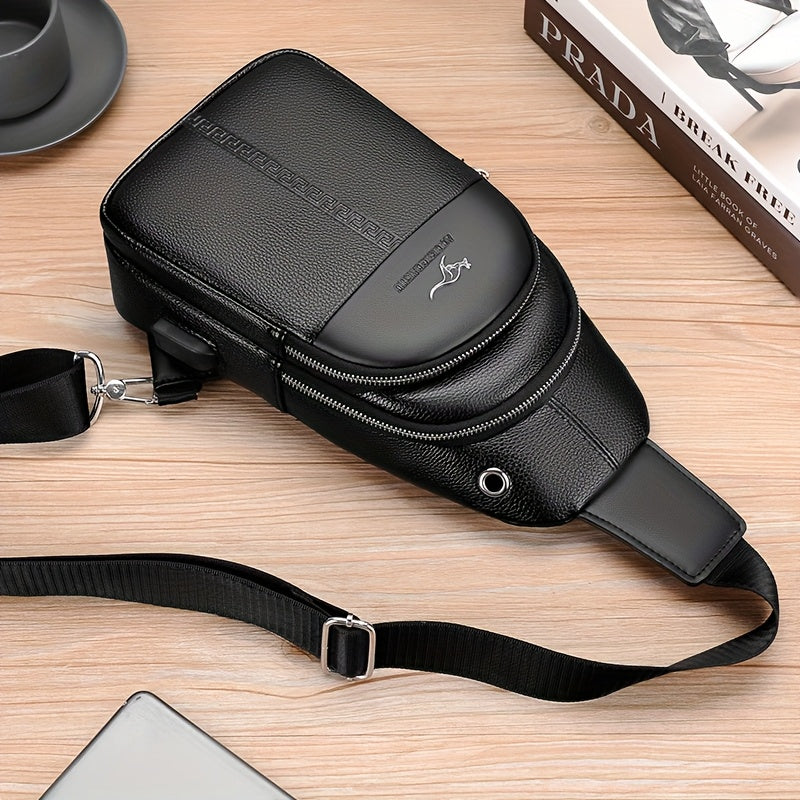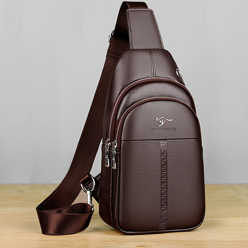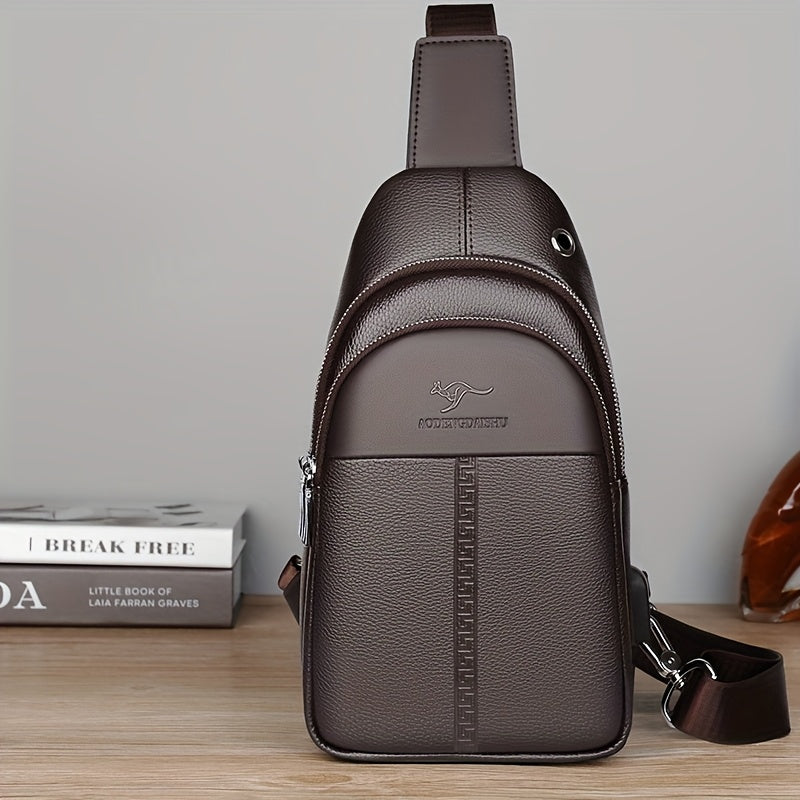 Men's Chest Bag Crossbody Shoulder Bag Small Fanny Pack Fashion Casual PU Leather Men's Satchel