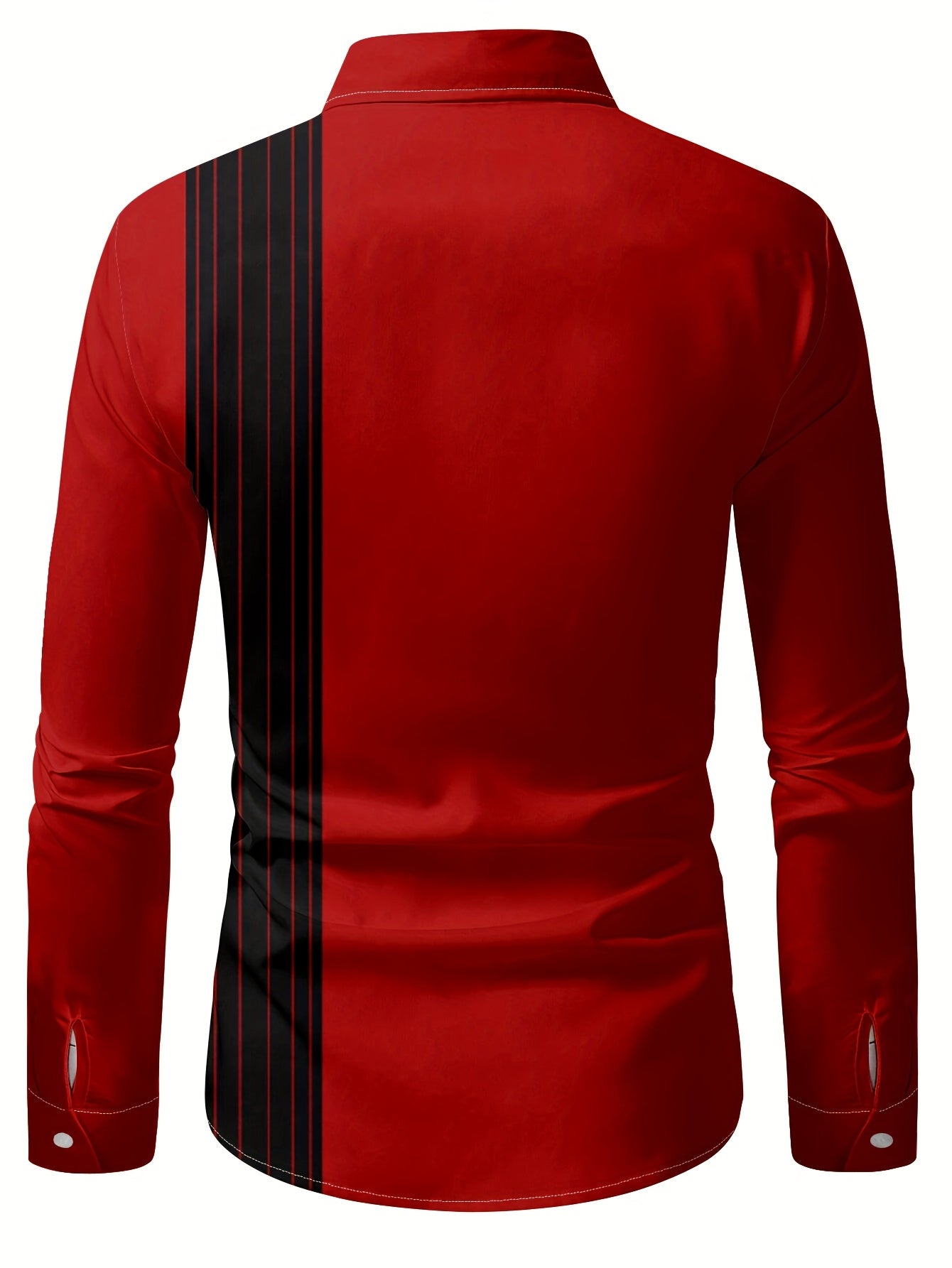 Men'S Christmas Long Sleeve Shirt - Red & Holiday Party Shirt with Santa Claus, Reindeer & Snowflakes, Button-Up Collar, Non-Stretch Fabric for Christmas, Halloween, New Year