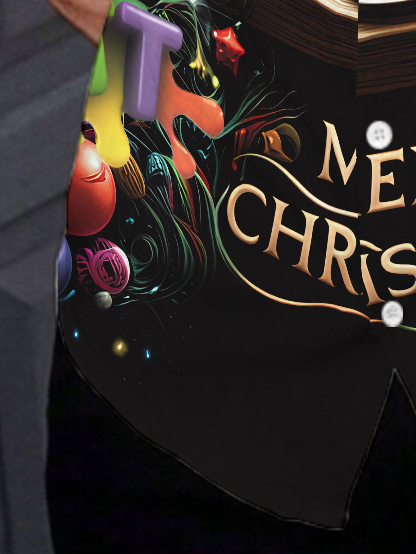 Men's Christmas Santa Claus & Reindeer Print Collar Long Sleeve Shirt - Full-Zipper-Free Button-Front Closure, Non-Stretch Holiday Party Costume or Casual Wear, Machine Washable Festive Attire with All-Over Christmas Motifs (