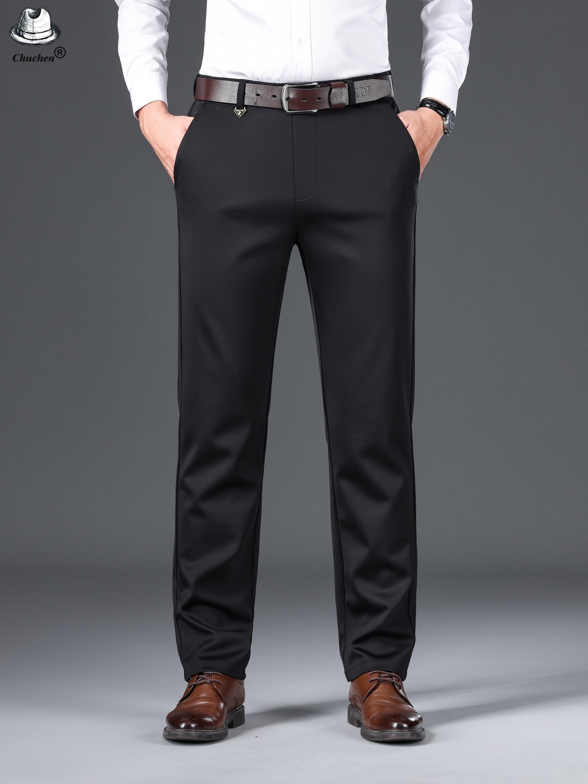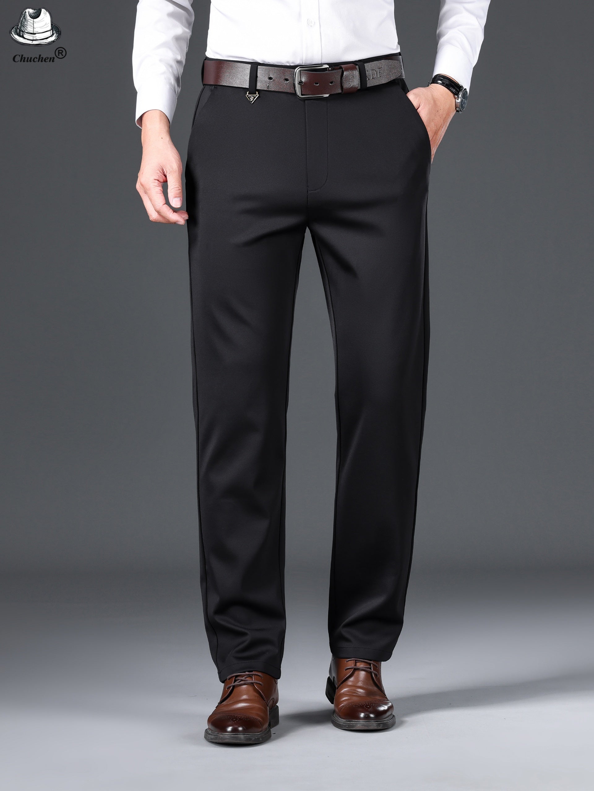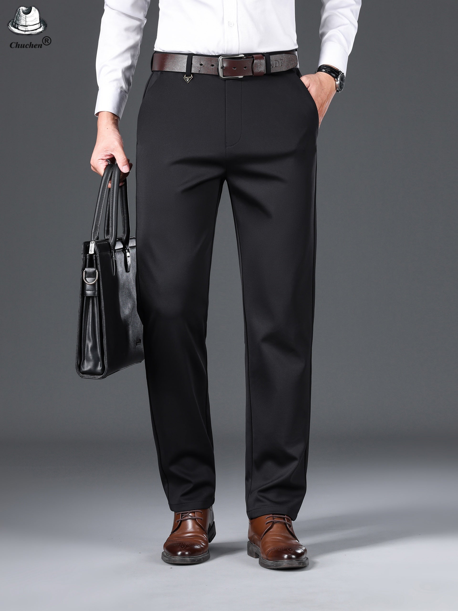 Men's Classic Black Business Dress Pants - Stretch Nylon Blend, Machine Washable, Regular Fit for Office & Formal Wear, Professional Clothing | Regular Fit Suit | Nontransparent Material, Pant Suits