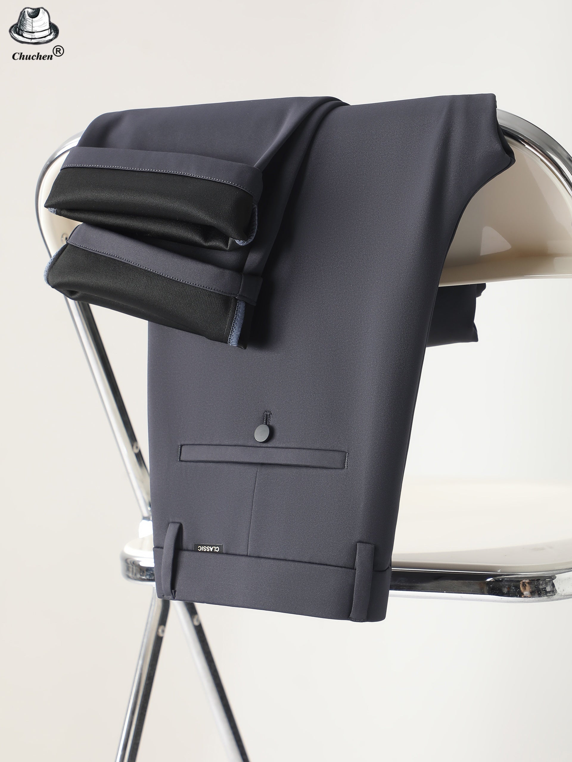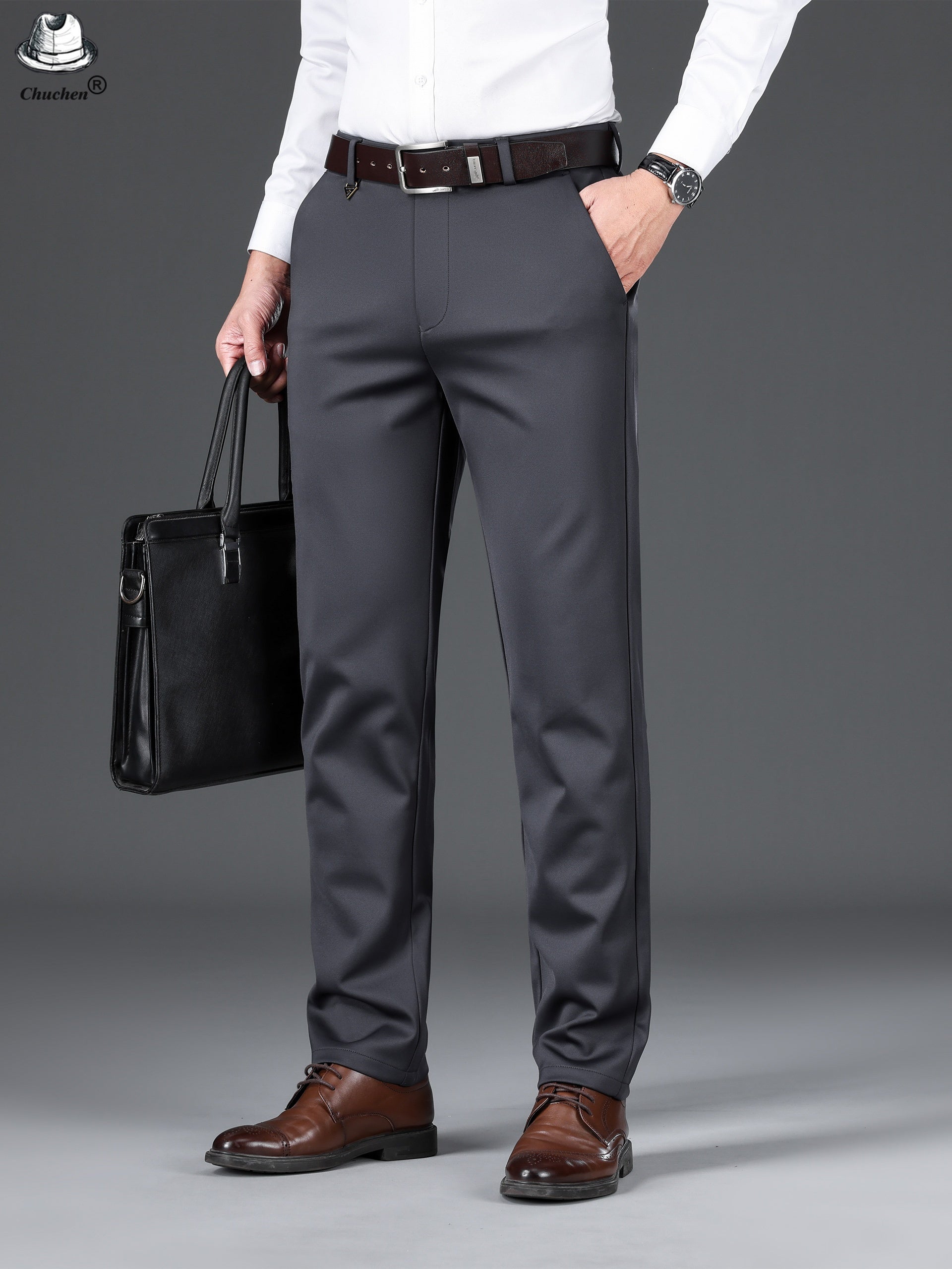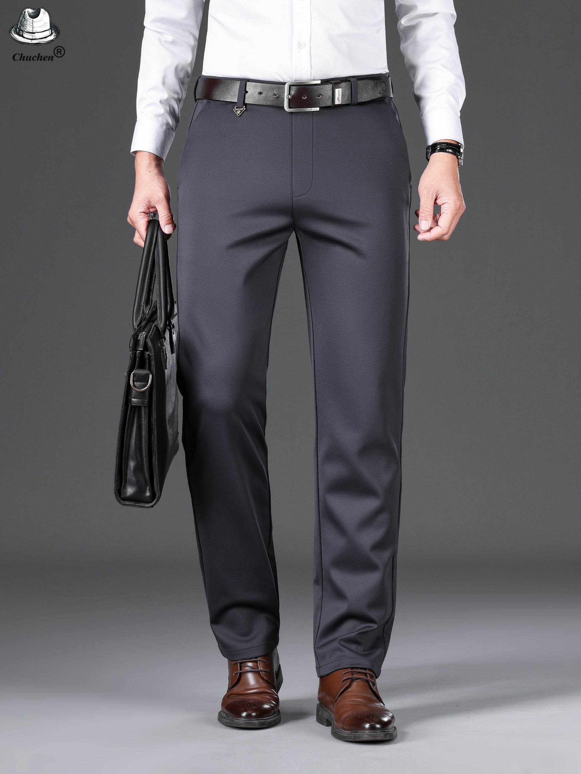 Men's Classic Black Business Dress Pants - Stretch Nylon Blend, Machine Washable, Regular Fit for Office & Formal Wear, Professional Clothing | Regular Fit Suit | Nontransparent Material, Pant Suits