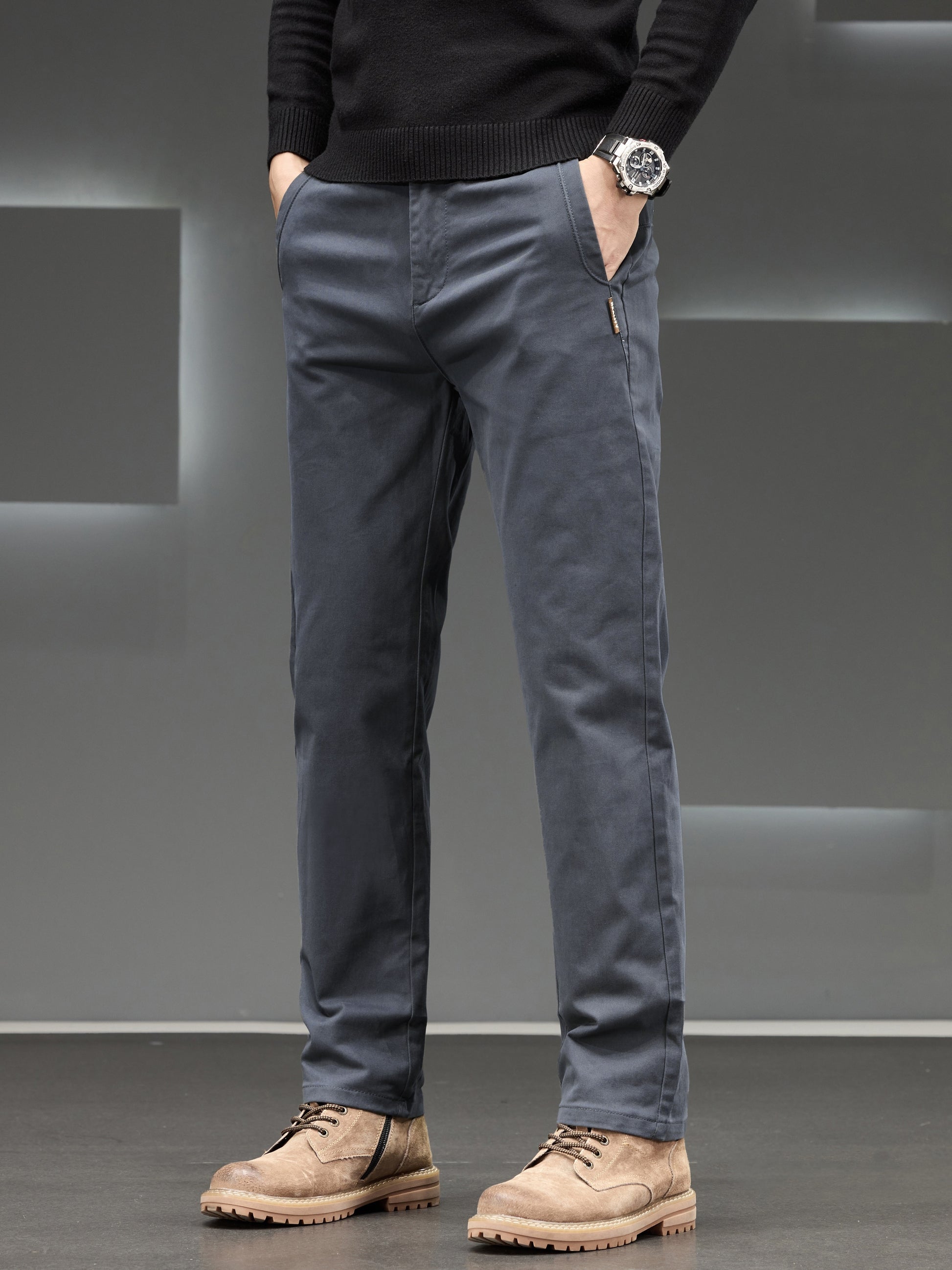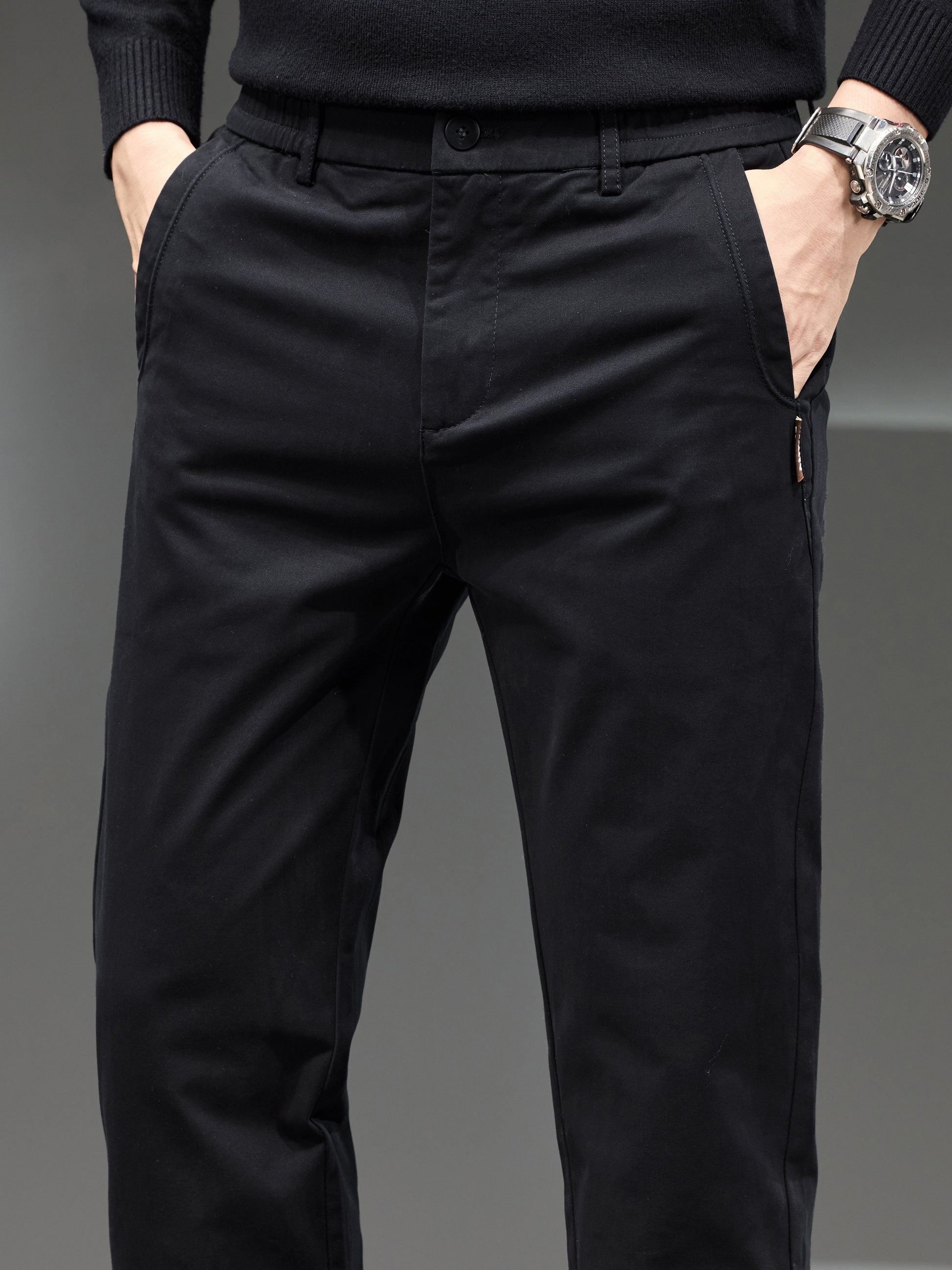 Men's Classic Business Trousers - Lightweight Polyester Straight-Leg Pants For Spring/Fall - Button Details - Non-Elastic Fabric - Solid Color - Regular Fit
