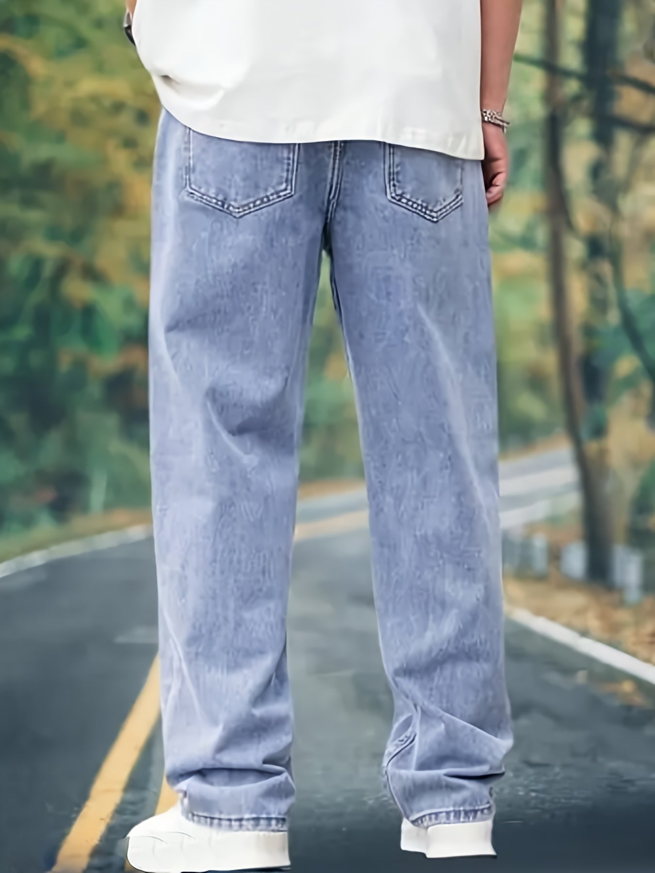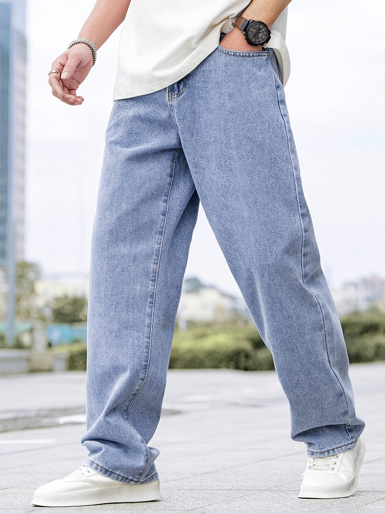 Men'S Classic Casual Denim Jeans, 80% Cotton 20% Polyester, All-Season Regular Fit, Non-Stretch Solid Color, 380g/m² Woven Fabric, Washed Detail, Adult Regular Length Pants