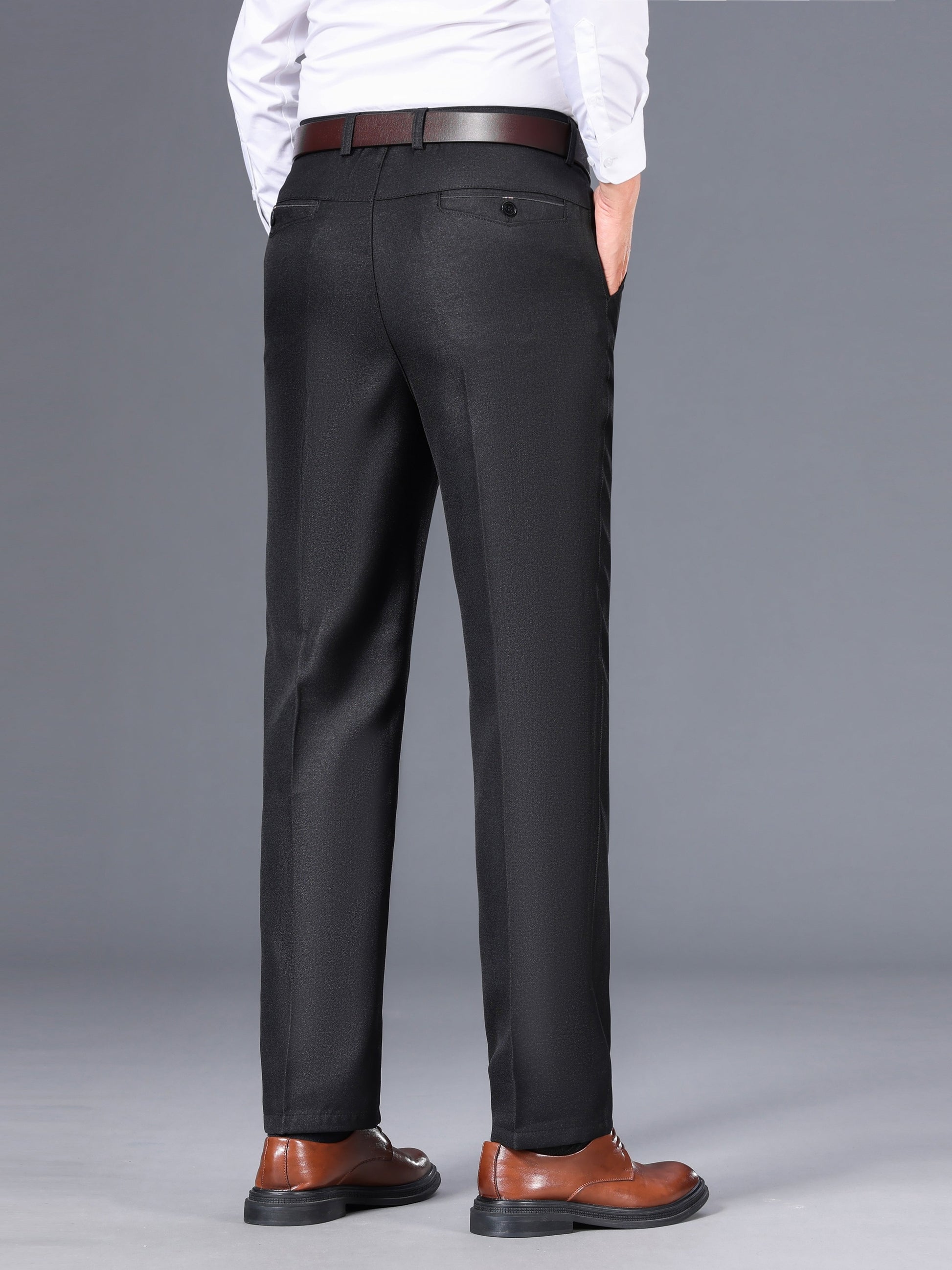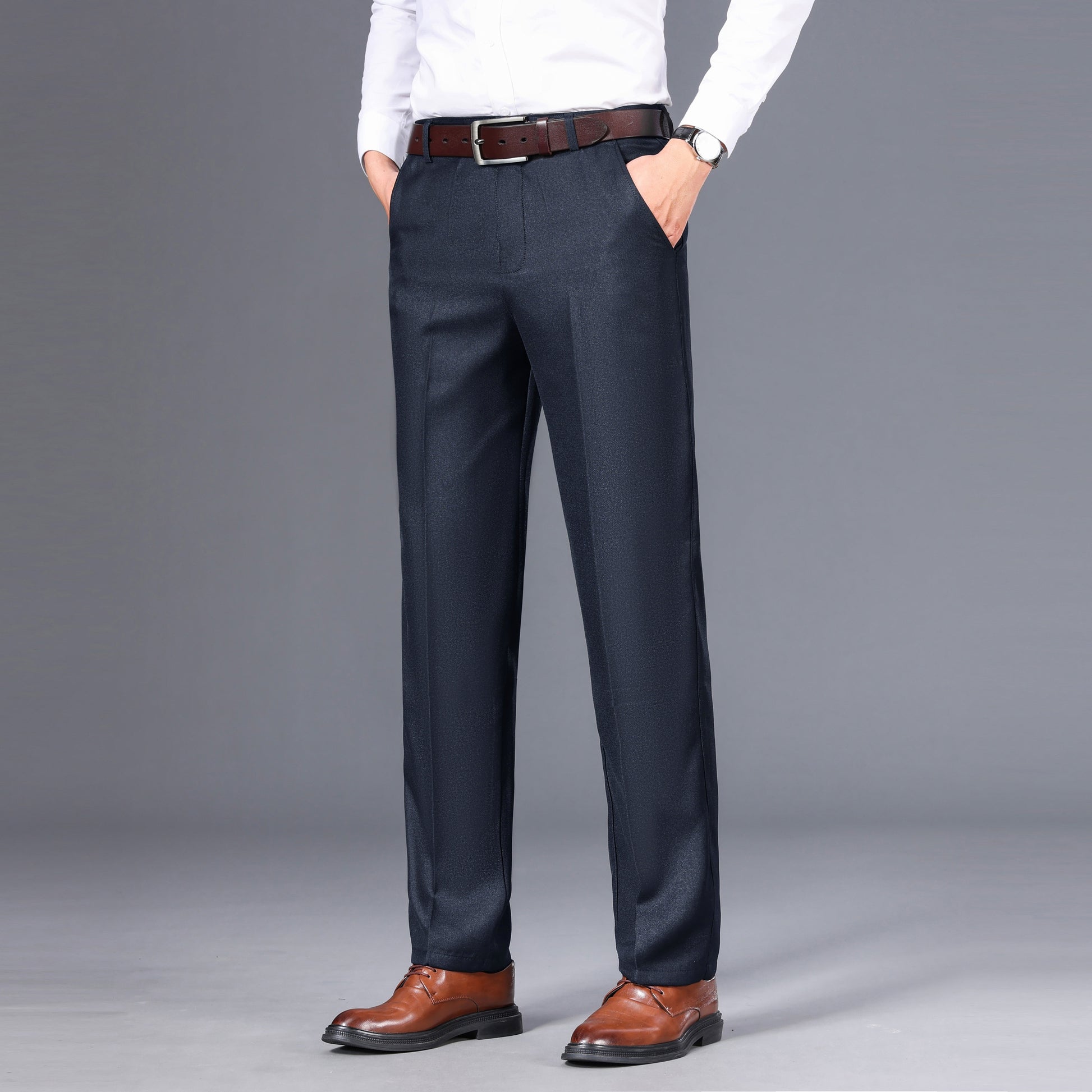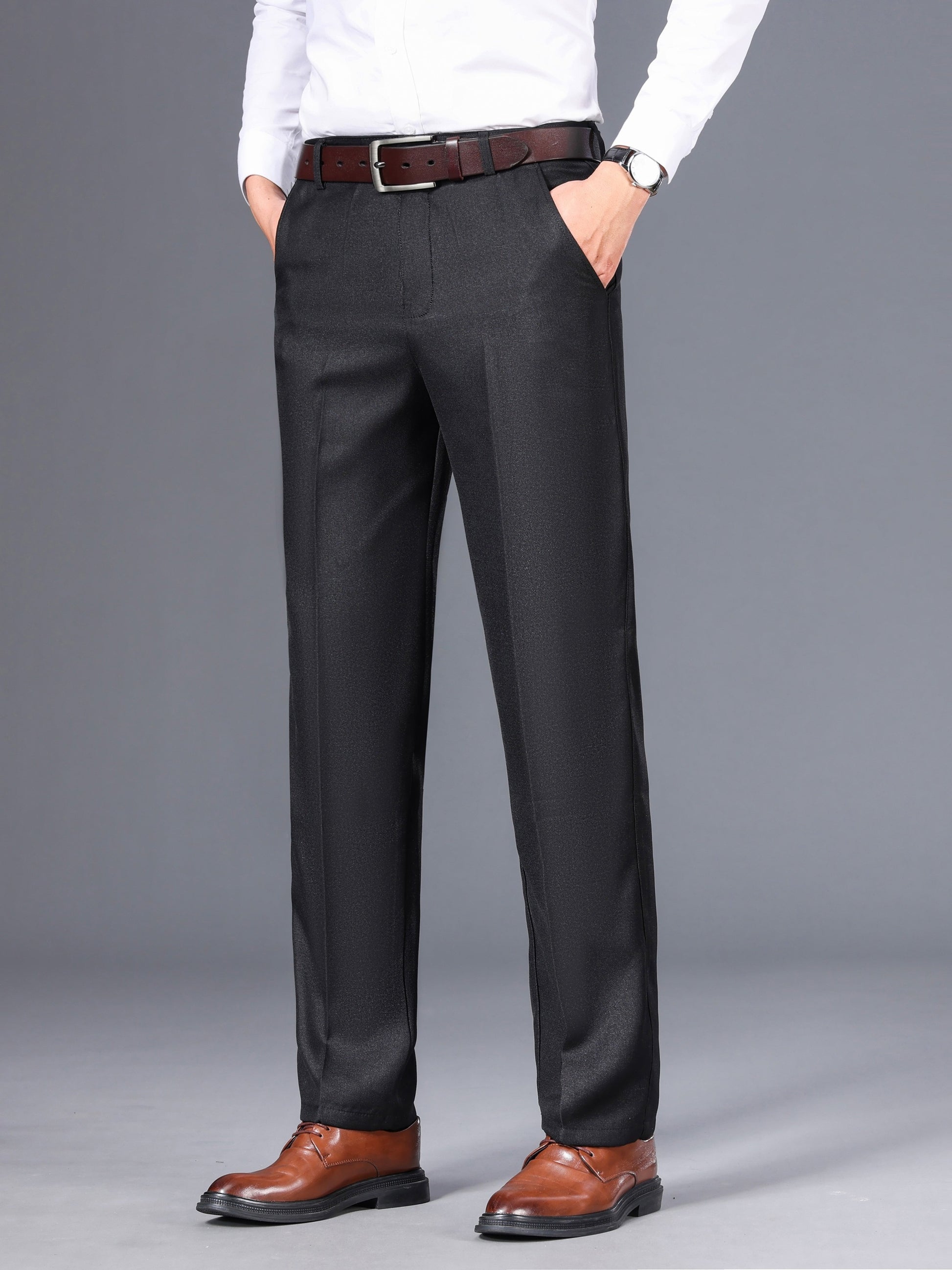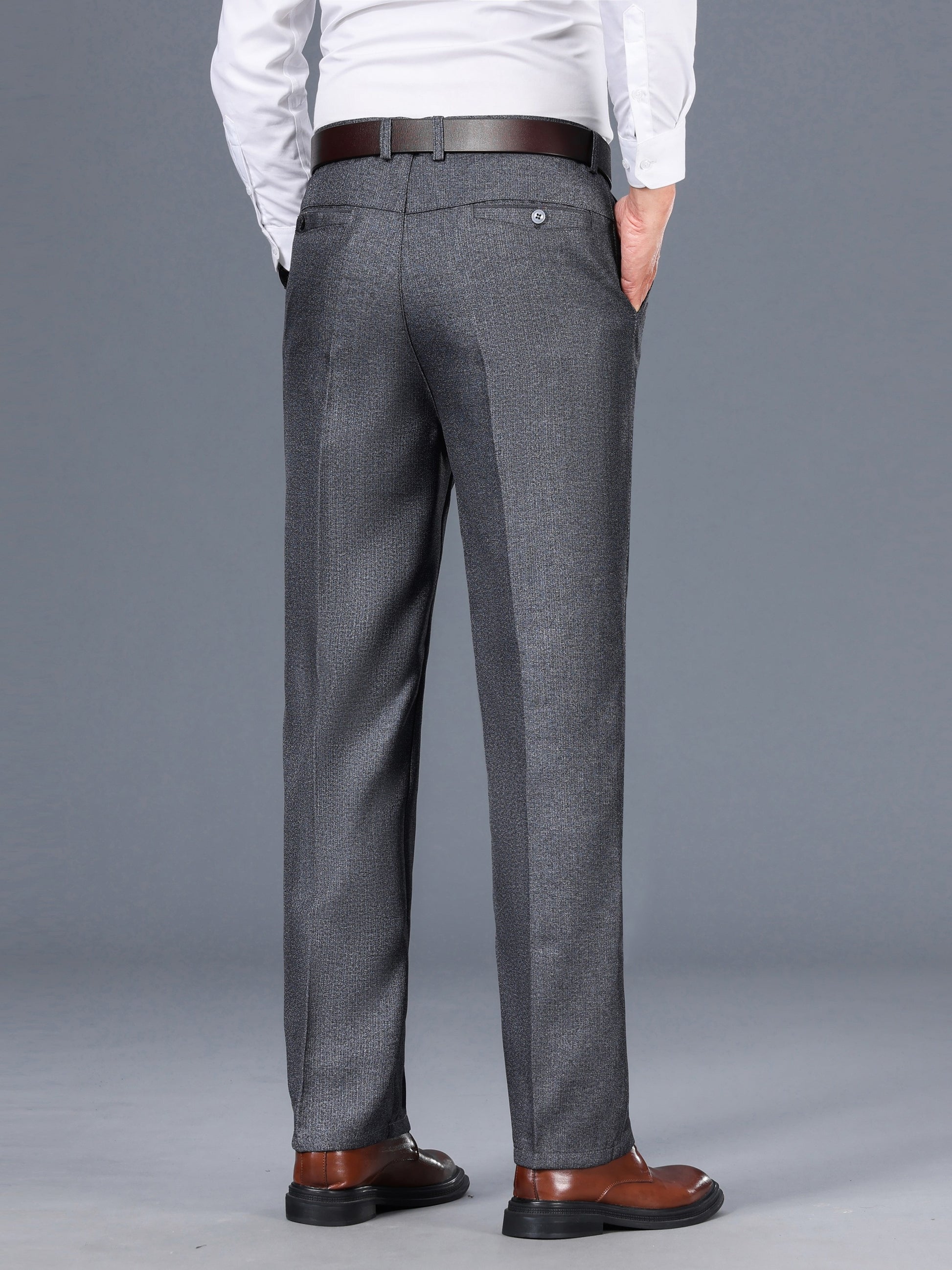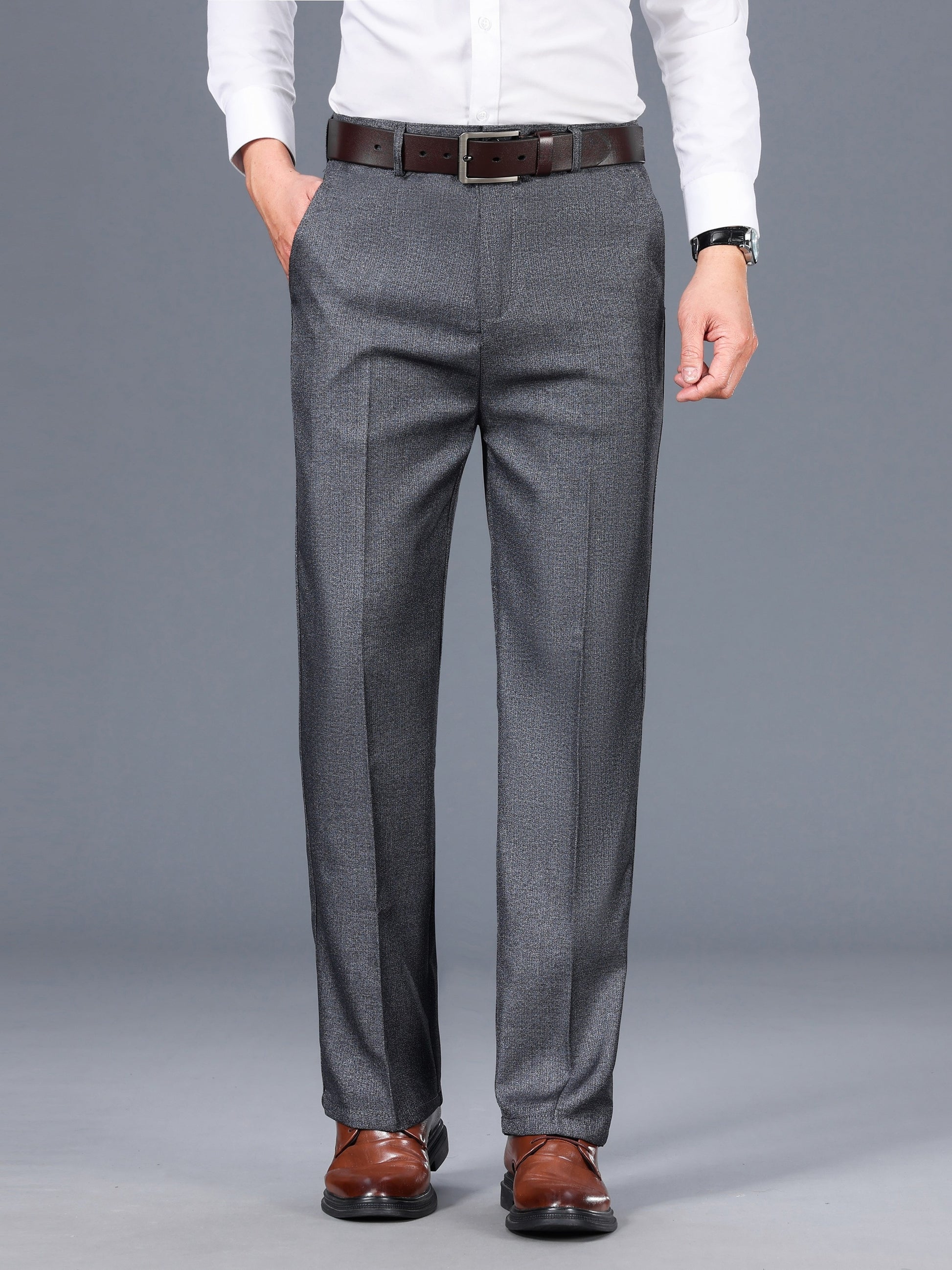 Men's Classic Gray Dress Pants - Medium Thick, Straight Fit with Slant Pockets & Zipper Closure, Polyester, Non-Stretch Fabric for Business Casual & Formal Wear, Ideal for Spring/Autumn