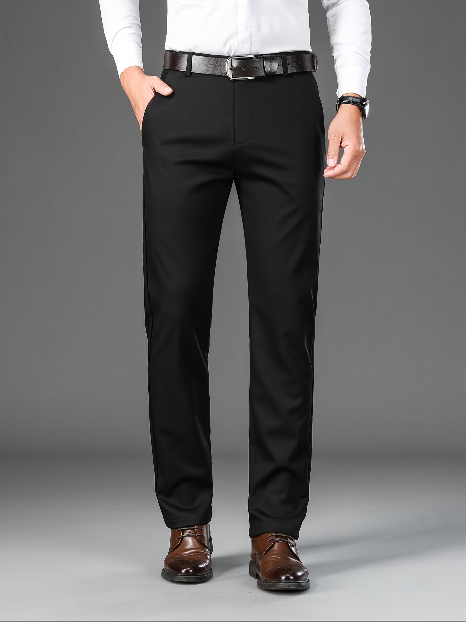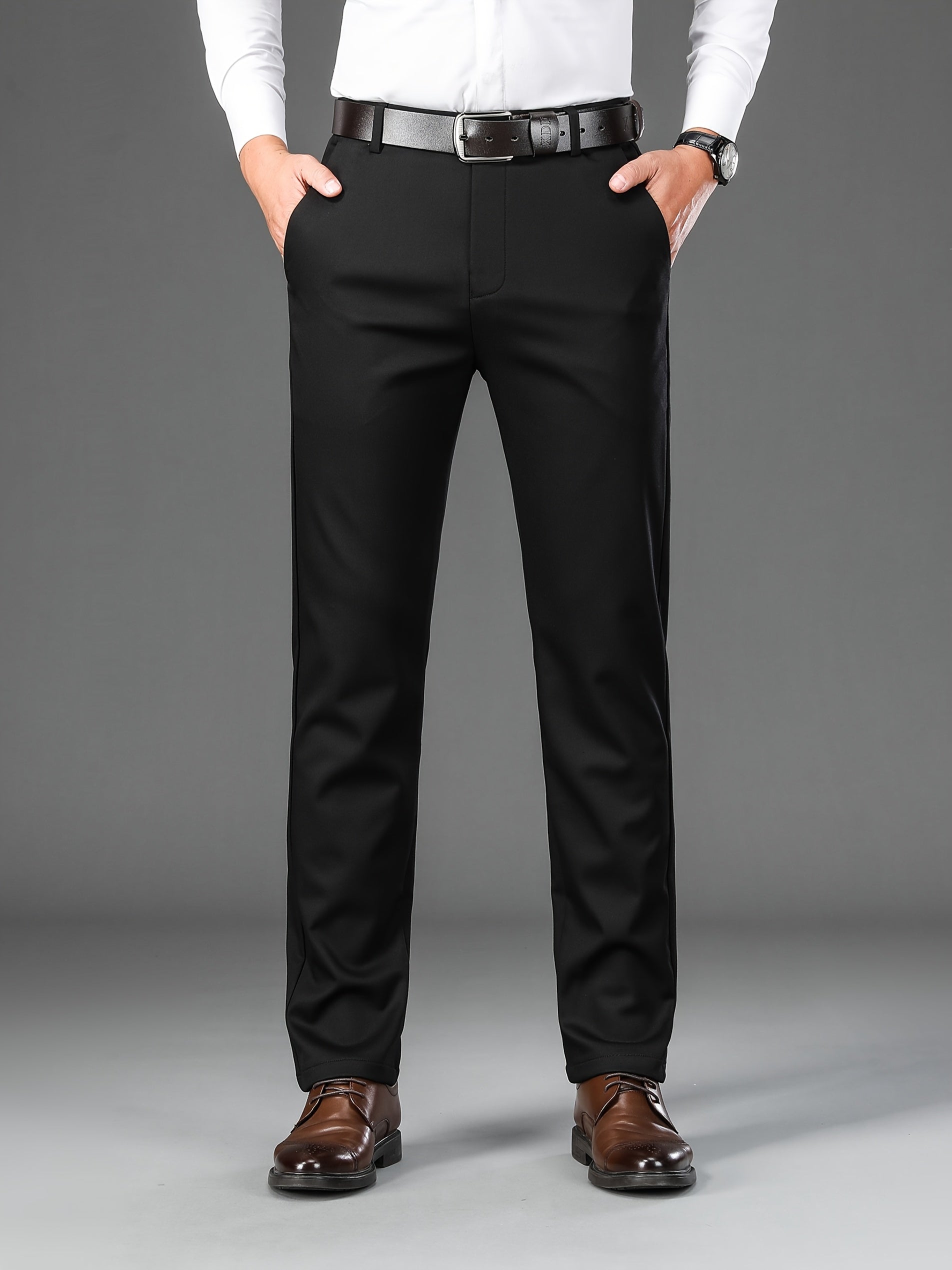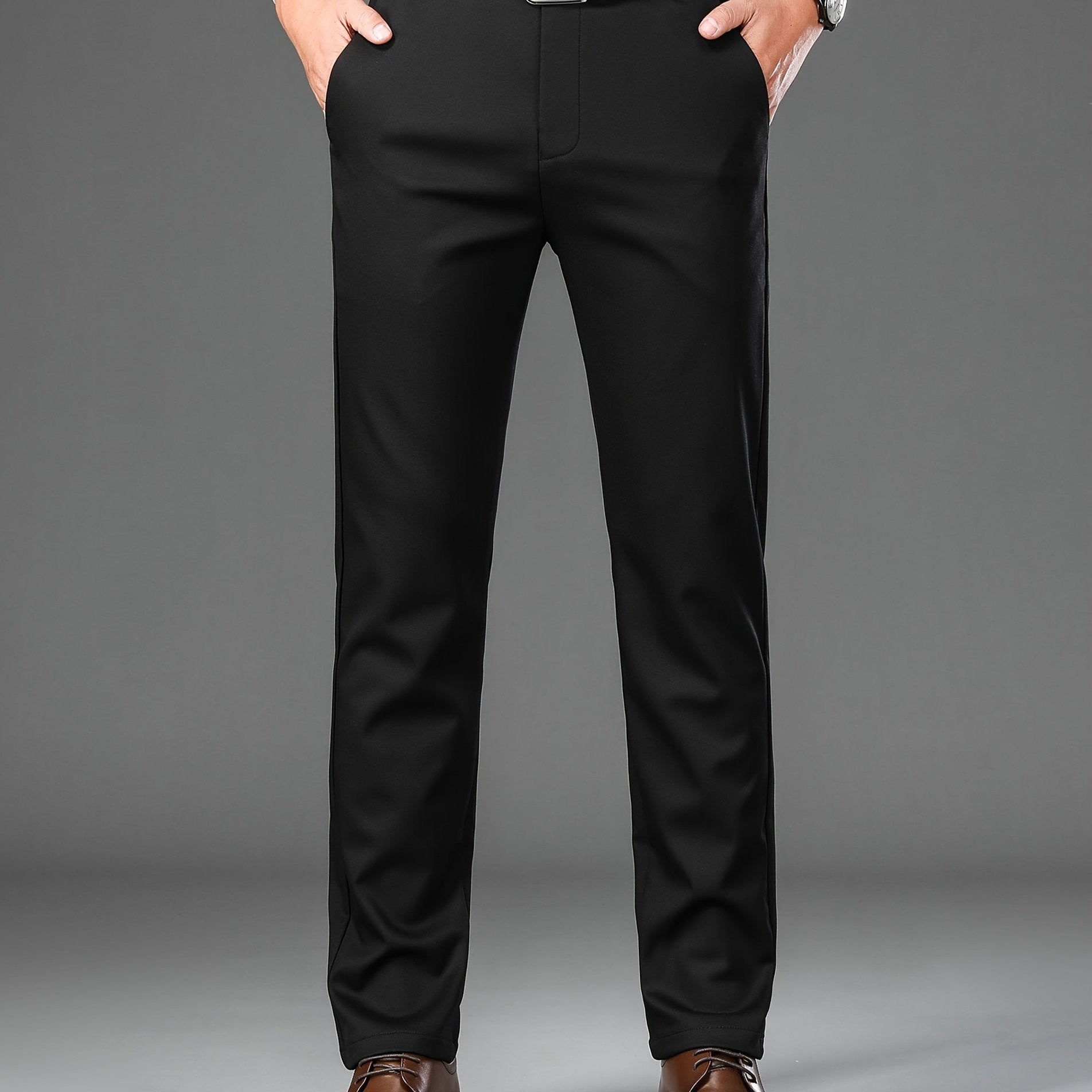 Men's Classic Solid Color Dress Pants - Comfort Fit, All-Season Polyester Blend, Machine Washable - Perfect for Business & Casual Wear
