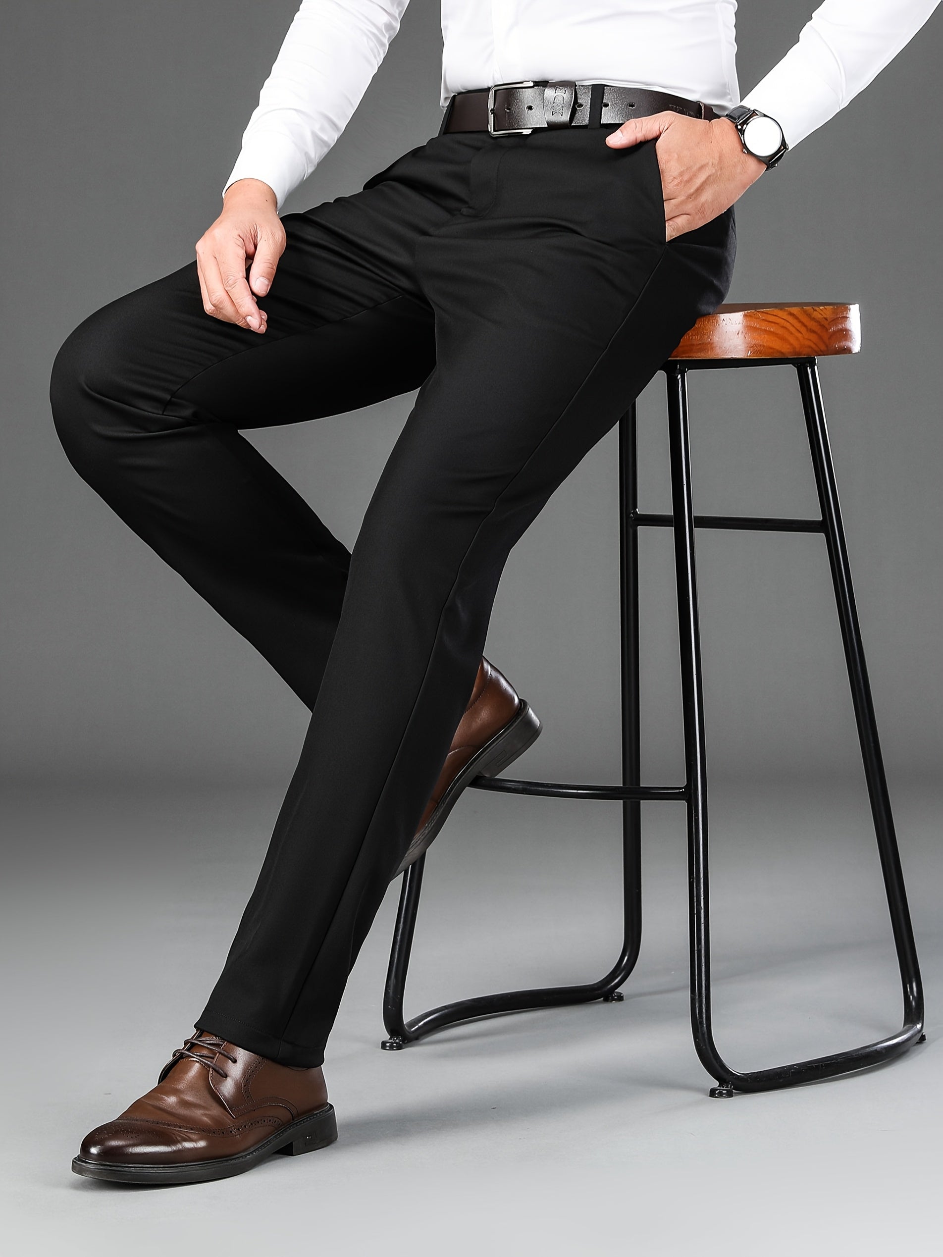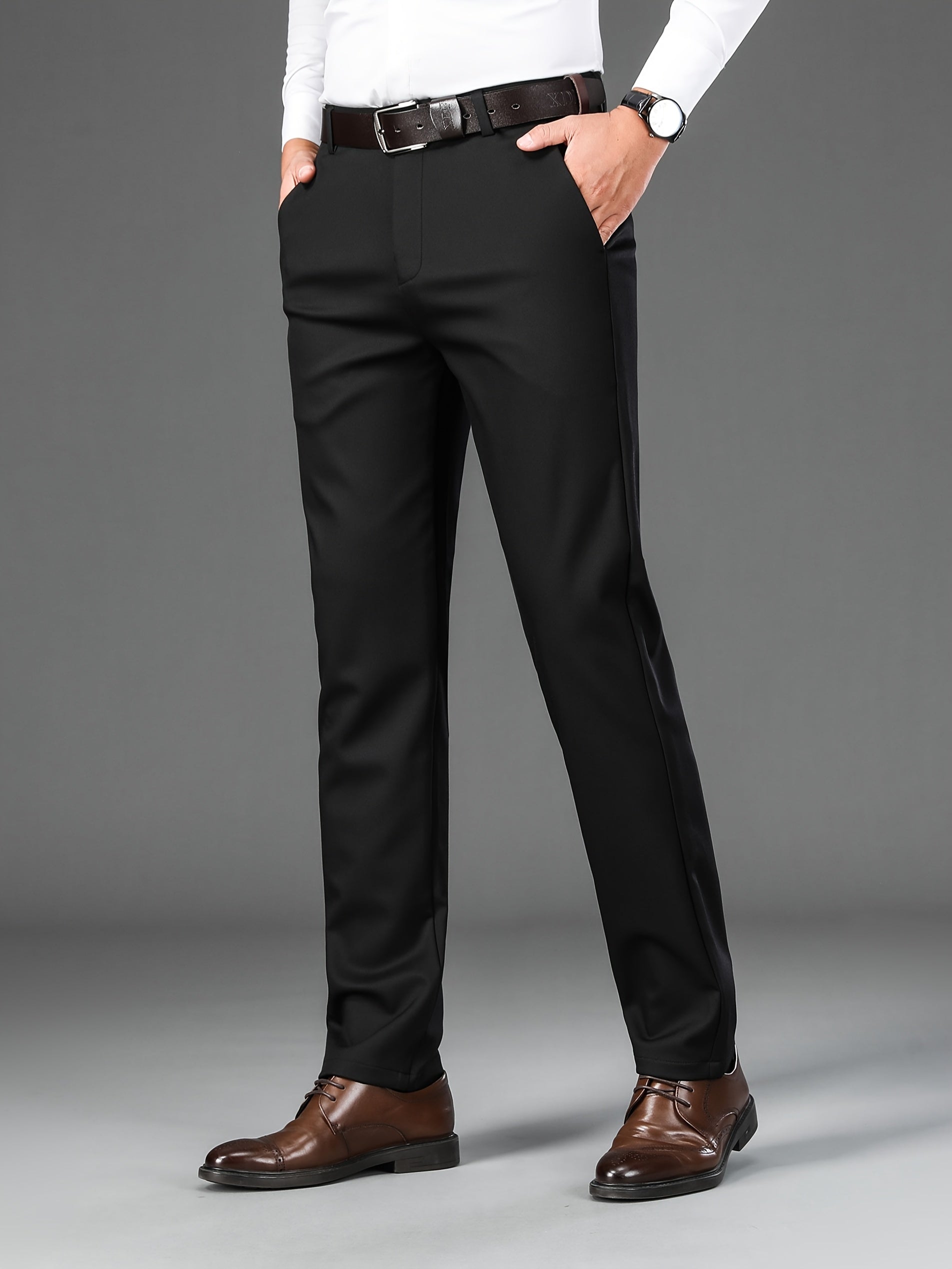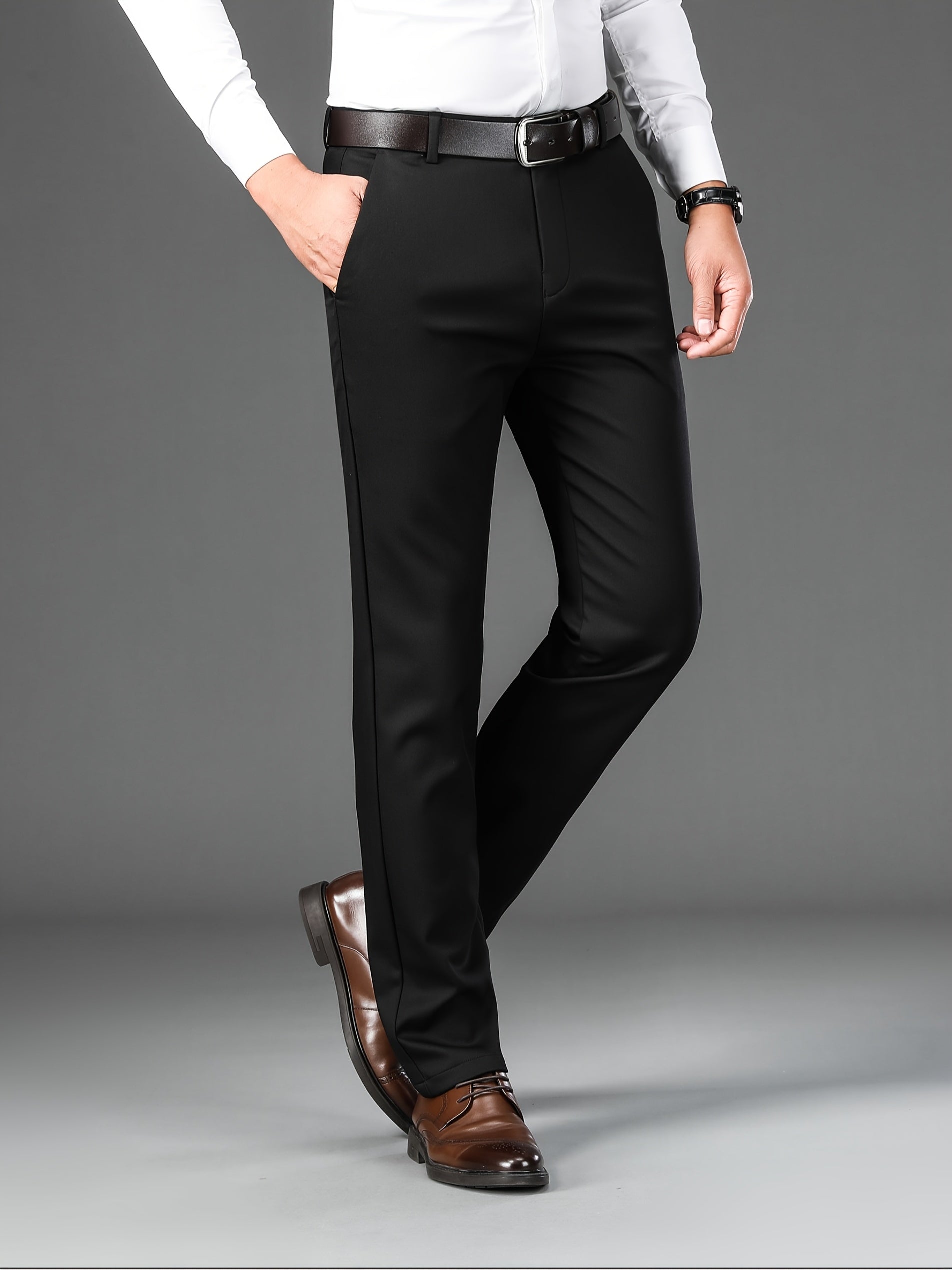Men's Classic Solid Color Dress Pants - Comfort Fit, All-Season Polyester Blend, Machine Washable - Perfect for Business & Casual Wear