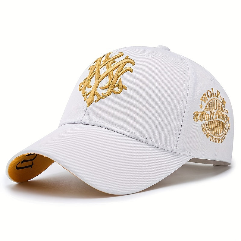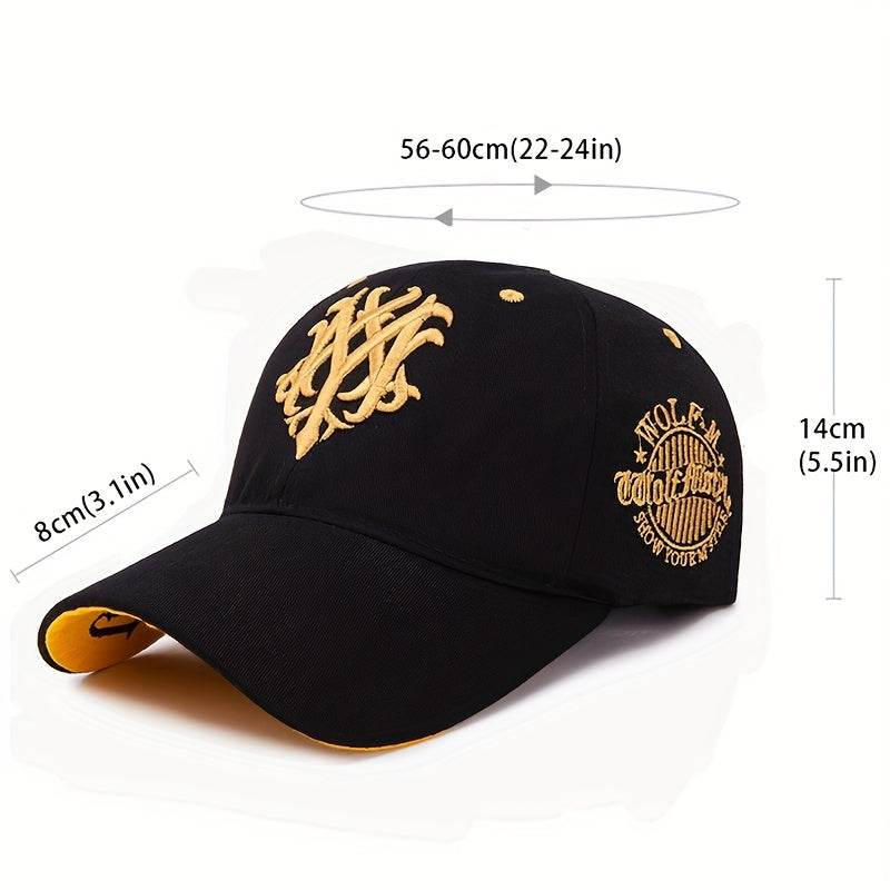 Men's Embroidered Letter Baseball Cap - Adjustable Snapback, Sun Protection, Rayon, Black with Golden Embroidery, Casual Sport Hat for All Seasons