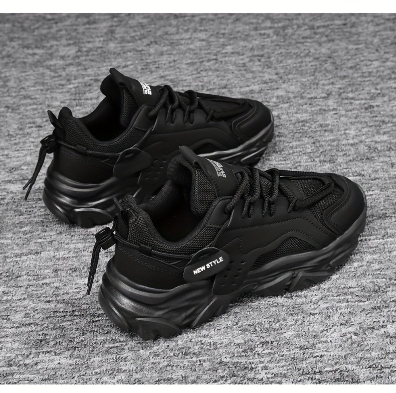 Men's Fashion Chunky Sneakers - Sports & Casual Streetwear Shoes, Solid Color, Non-Slip Lace-Up, Thick Sole, Low Top Fabric Sneakers for All Seasons, Running & Hiking, Universal Fit - Round Toe