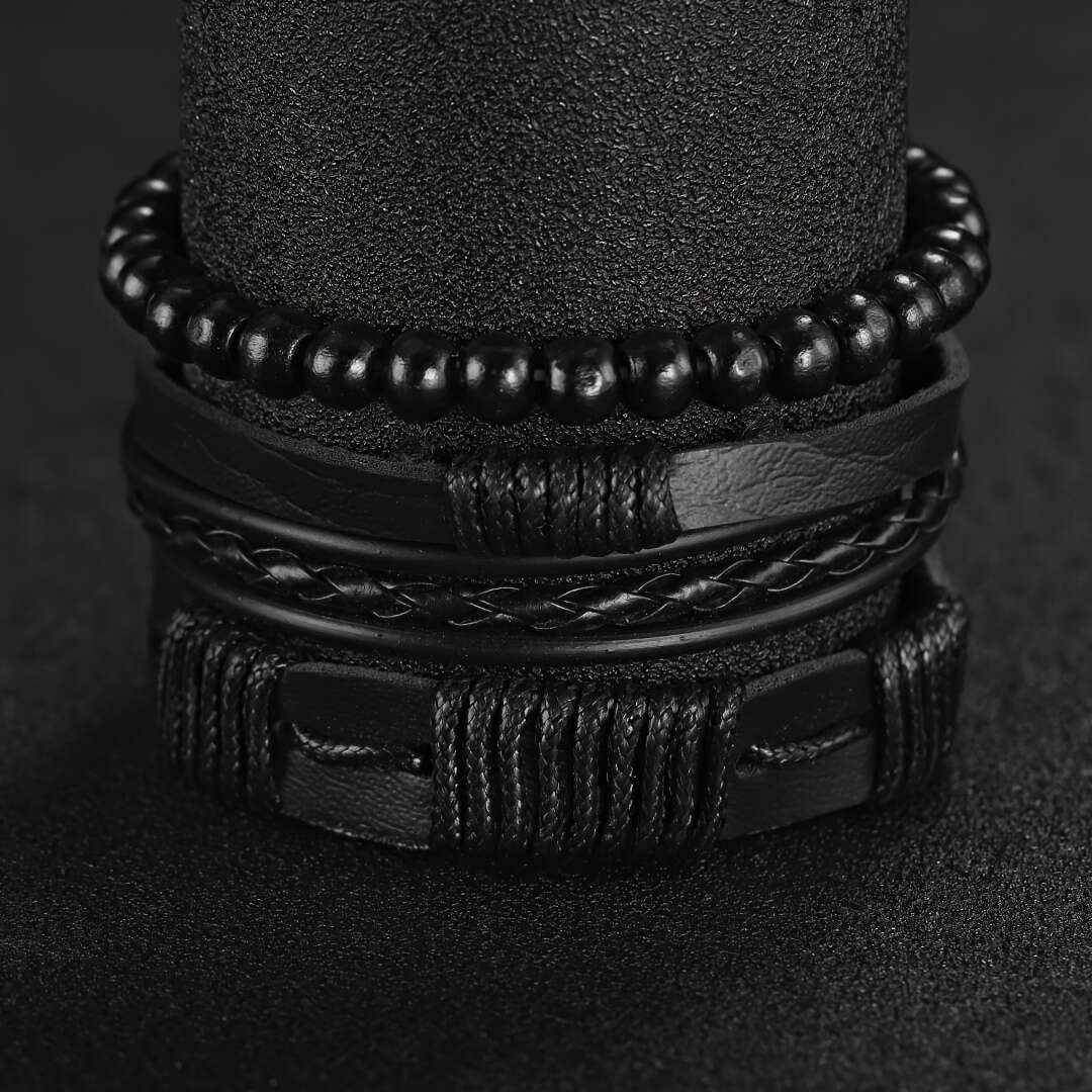 Men's Fashion Digital Dial Large Face Business Trend Quartz Watch + Bracelet Set, 4pcs Set (Watch Box Not Included)