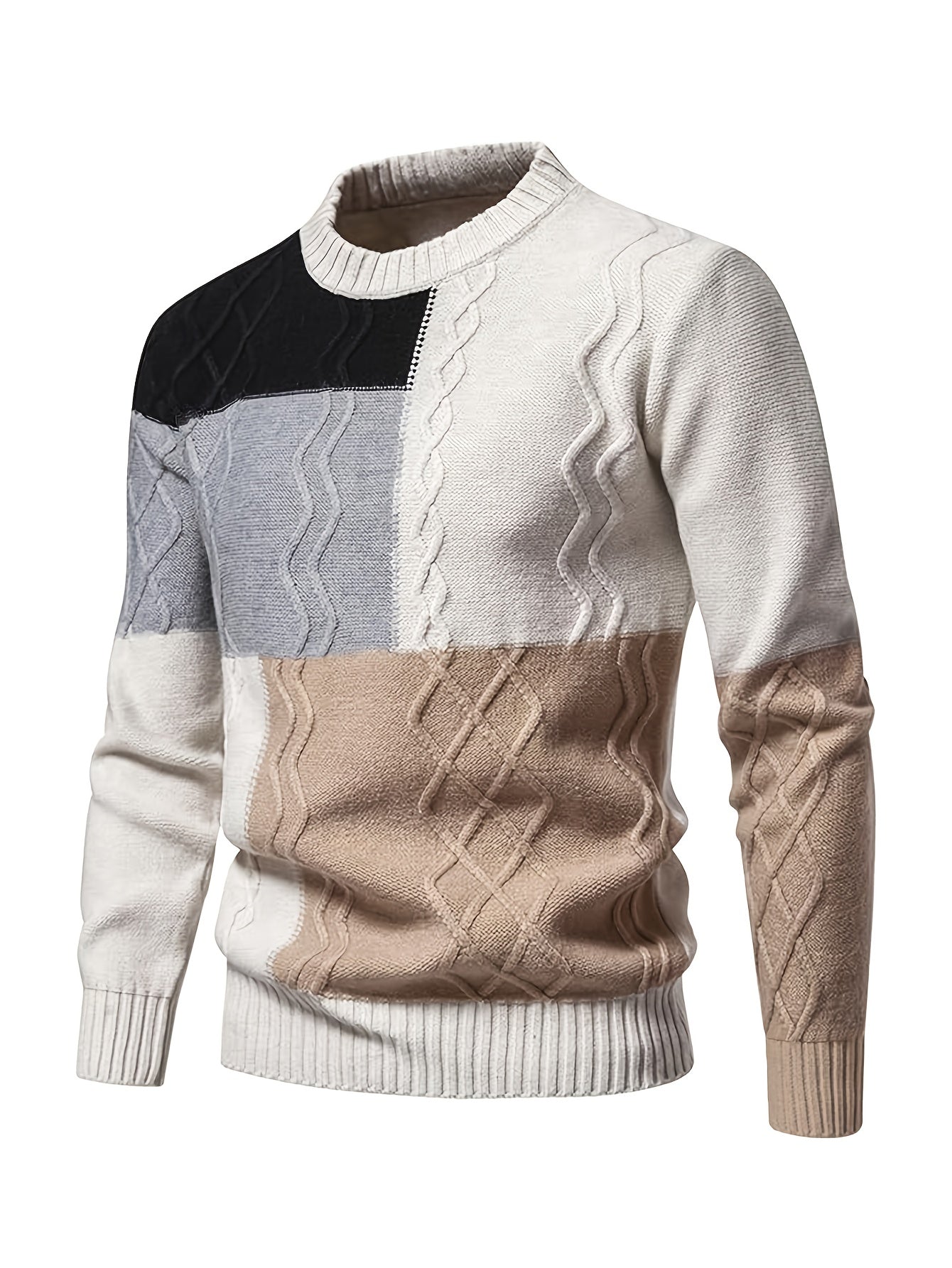 Men'S Fashion Long Sleeve Crew Neck Sweater | Casual Patchwork Knit Pullover, Warm Winter Top for Men, Suitable for Daily & Weekend Casual Wear