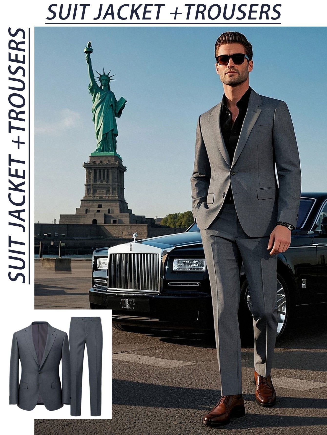 Men'S Formal Suit Set Featuring a Two-Button Lapel Jacket And Trousers. A Simple, Comfortable, And Classic Outfit for Adult Males, Suitable for Professional Office Wear, Elite Business Attire, And High-End Casual Suits. Ideal