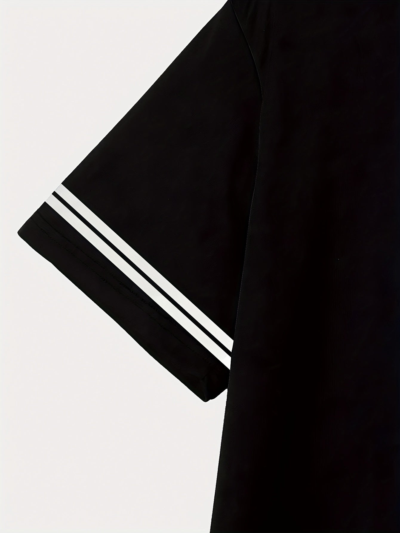 Men'S "Freedom" Graphic T-Shirt - Black Casual Crew Neck Tee with White Stripes, Breathable Polyester Blend, Regular Fit for Casual Attire, Everyday Tshirt Bold Print Tee Comfortable Fit, Knit