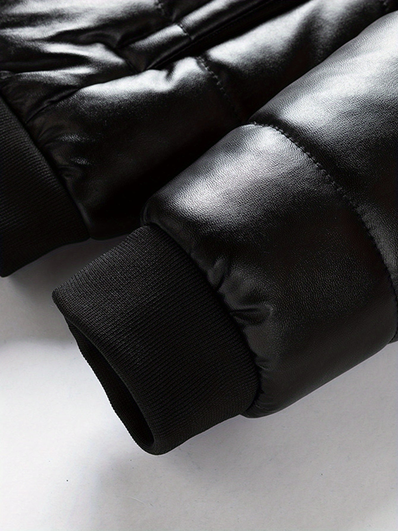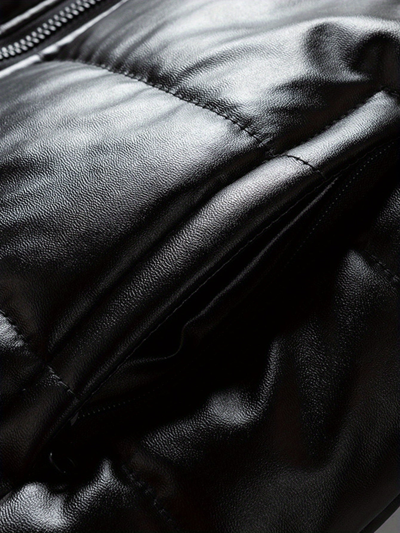Men's Heavy-Duty Winter Jacket - Black Cold Weather Coat with Zippered Pockets, Formal & Everyday Outerwear for Office, Travel, Outdoor Activities - Hand Washable Polyester Outerwear, Travel Winter Coat, Classic Turndown Coll