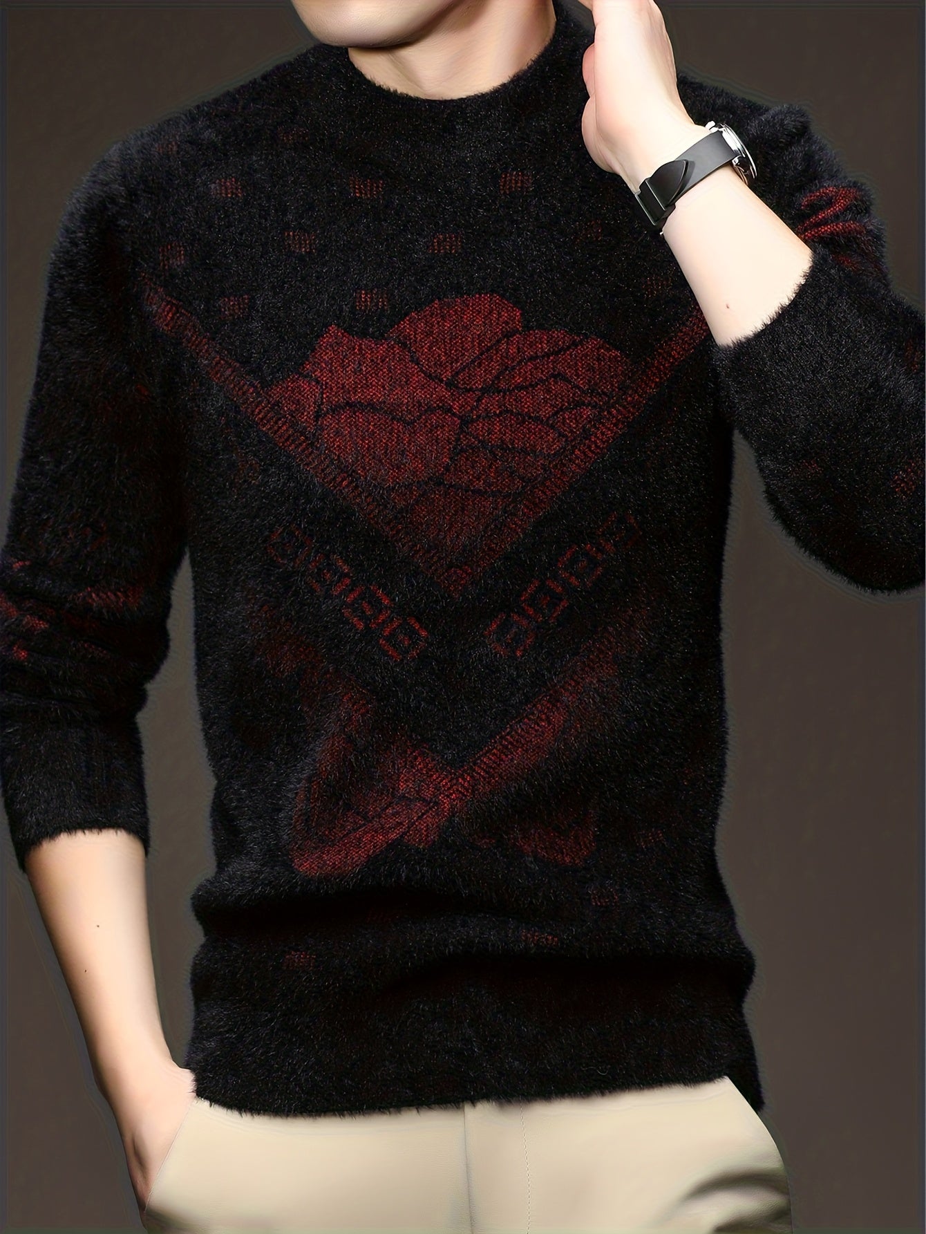 Men'S High-End Crew Neck Sweater | Fashionable Thick Warm Knitted Pullover with Floral Pattern and Hot Stamping for Fall/Winter