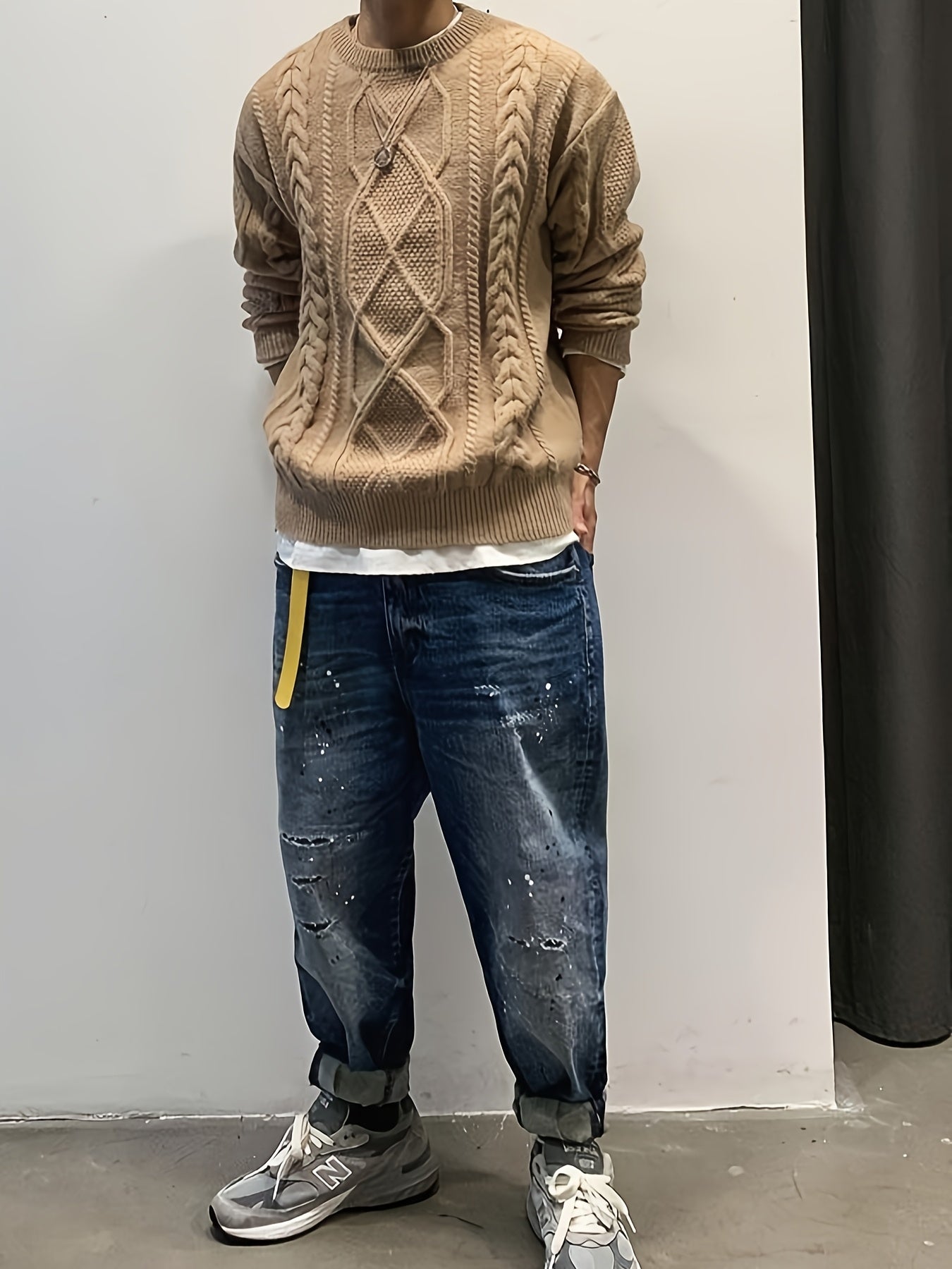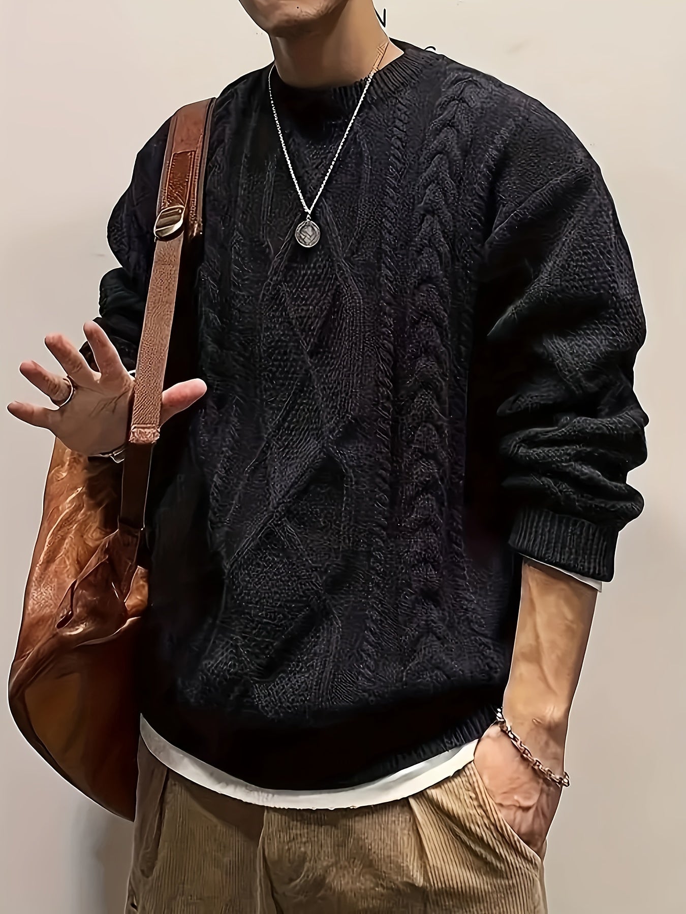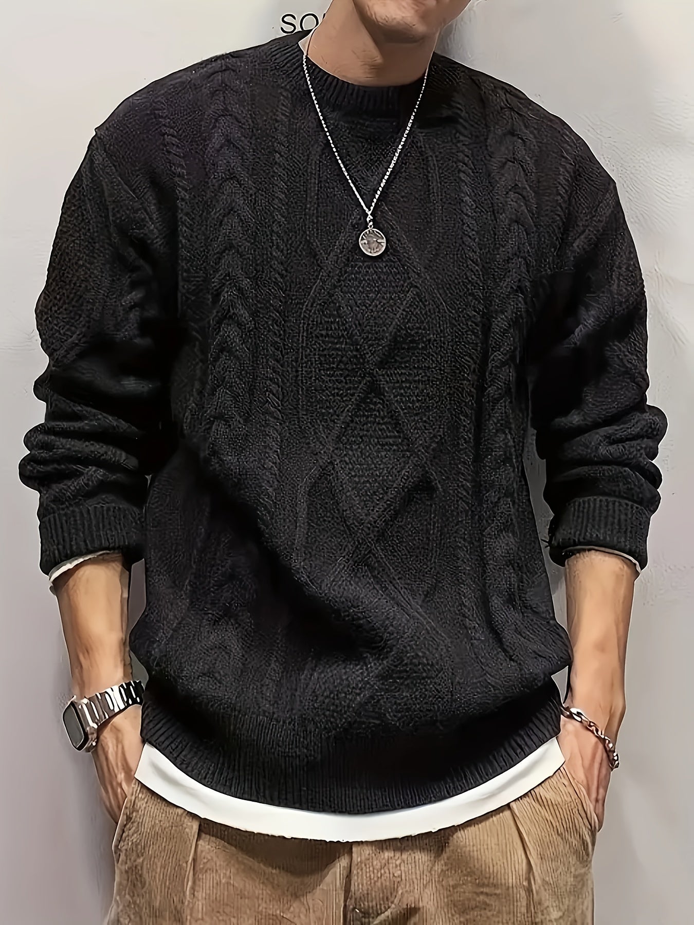 Men'S Knitted Acrylic Pullover Sweater with a Round Neck And Long Sleeves, Made from Knitted Fabric, Featuring a Casual Regular Fit Suitable for Weekends - Fall/Winter Collection