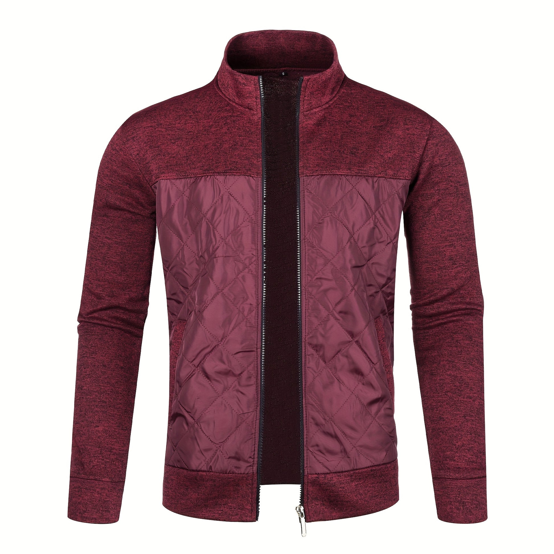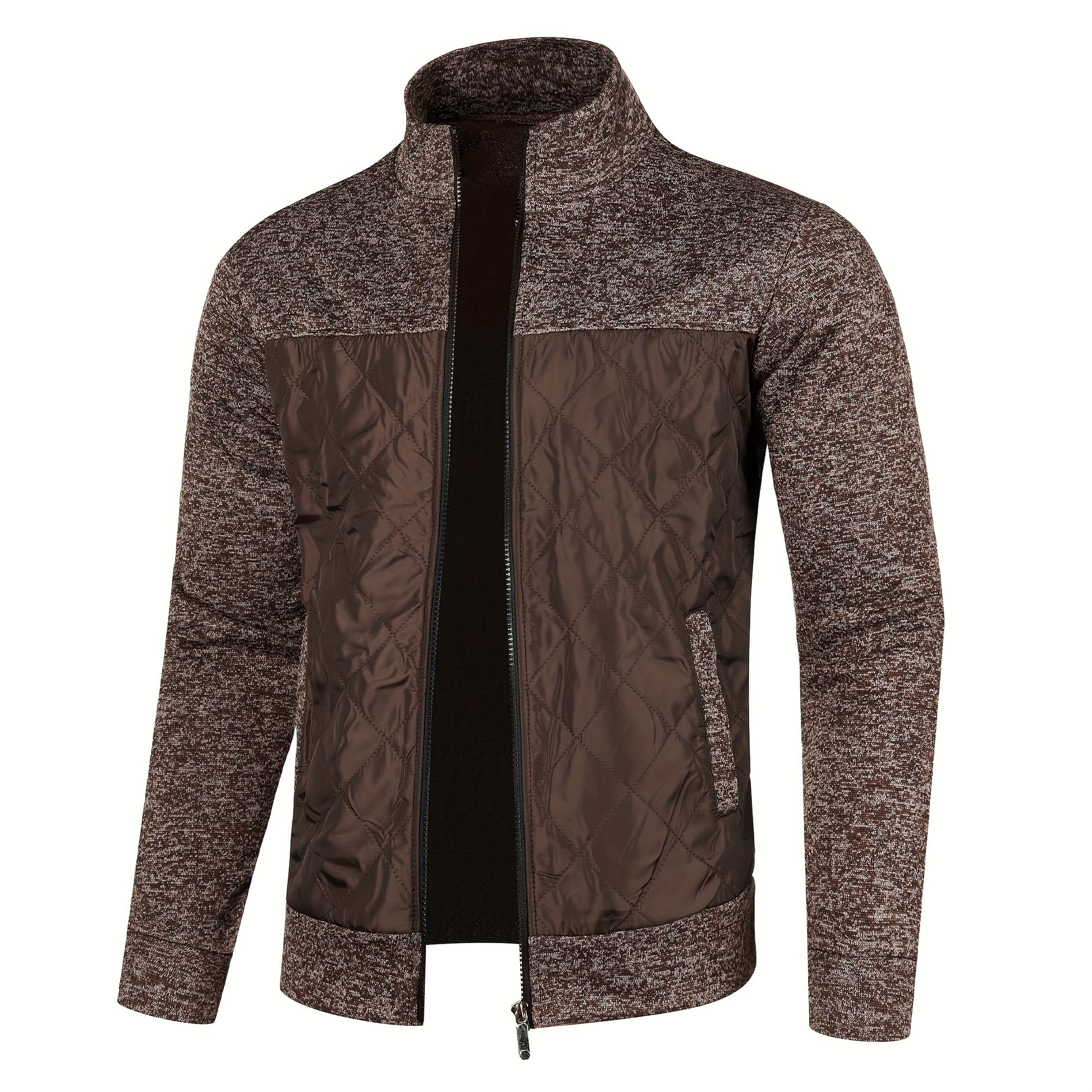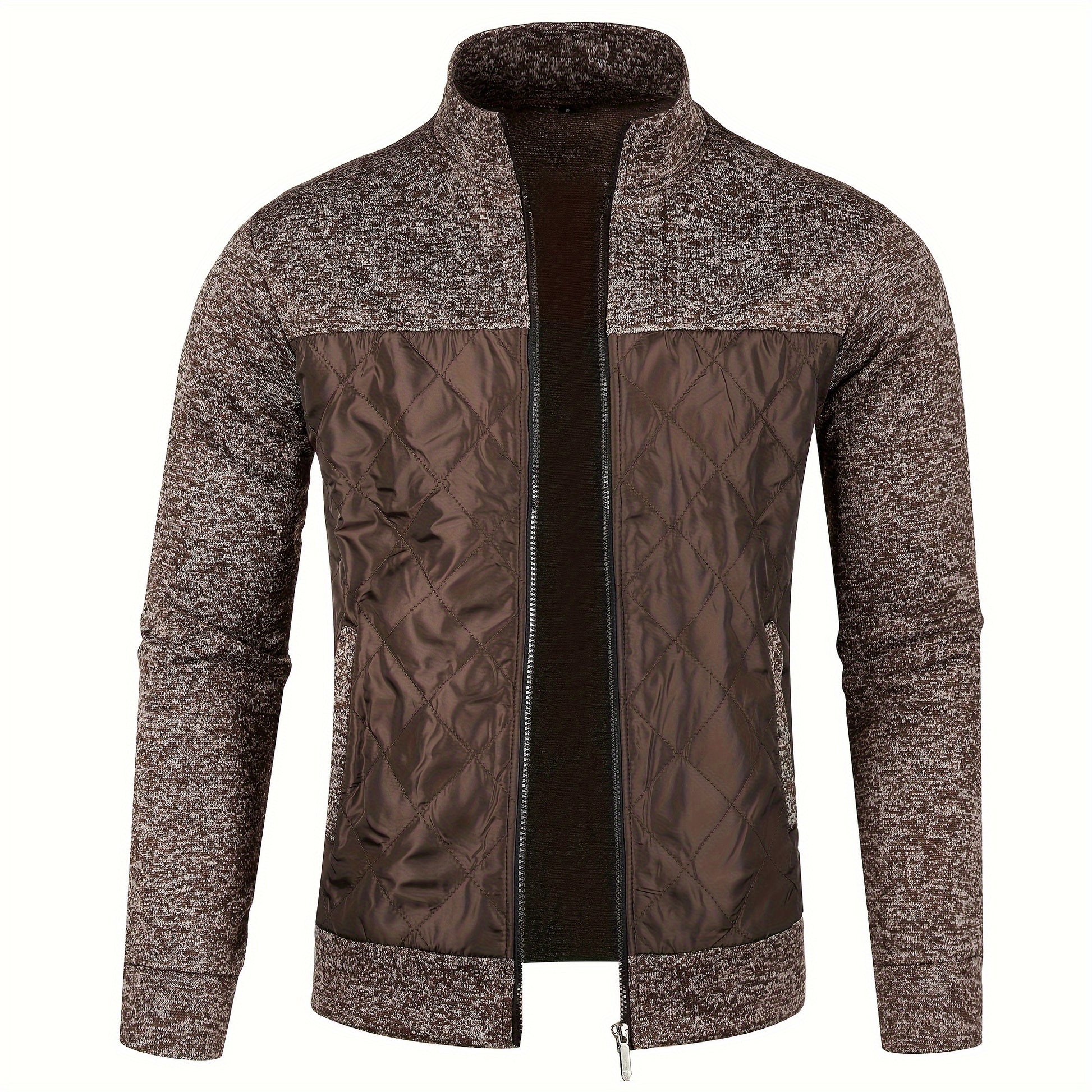 Men's Knitted Cardigan Jacket, Autumn Winter Casual Stand Collar Full Zip Coat, Long Sleeve Regular Fit Jacket