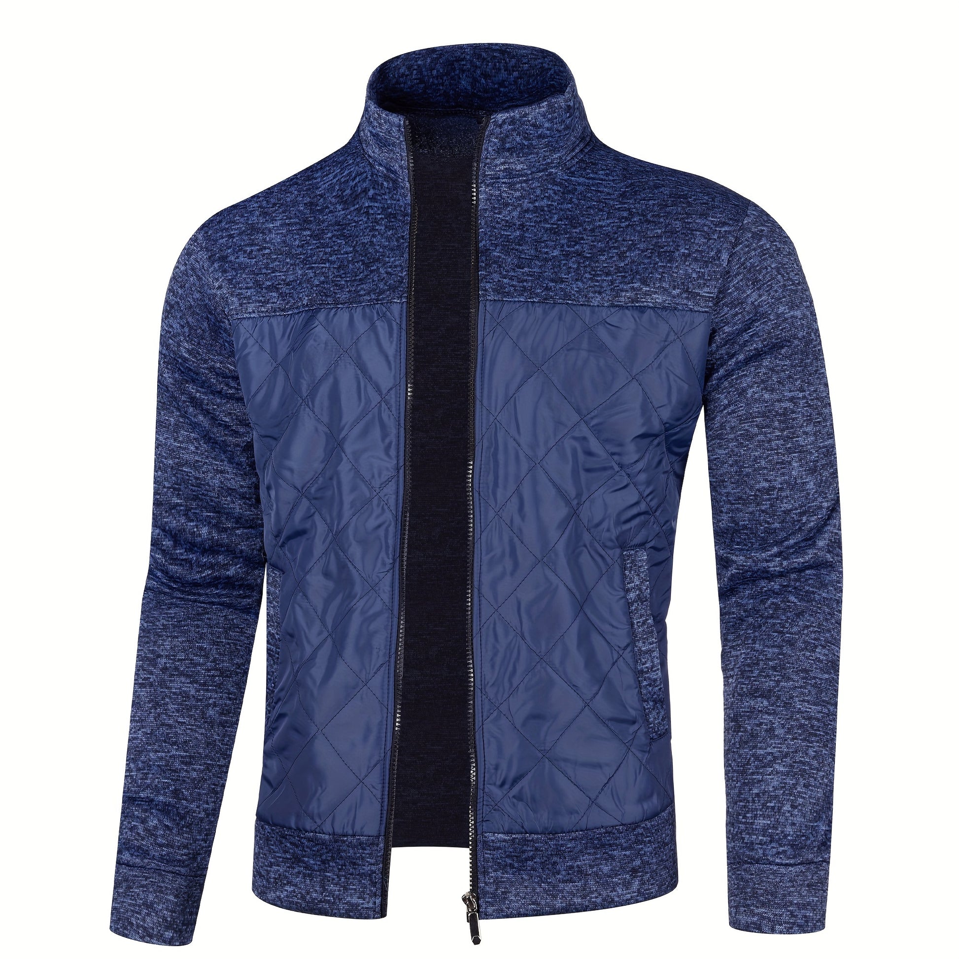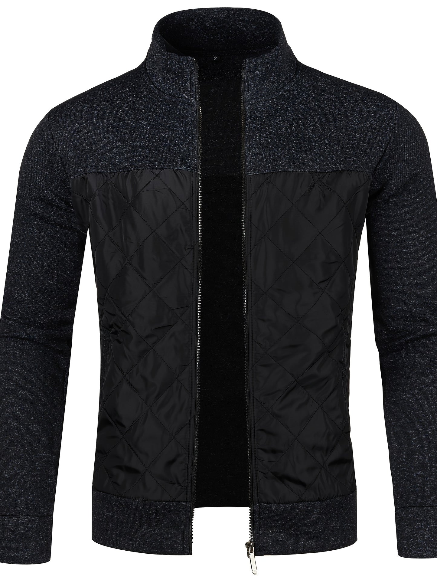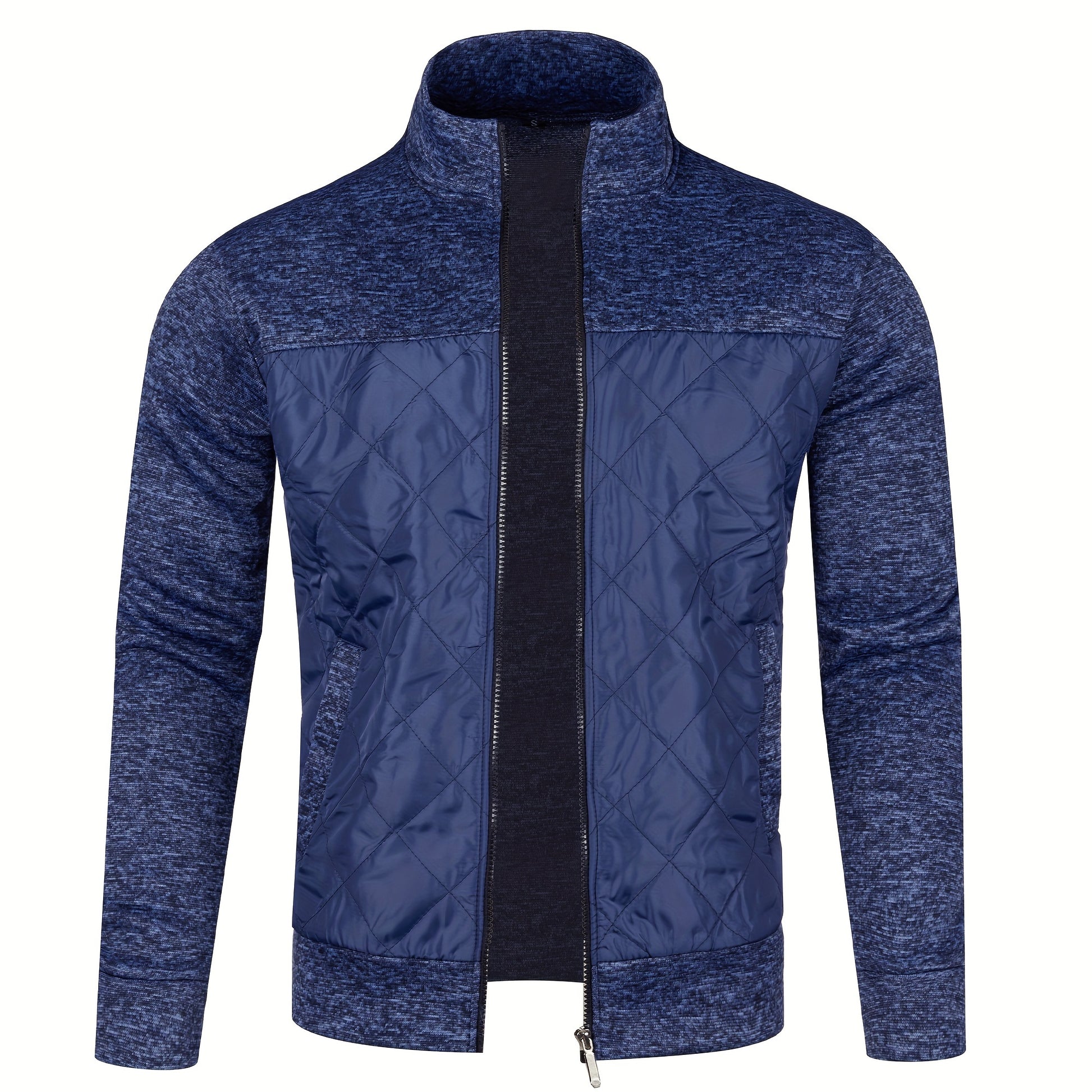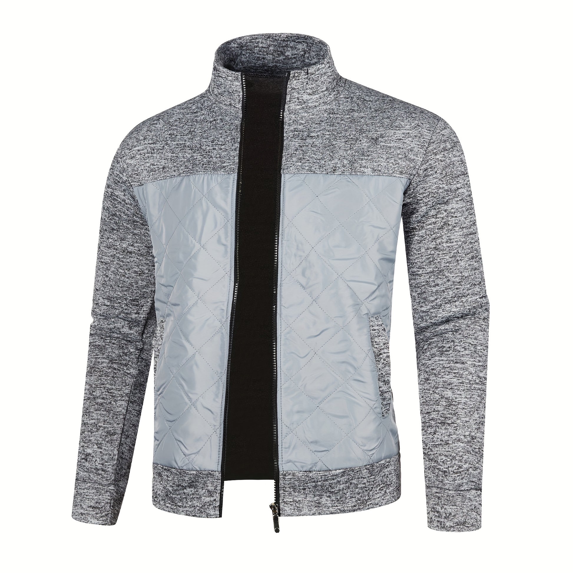 Men's Knitted Cardigan Jacket, Autumn Winter Casual Stand Collar Full Zip Coat, Long Sleeve Regular Fit Jacket