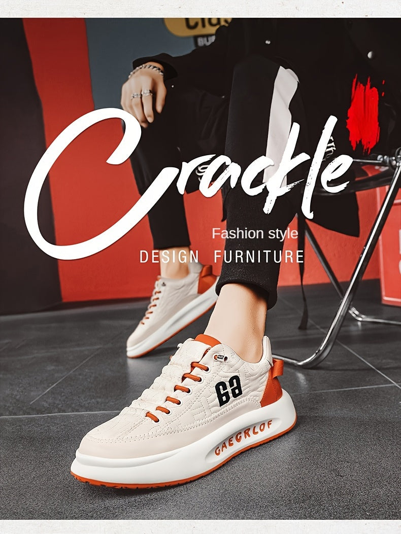 Men'S Large Size Versatile Chinese Style Sneakers - Casual Sports Thick Sole Dad Shoes, Low Top, Elastic Band Closure, Faux Upper, Fabric Lining, Rubber Sole, EVA Insole, Fashion Sneakers