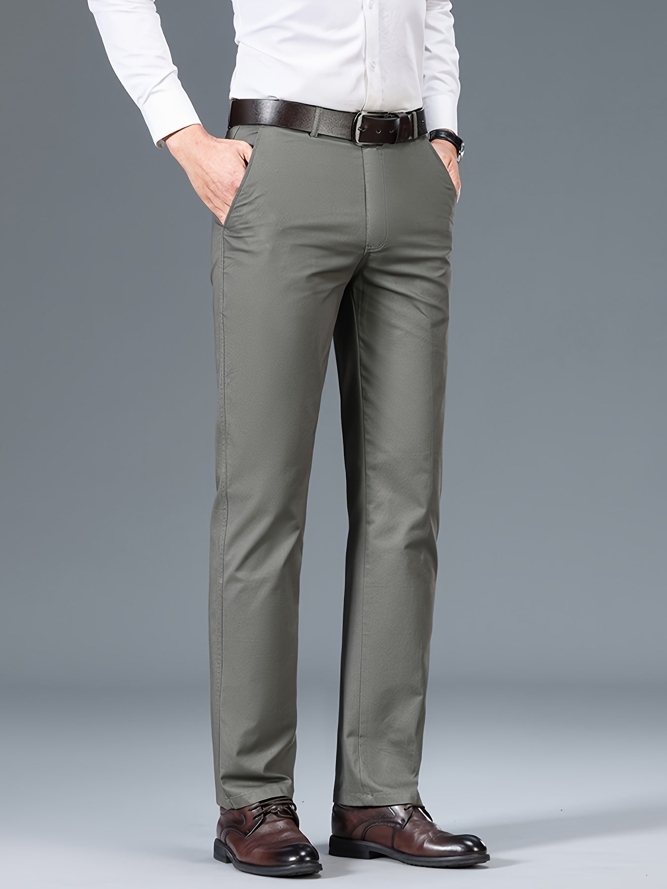 Men's Light Business Cotton Dress Pants - Straight Leg, Olive Green, 100% Cotton, Perfect for Office or Casual Outings