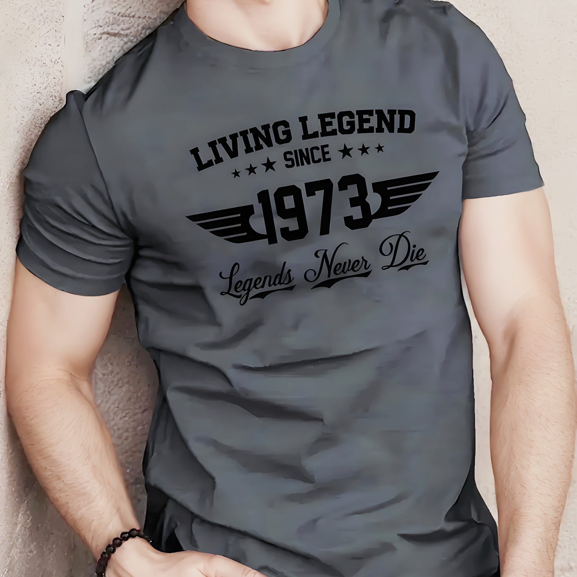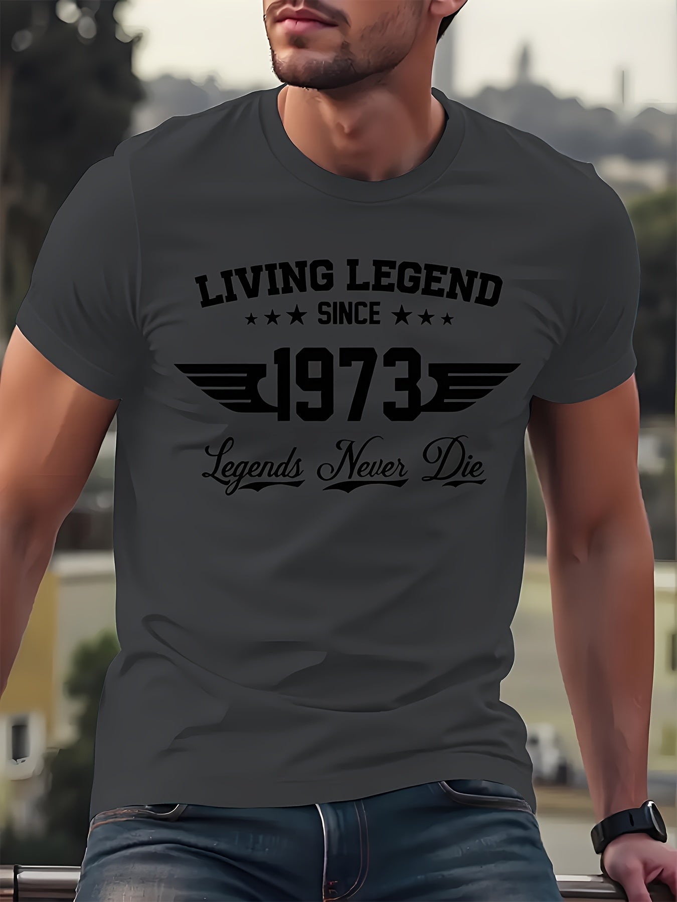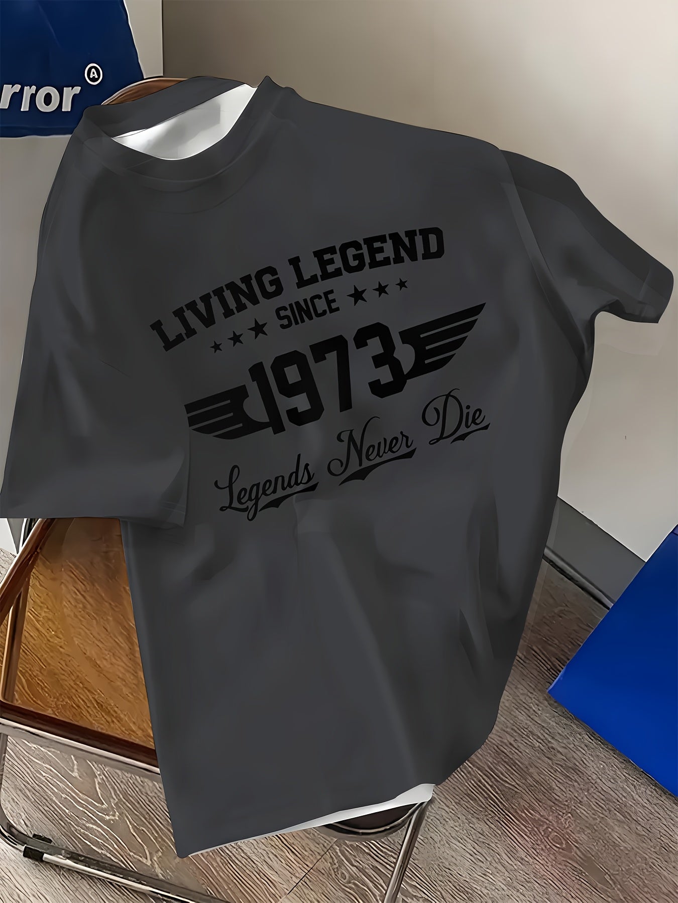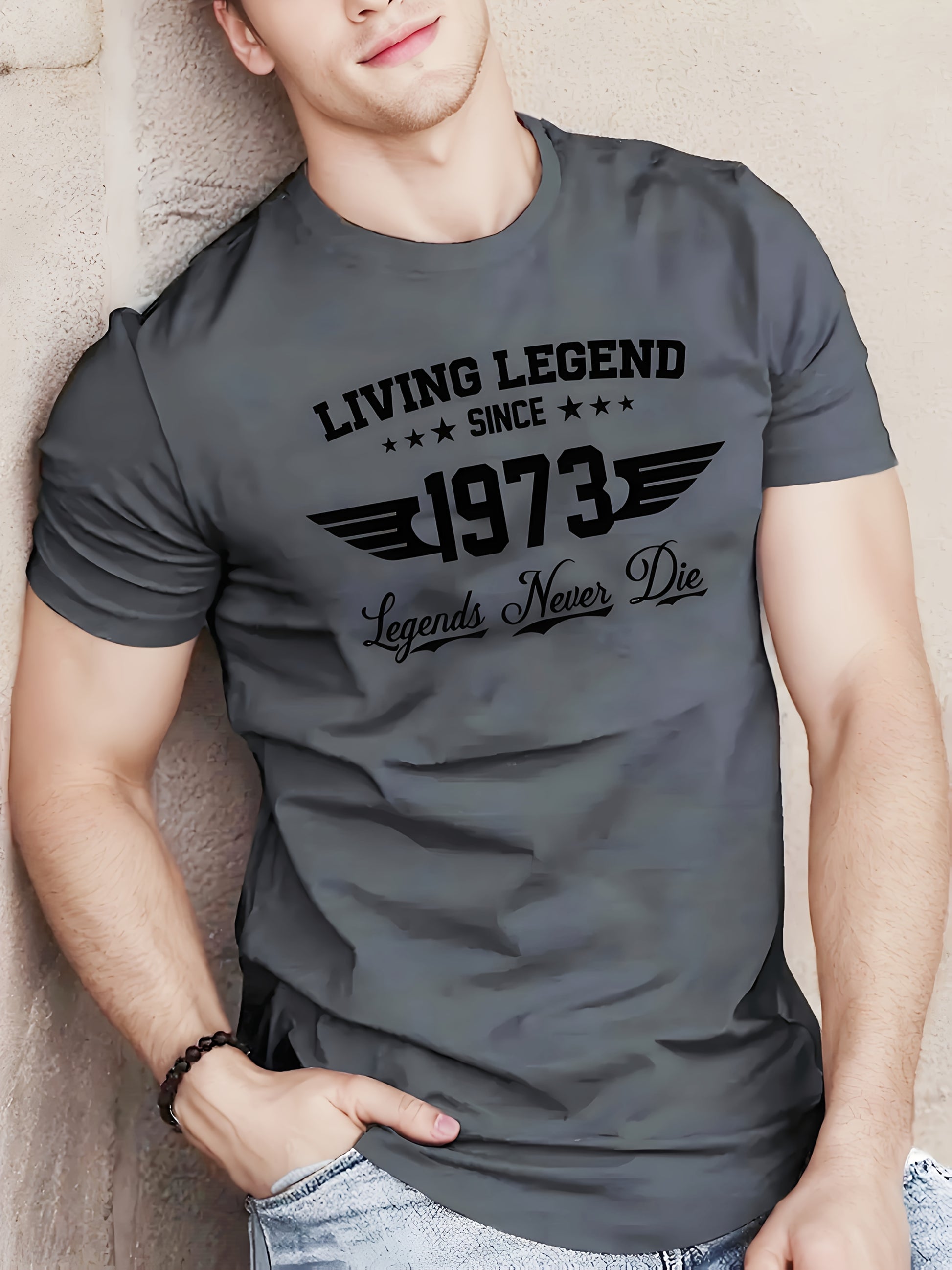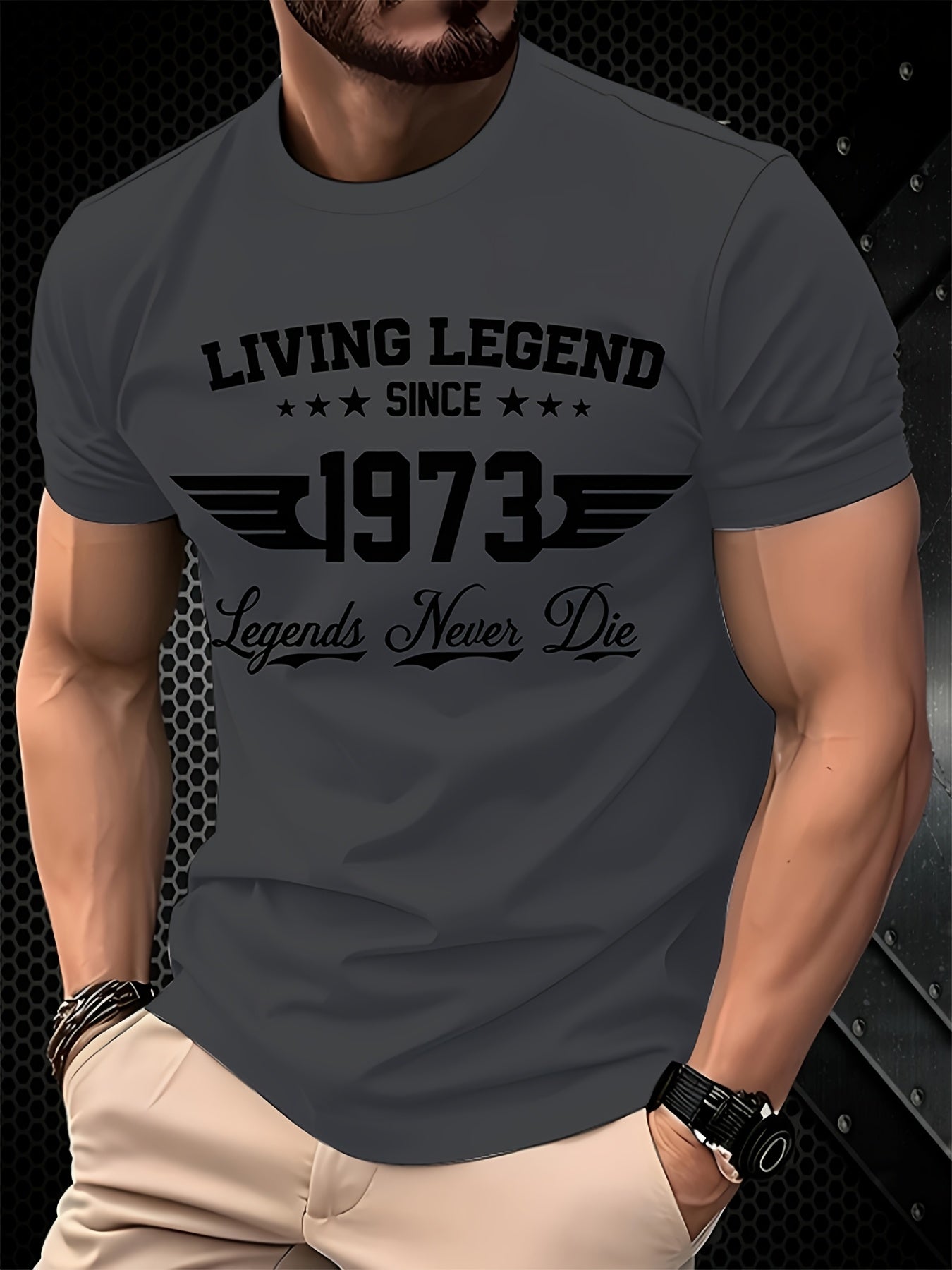 Men's "Living Legend 1973 to Present" Graphic T-Shirt - Grey 3D PrintCasual Summer Street Style Short Sleeve Crew Neck T-Shirt with rugged design. Features technical fabric for breathability, cooling comfort, quick-dry perfor