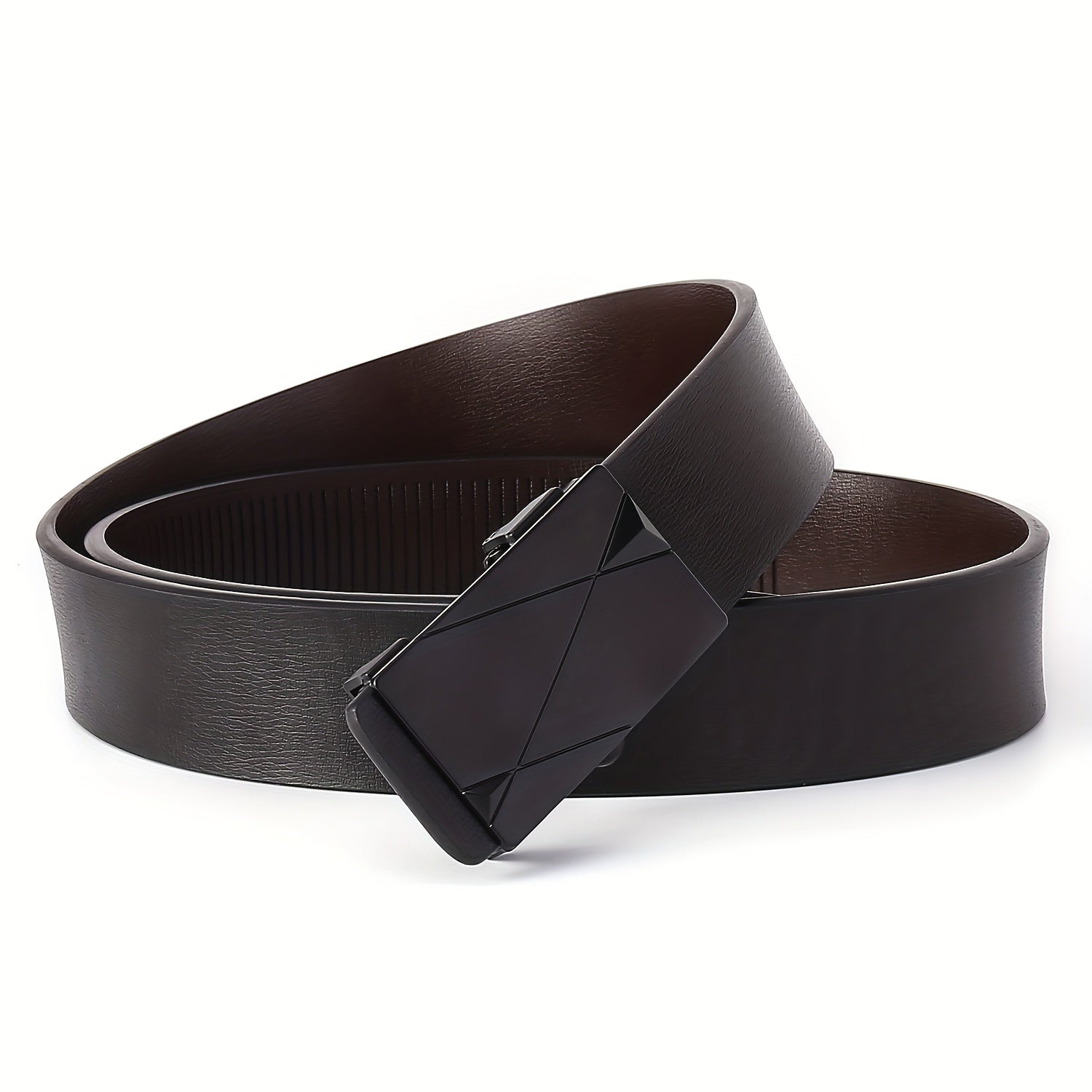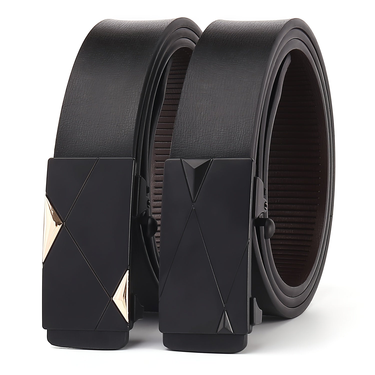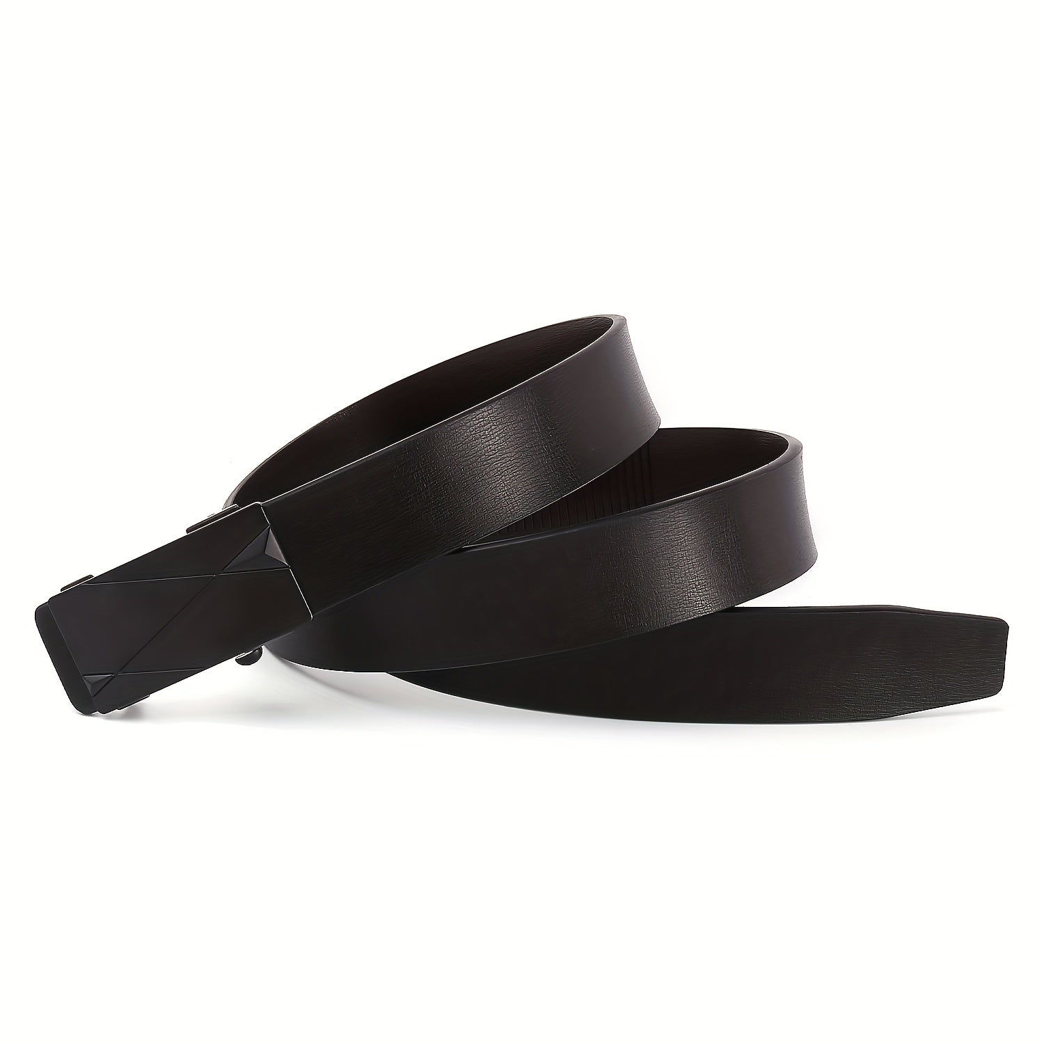 Men's Luxury Automatic Buckle Faux Leather Belt - Sleek Black with Golden Geometric Buckle, Business Casual Style, Adjustable Fit for Comfort, Business Casual Accessory | Sophisticated Belt Design | Sleek Black Finish