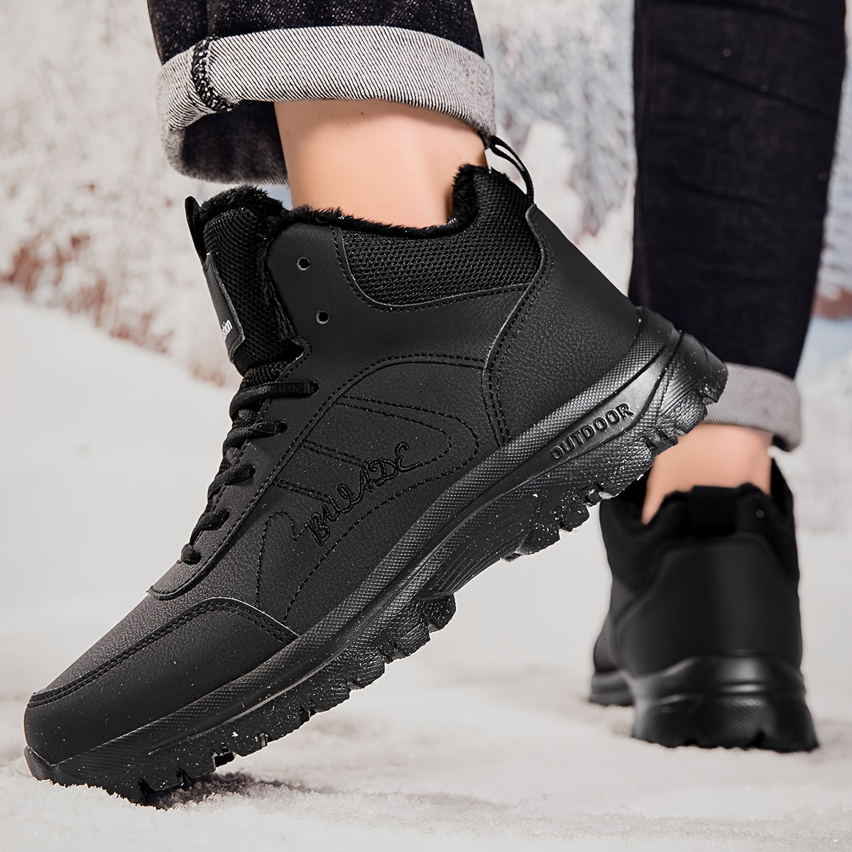 Men'S Mid-Top Snow Boots - Lightweight, Flexible Sole, Comfortable Thick Plush Lining, Classic Brown & Black, Durable MD Outsole for Hiking, Street Walking & Winter Outdoor Sports, Lace-Up Closure, Retro Style, Synthetic Uppe