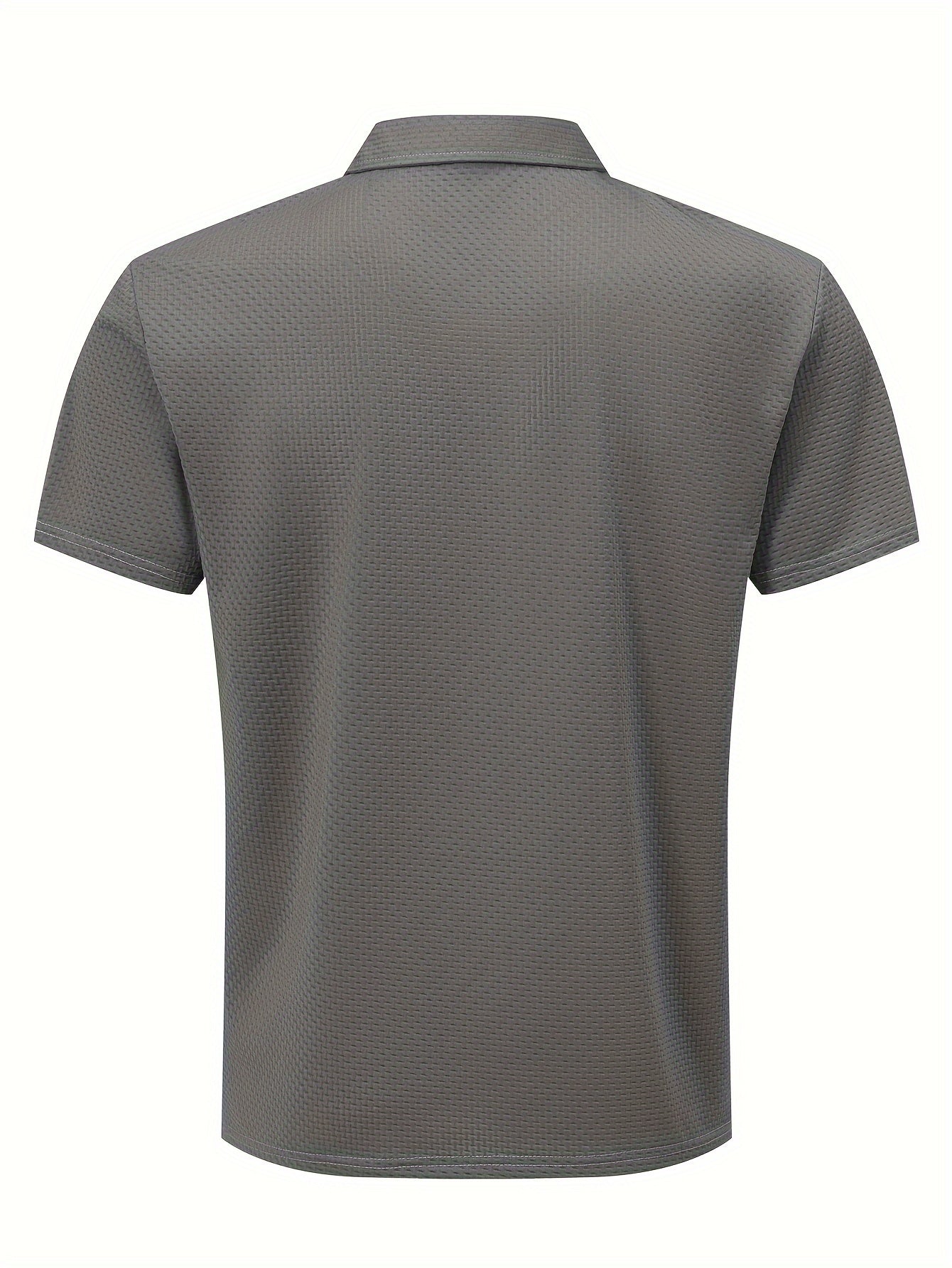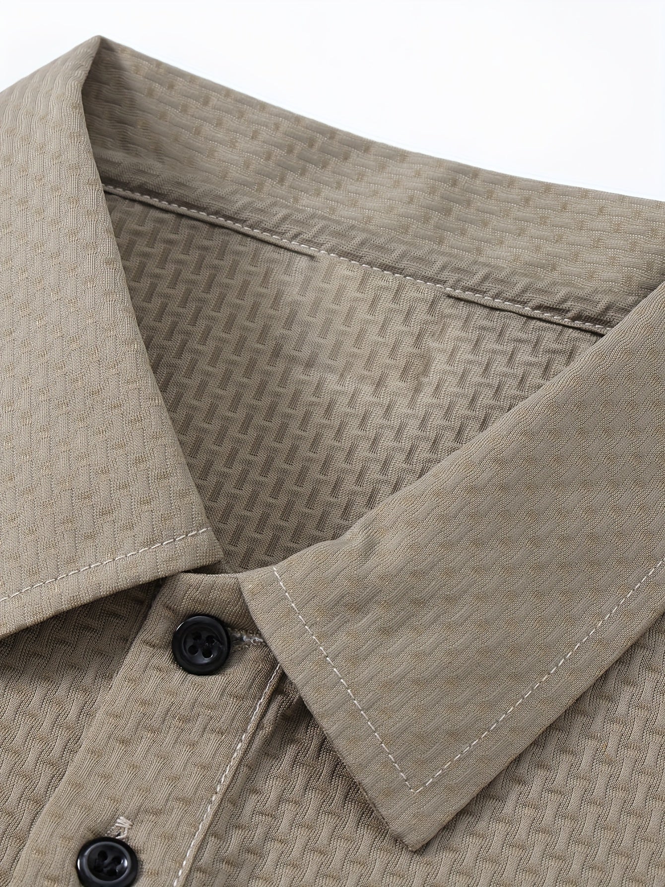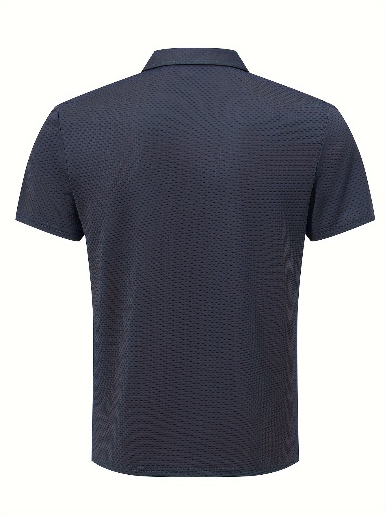Men'S Middle East Inspired Geometric Pattern Casual Nylon Knit Shirt with Lapel Collar and Button Details, Regular Fit Short Sleeve Breathable Summer Top