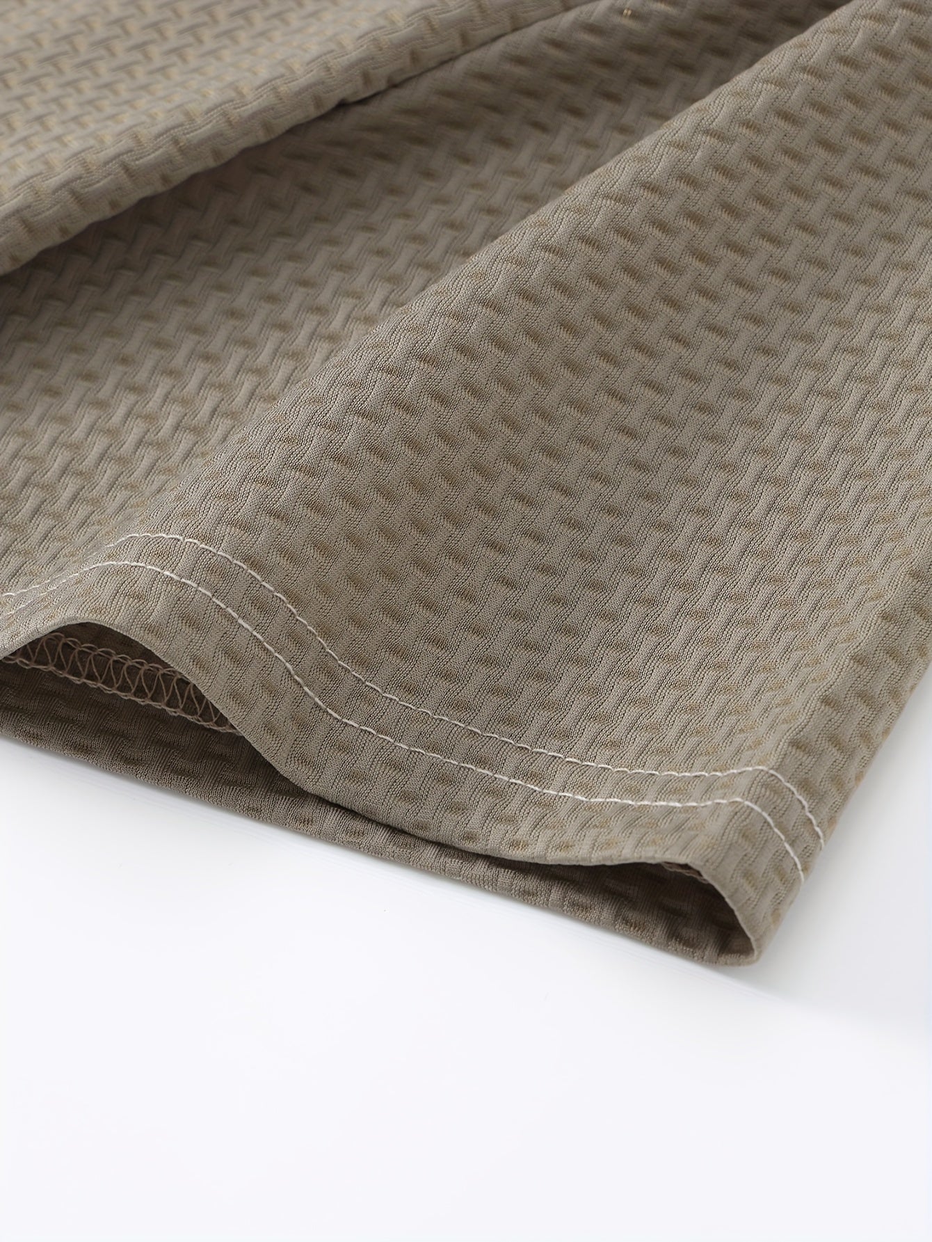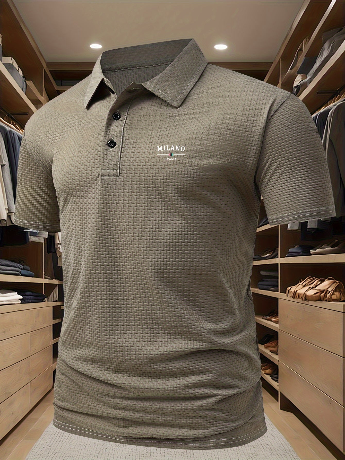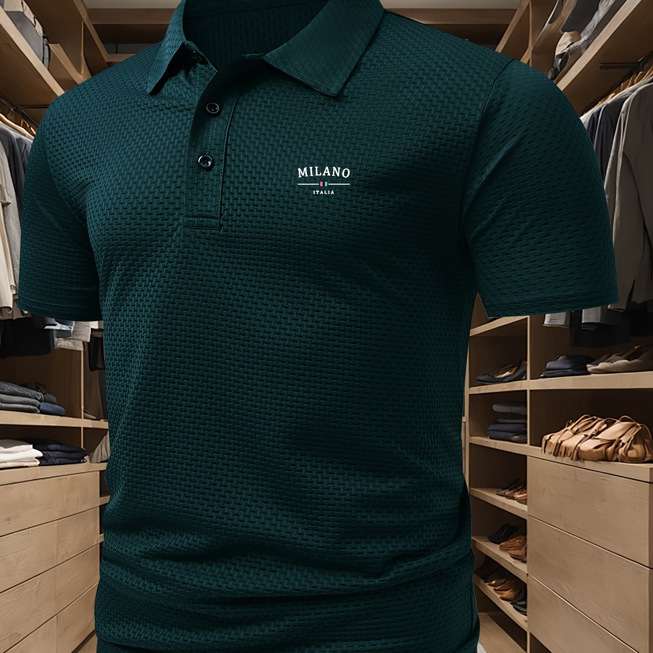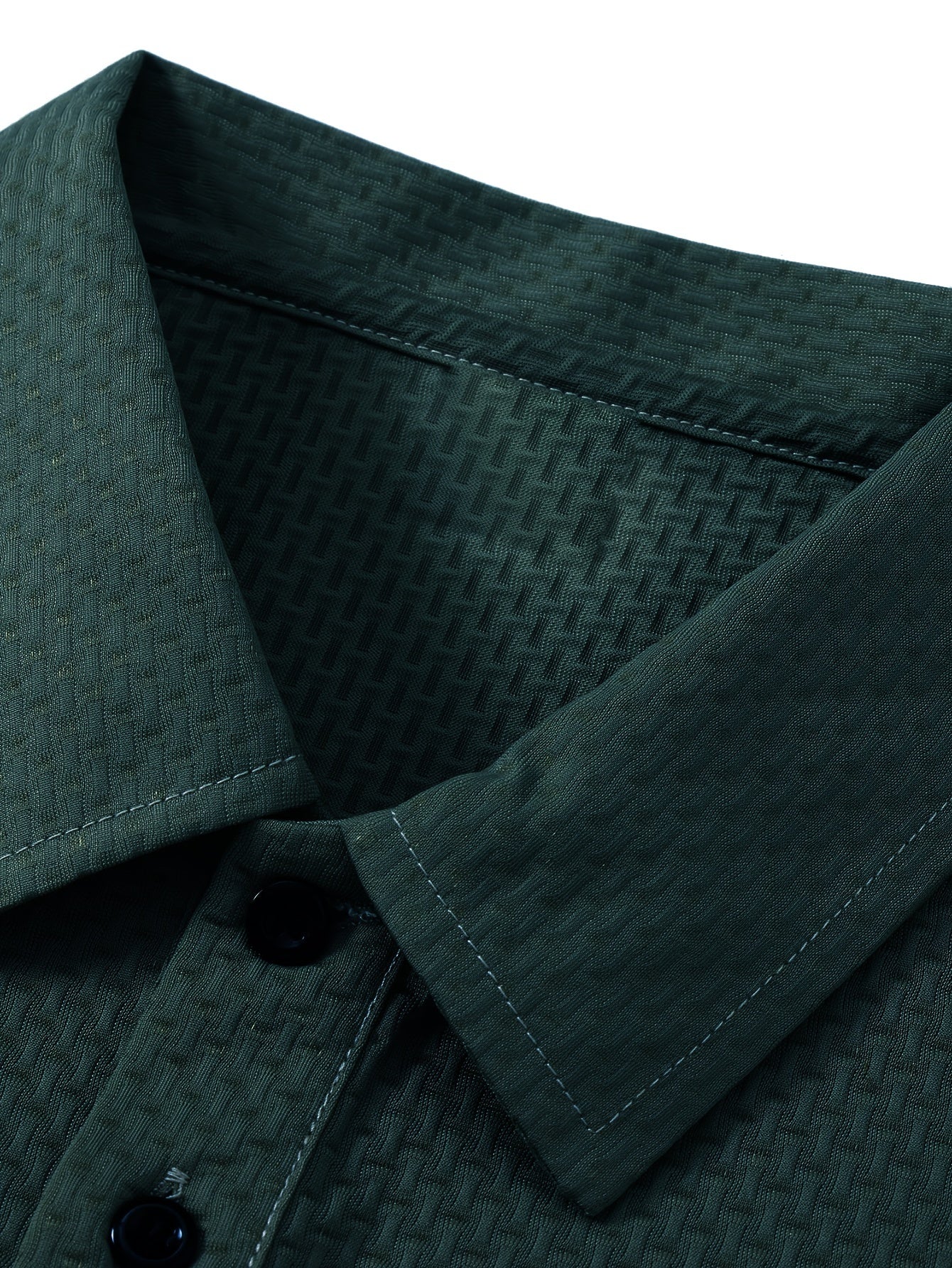 Men'S Middle East Inspired Geometric Pattern Casual Nylon Knit Shirt with Lapel Collar and Button Details, Regular Fit Short Sleeve Breathable Summer Top